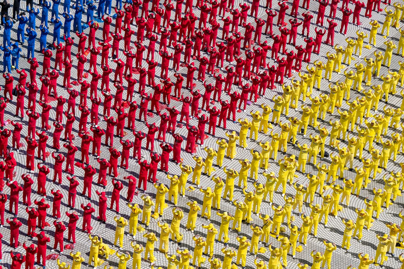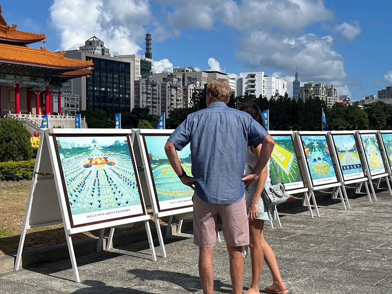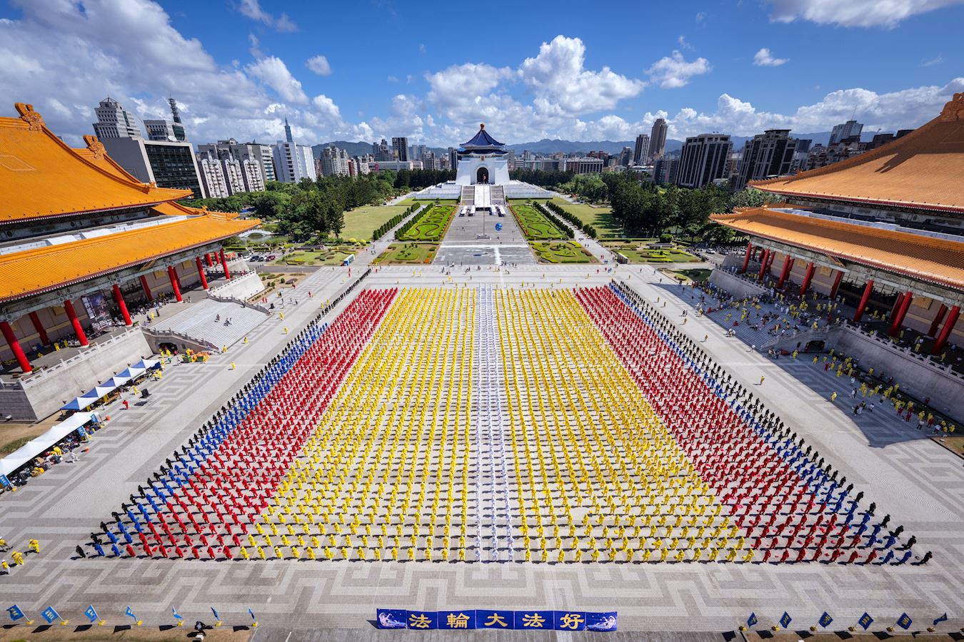 Oko 5000 praktikanata Falun Gonga iz zemalja uključujući Tajvan, Maleziju, Indoneziju, Japan, Koreju, Hong Kong, Singapur, Njemačku, Kanadu i SAD okupilo se na Trgu slobode u Taipeiju ujutro 18. listopada 2025. kako bi svojim tijelima formirali velike znakove. Ove godine, formirana slika je divovski Falun amblem s četiri kineska znaka "Kotač se stalno okreće". Atmosfera je bila sveta, mirna i prikazivala je ispravne misli i uvjerenje praktikanata. Turisti iz mnogih zemalja zaustavili su se kako bi gledali.