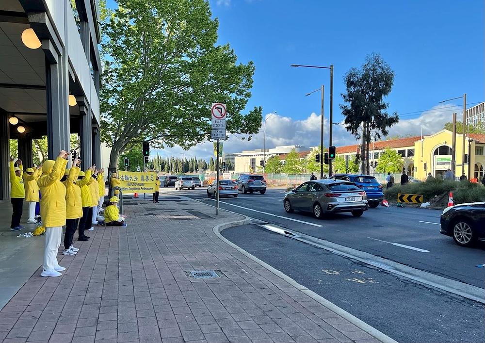 Nekoliko dana zaredom, tokom jutarnje gužve, praktikanti su držali transparente, demonstrirali pet setova vježbi i prikupljali potpise u centru Canberre kako bi zaustavili žetvu organa.
