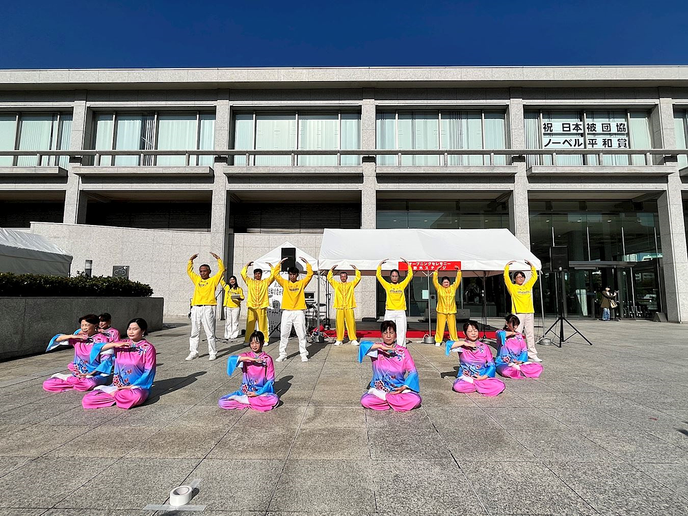 Jošida je došao do informativnog štanda nakon što je gledao nastup praktikanata na bini. Rekao je na kineskom: „Vaš nastup je sjajan.“ Tražio je detalje o tome kako da nauči vežbe. Rekao je: „Nadam se da kineski građani imaju slobodu delovanja i govora, umesto da se plaše da govore ili da budu nepravedno osuđivani. Bilo bi dobro da Kina postane društvo poput Japana, gde ljudi mogu slobodno da izražavaju svoja mišljenja.“
