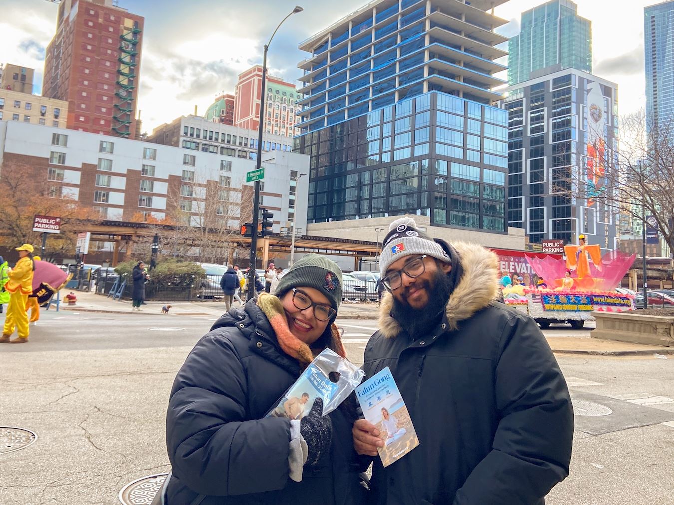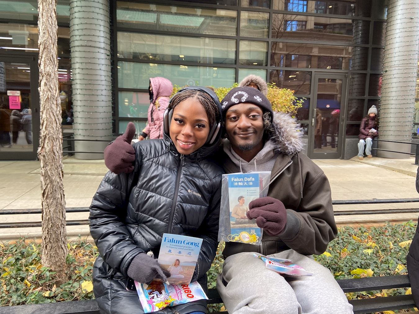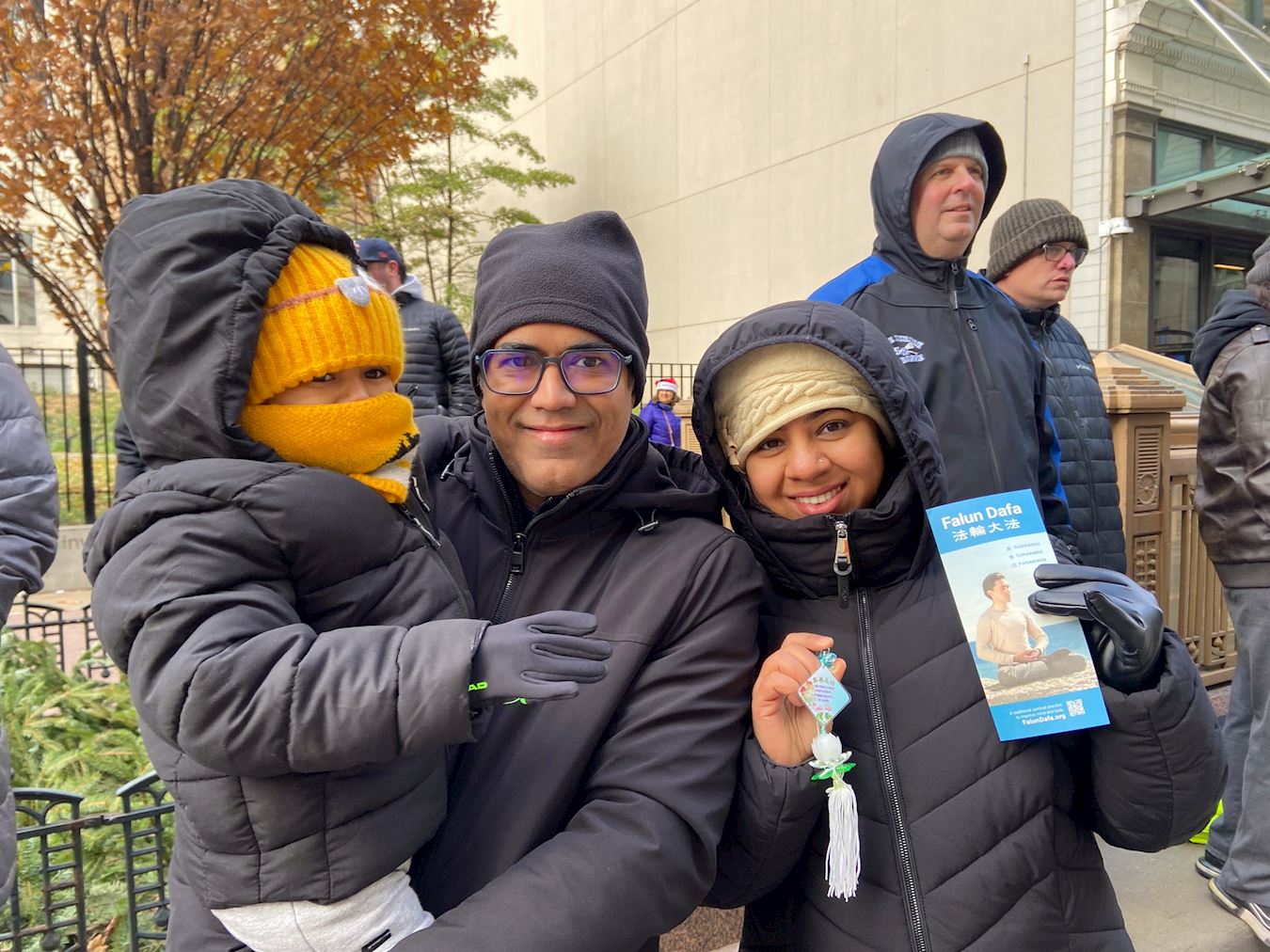 Stanovnici Čikaga, Gomez i njegova supruga Gabi, rekli su da su srećni što su saznali za Falun Dafu. Gabi je rekla: „Želela bih da saznam više o ovoj praksi.“ Bila je srećna što je videla kako Falun Dafa plovi. Rekla je: „Splav je prelep! Drago mi je što vas vidim ovde.“