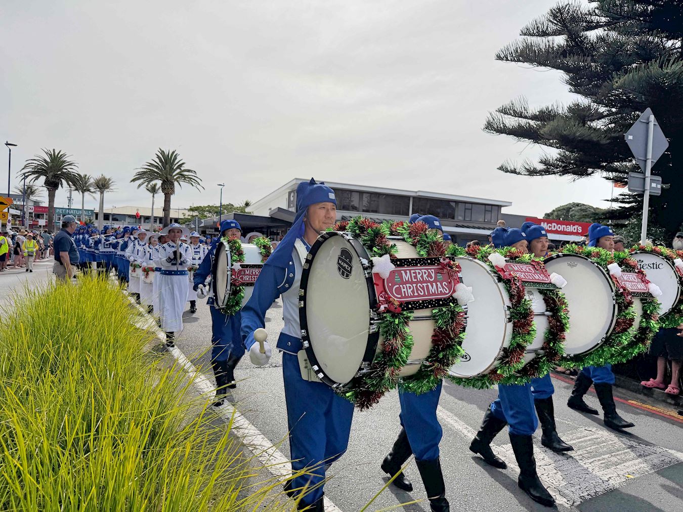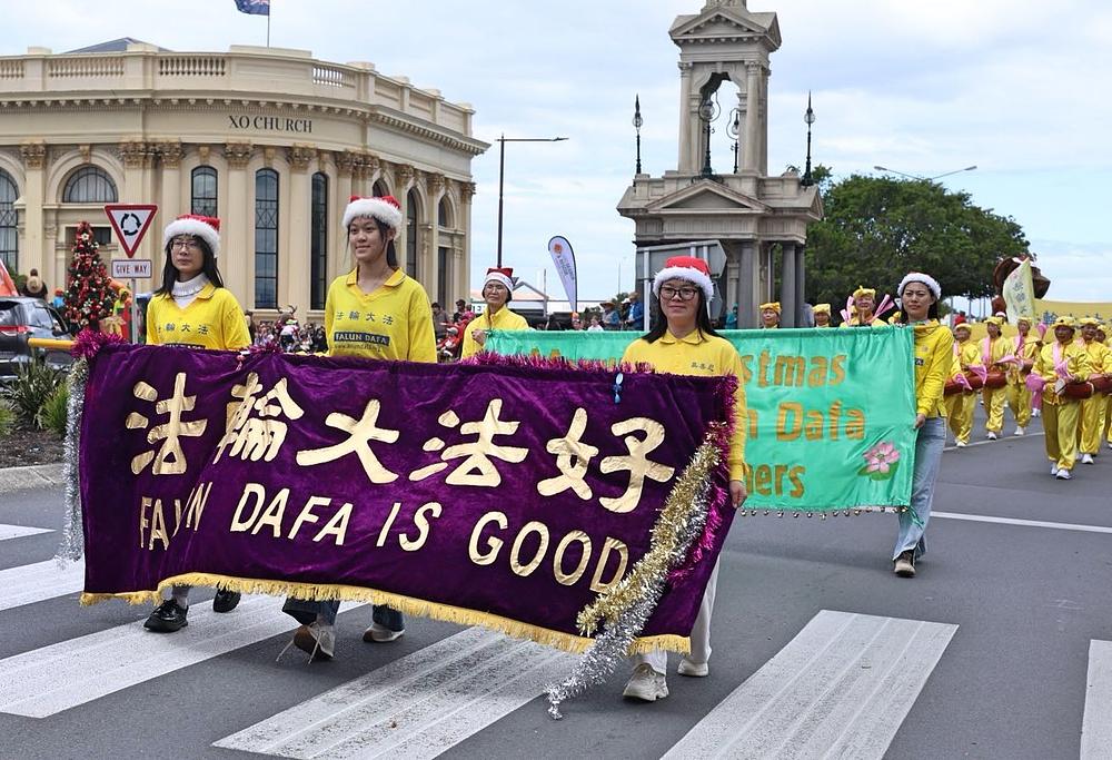 29. i 30. novembra 2025, Falun Dafa praktikanti na Novom Zelandu učestvovali su na pet božićnih parada u četiri grada na Severnom i Južnom ostrvu. Parade su održane u Oklandu, Orevi kod Oklanda, Rotorui, Danidinu i Inverkargilu.