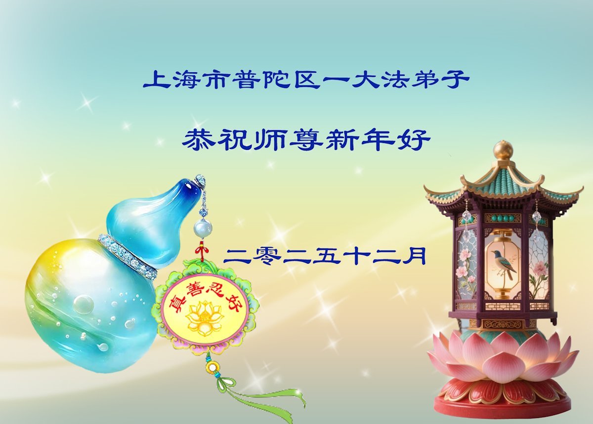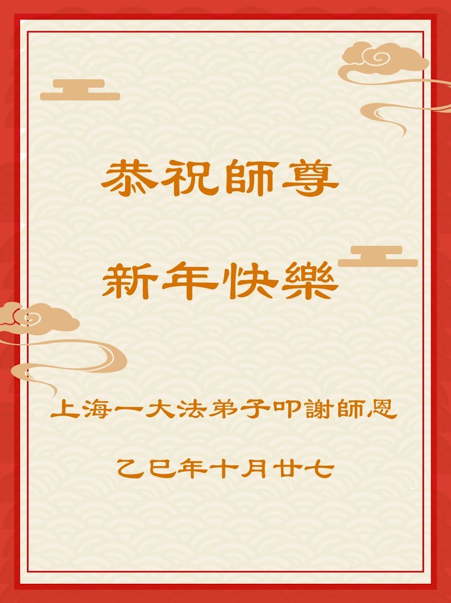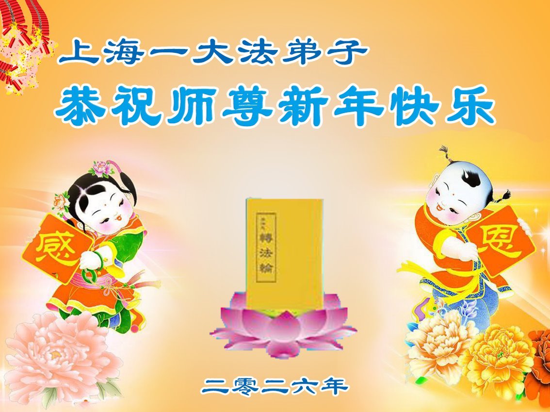 Falun Dafa praktikanti iz Šangaja s poštovanjem žele Učitelju Li Hongdžiju srećnu Novu godinu (37 čestitki)