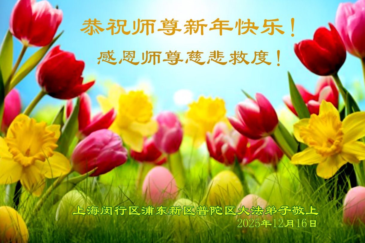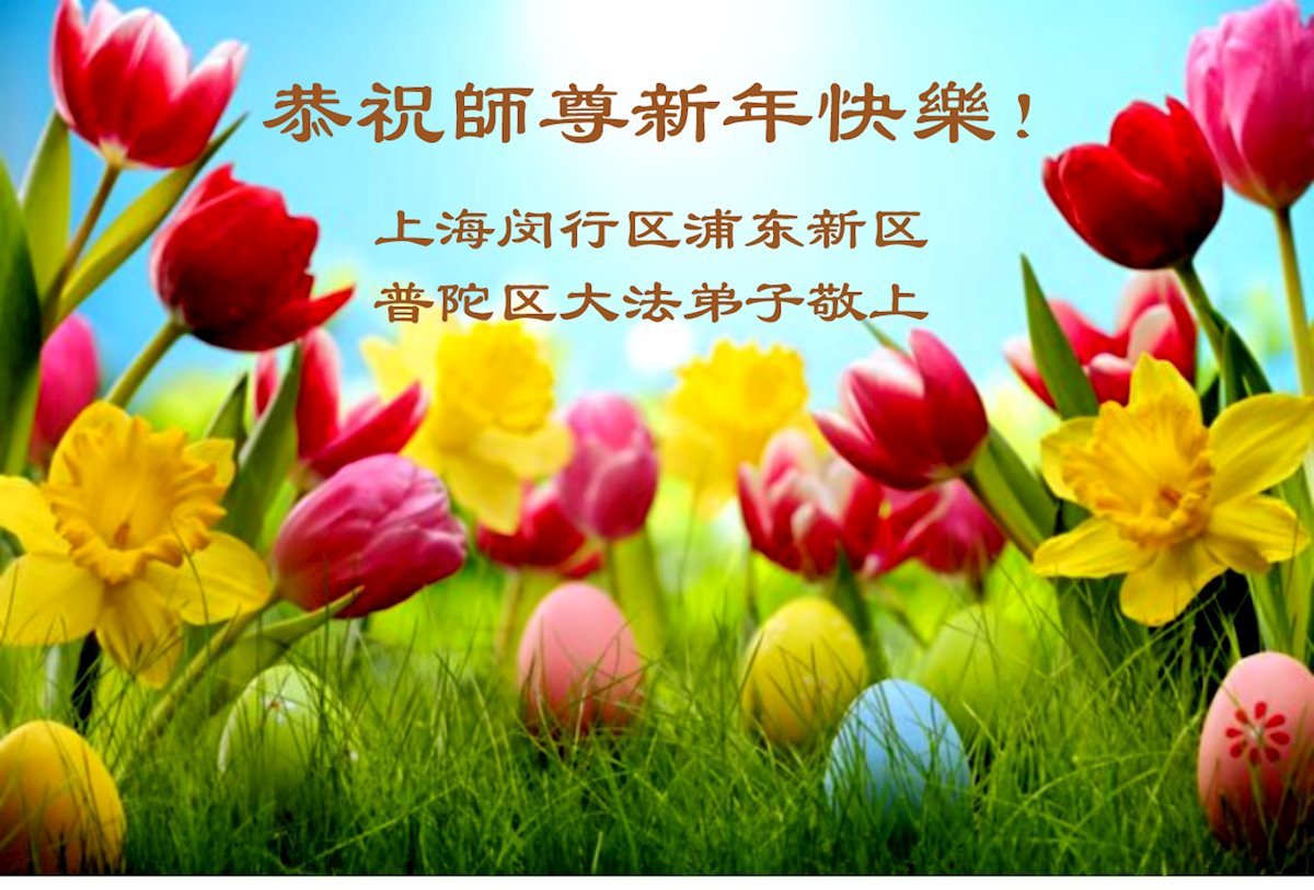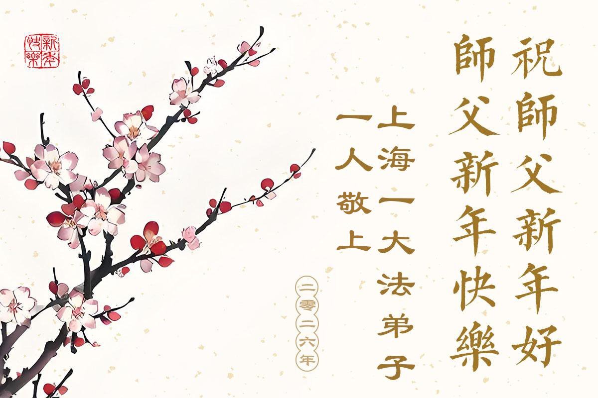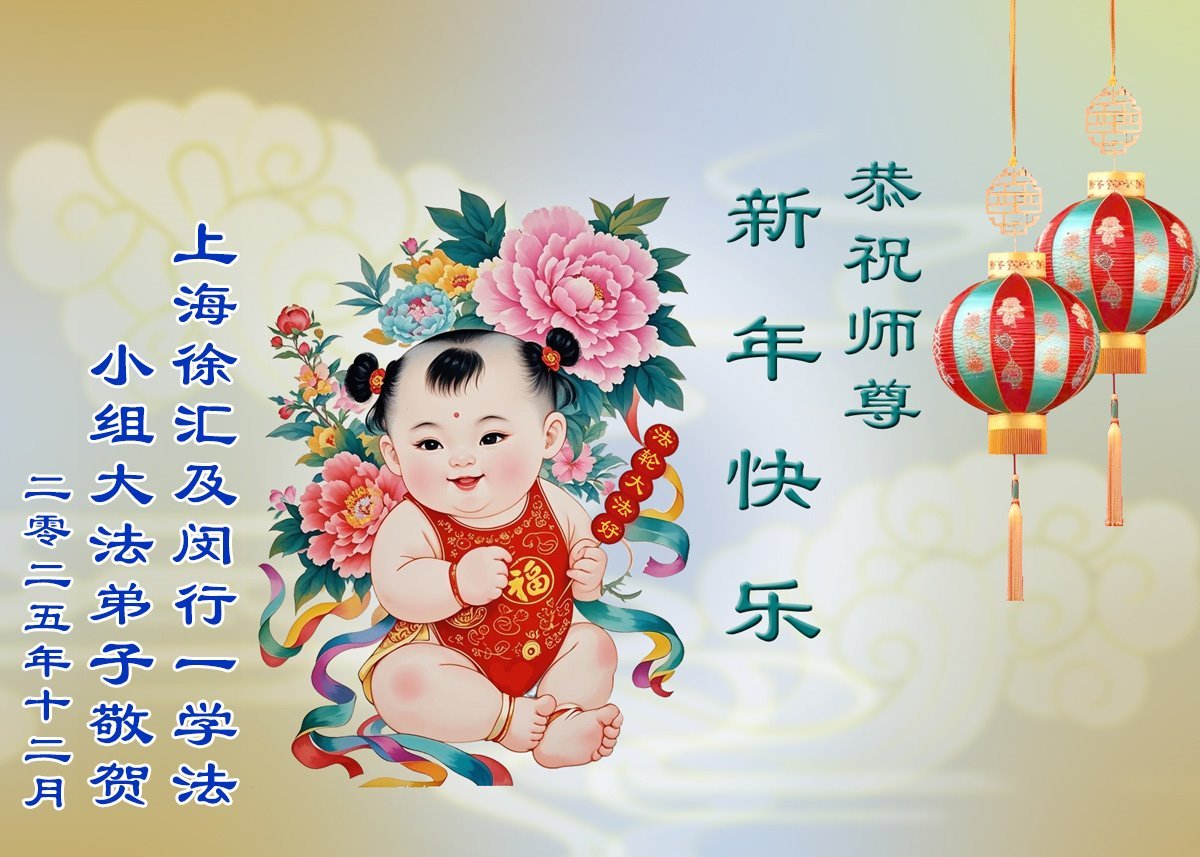 Falun Dafa praktikanti iz Šangaja s poštovanjem žele Učitelju Li Hongdžiju srećnu Novu godinu (37 čestitki)