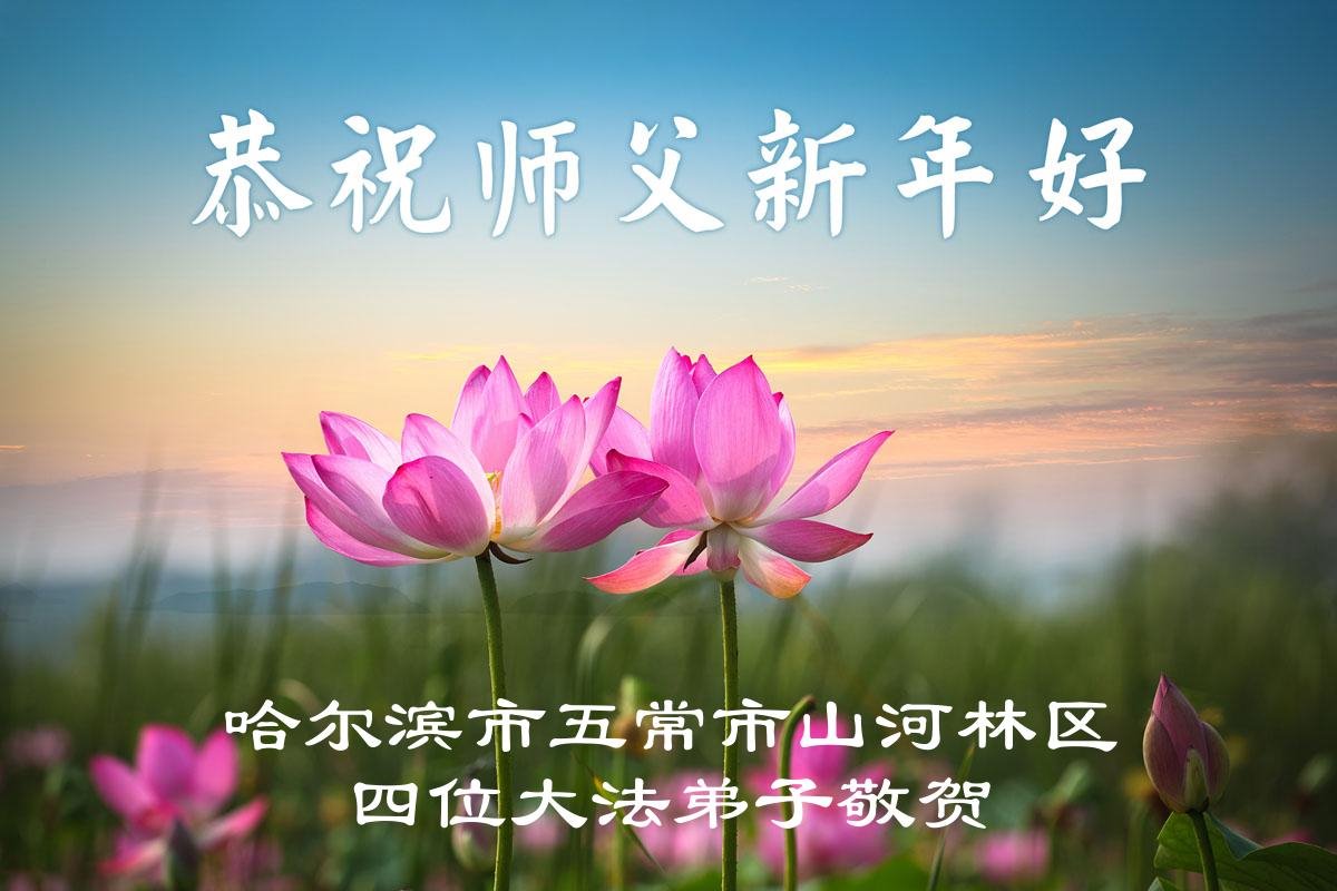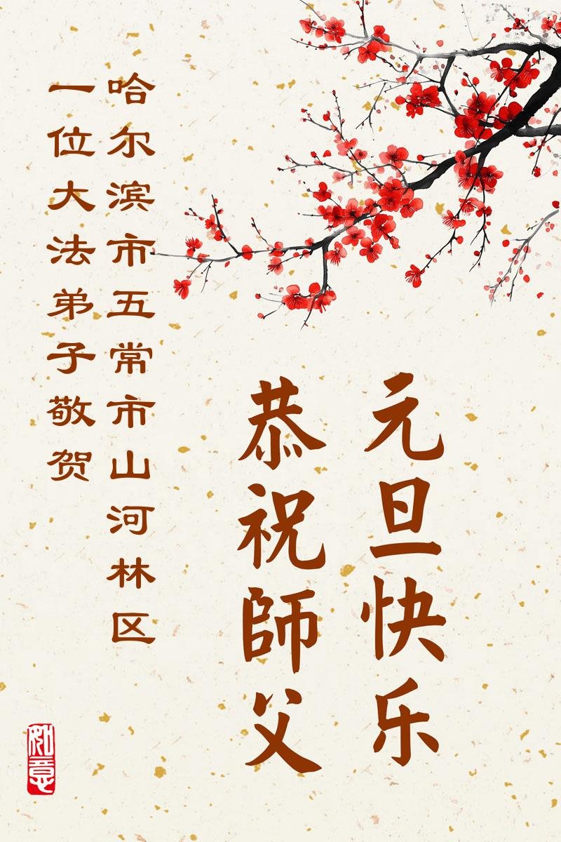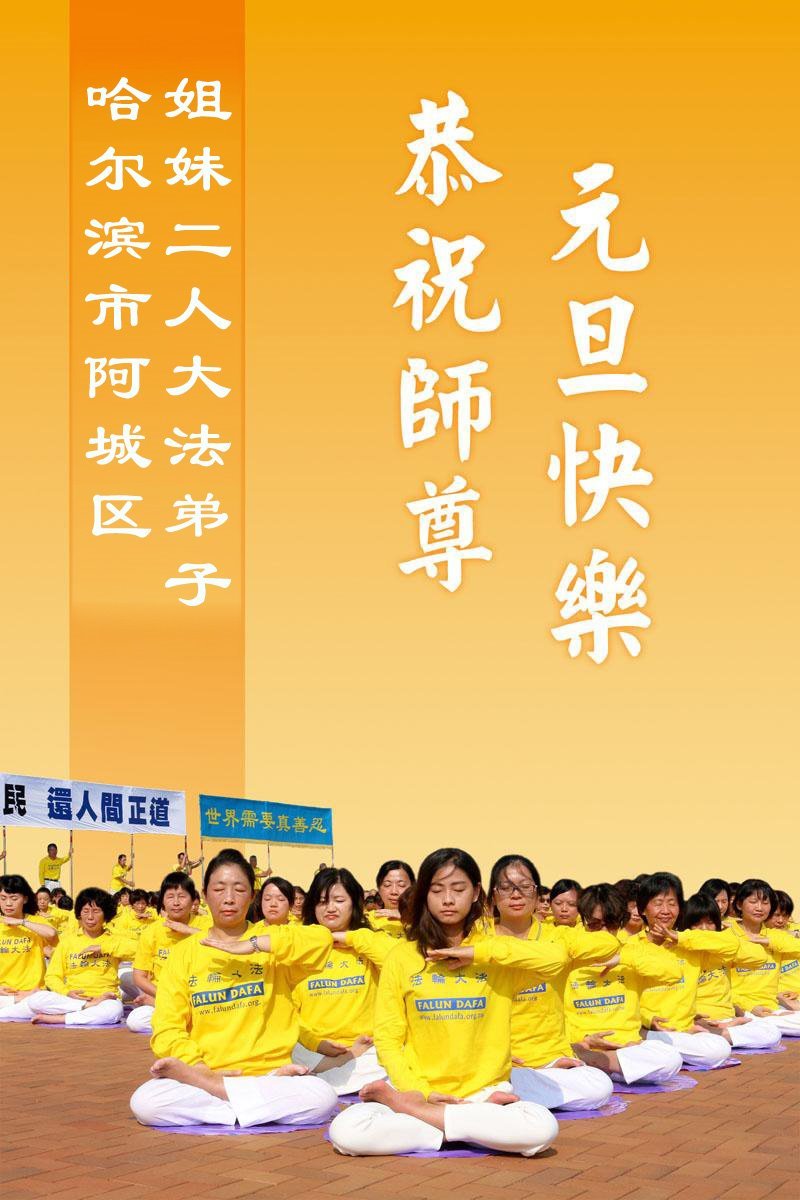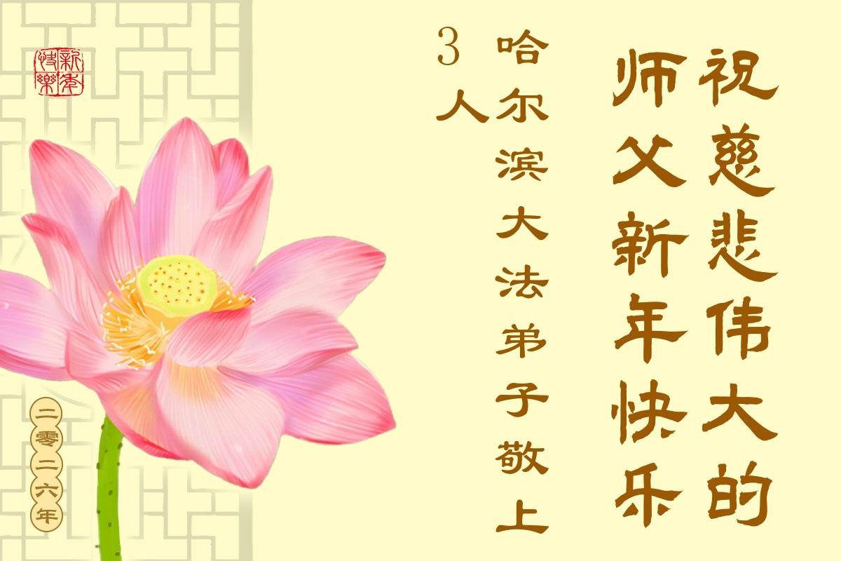 Falun Dafa praktikanti iz grada Harbina s poštovanjem žele Učitelju Li Hongdžiju srećnu Novu godinu (108 čestitki)