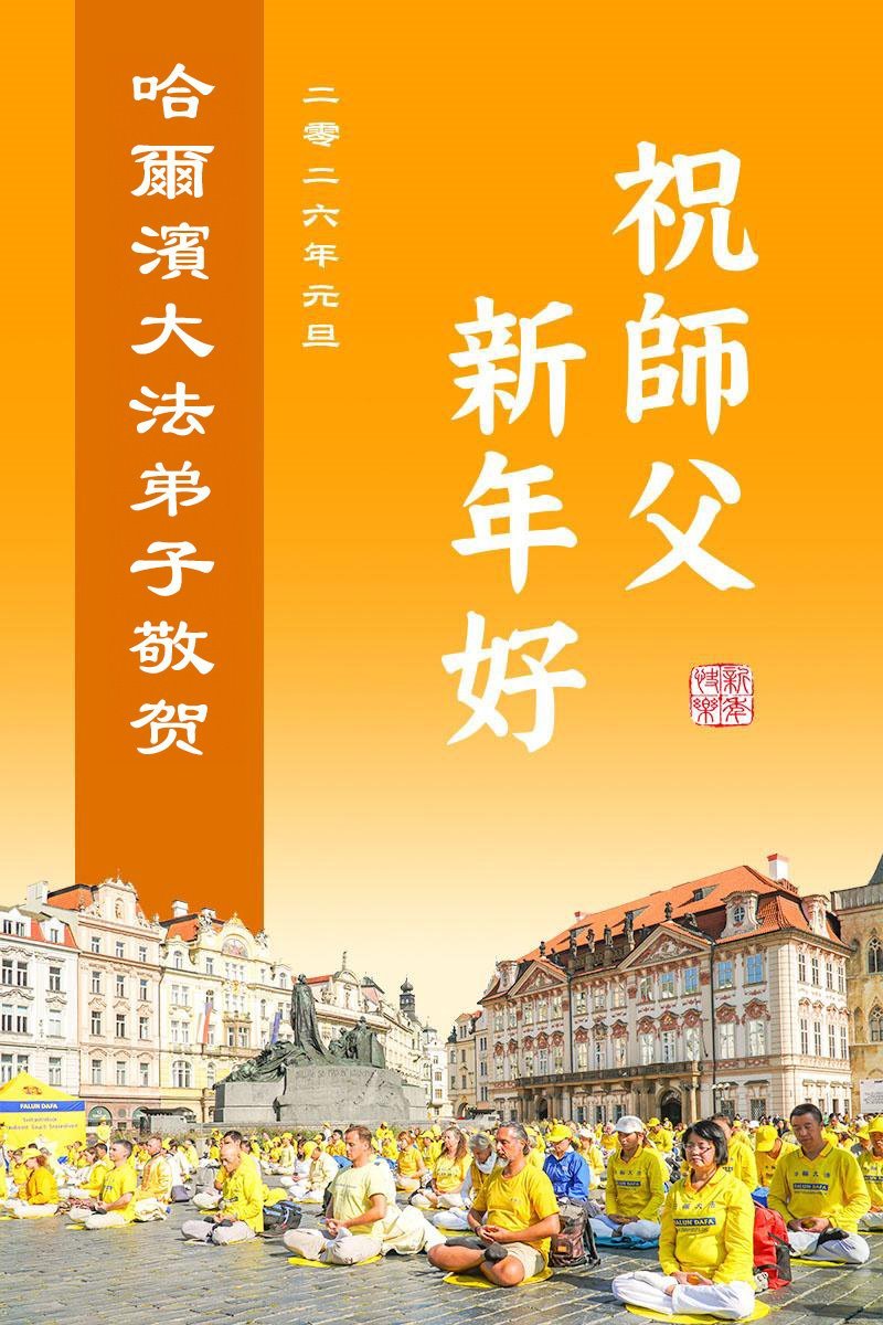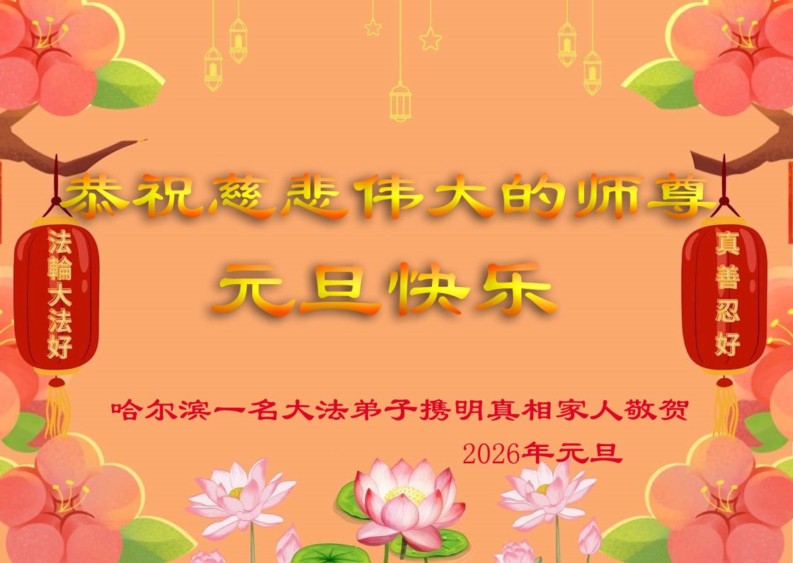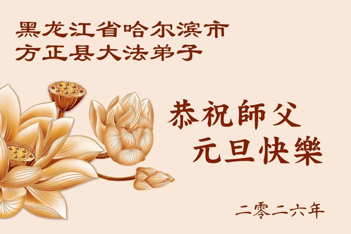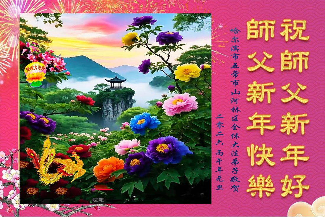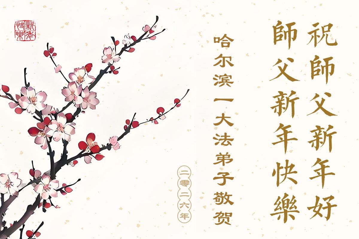 Falun Dafa praktikanti iz grada Harbina s poštovanjem žele Učitelju Li Hongdžiju srećnu Novu godinu (108 čestitki)