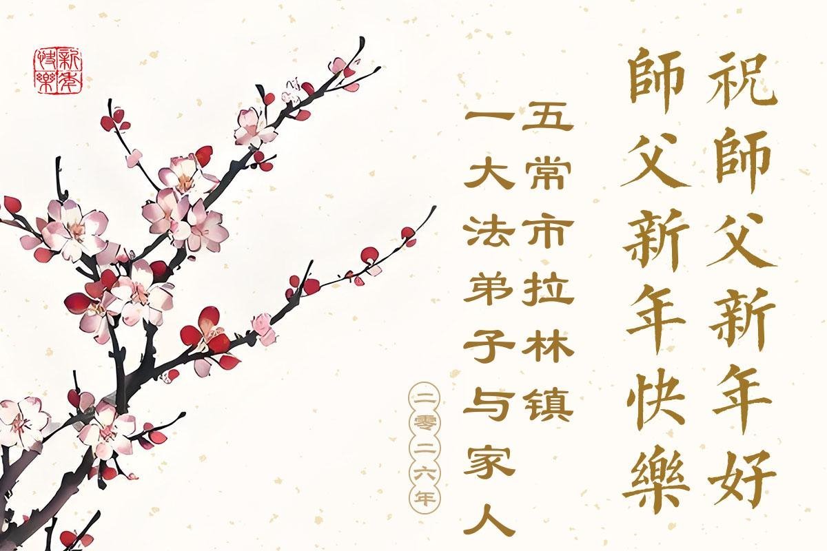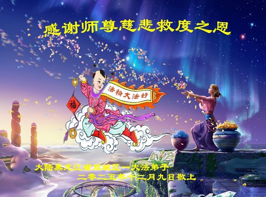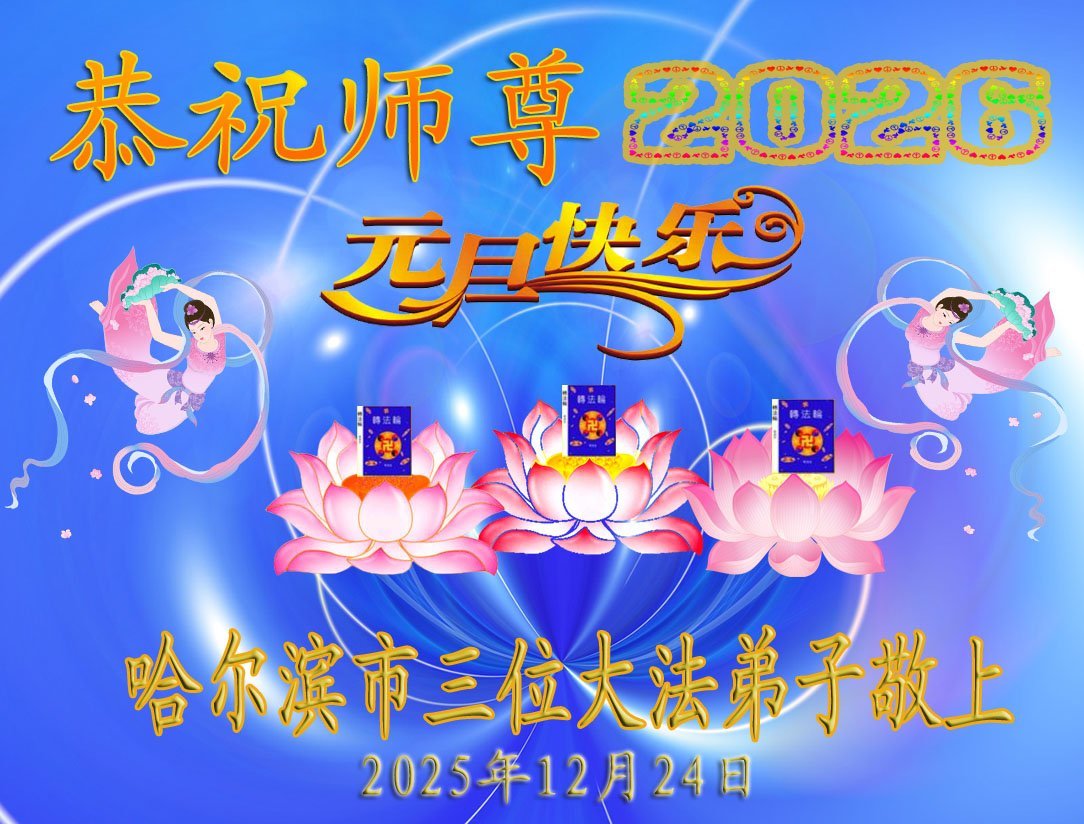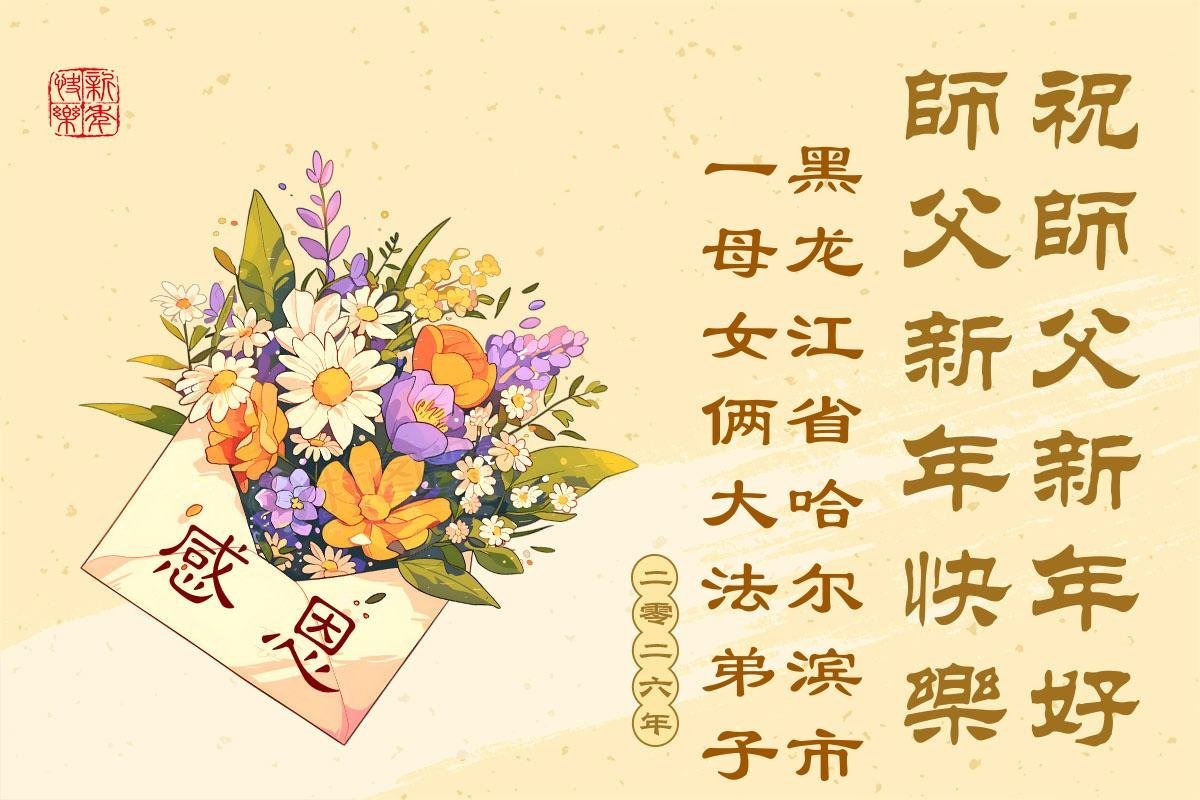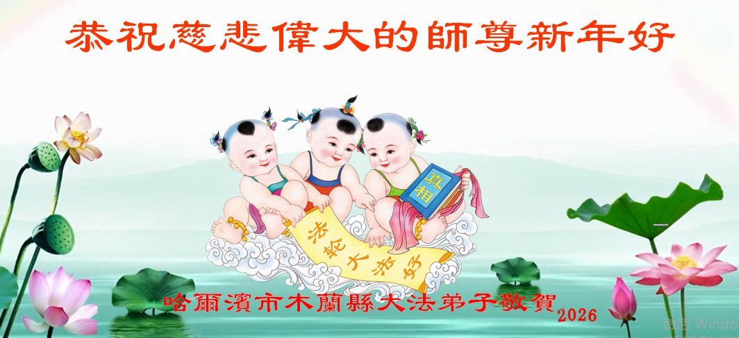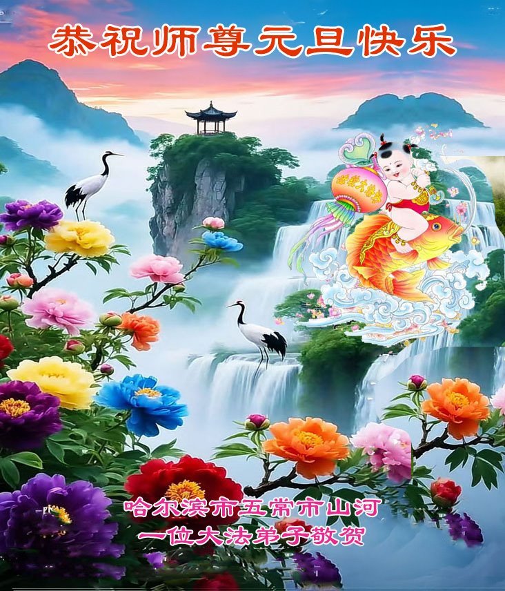Falun Dafa praktikanti iz grada Harbina s poštovanjem žele Učitelju Li Hongdžiju srećnu Novu godinu (108 čestitki)