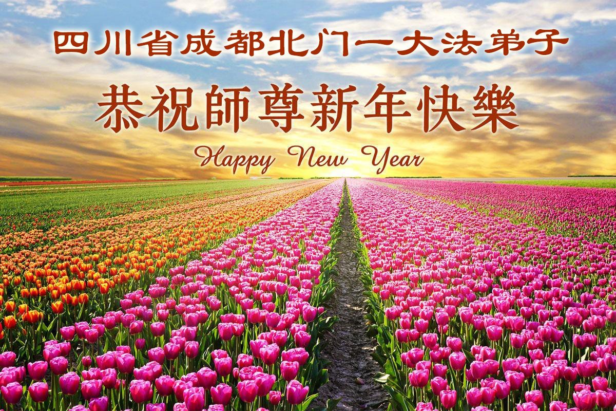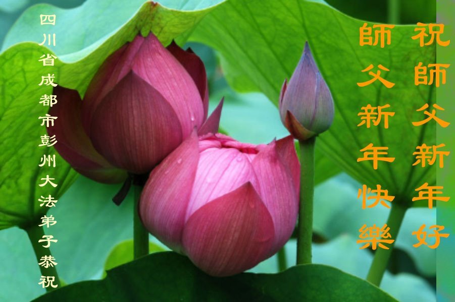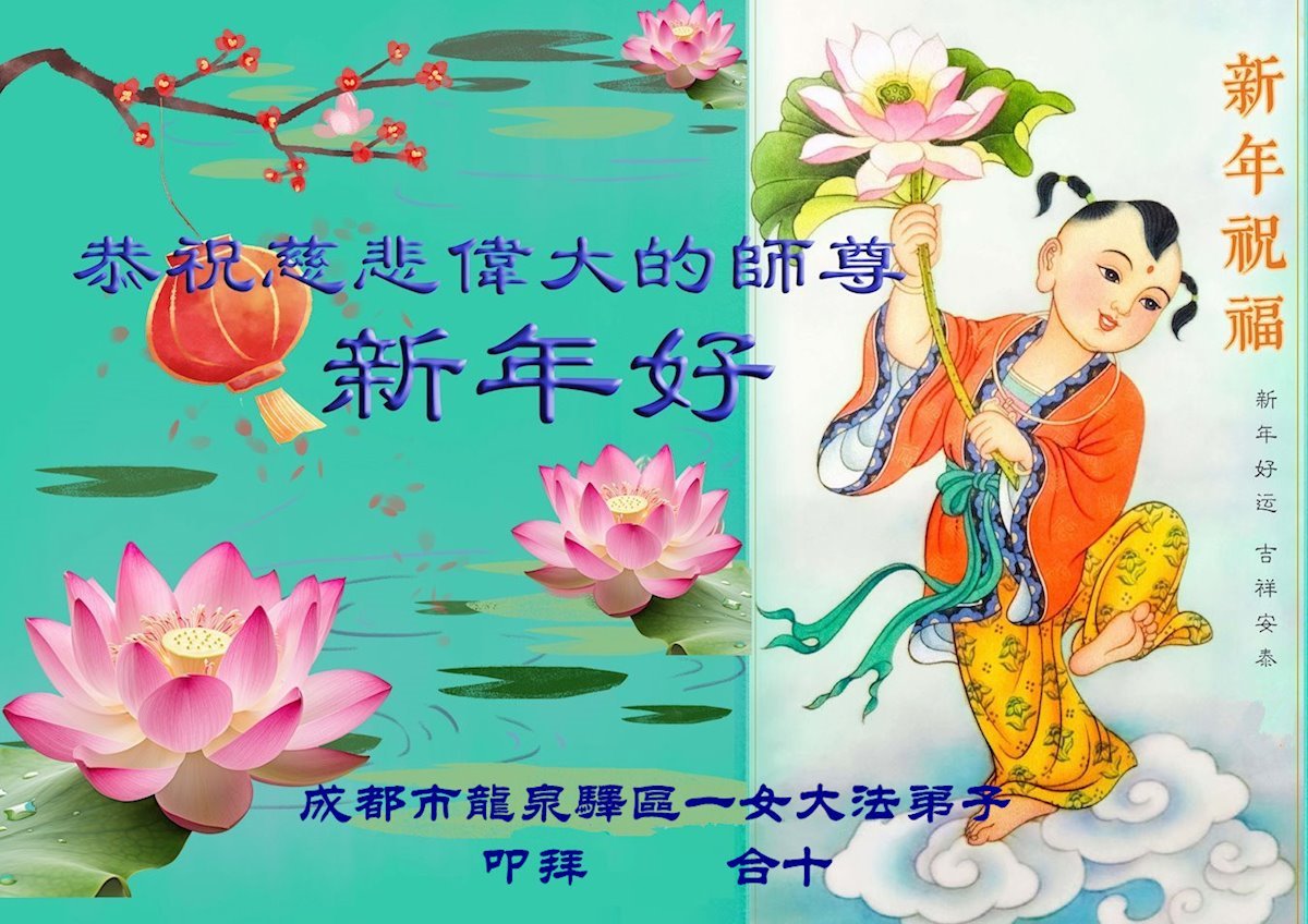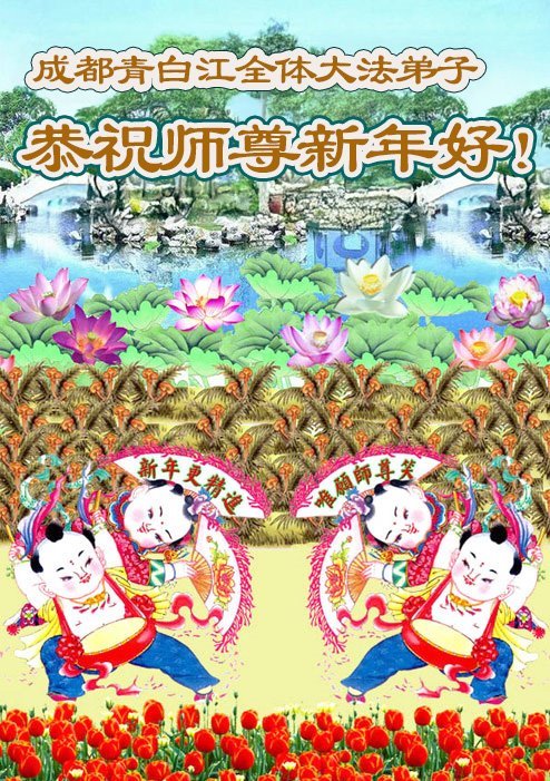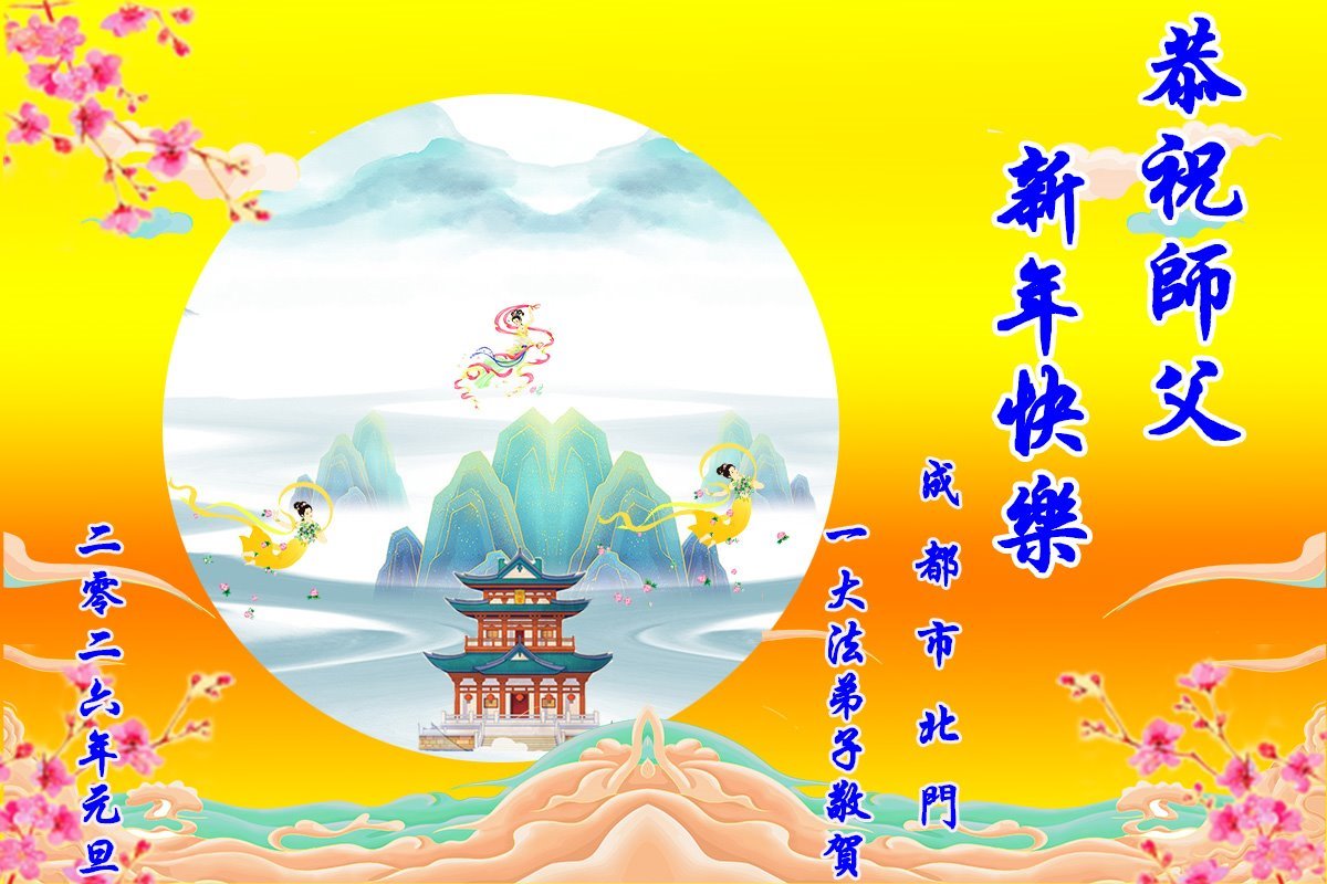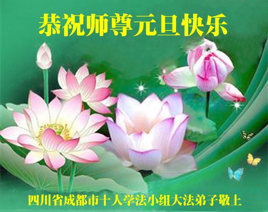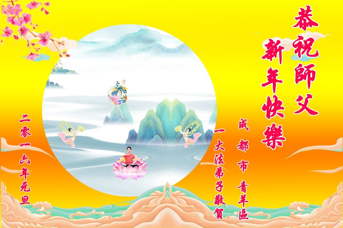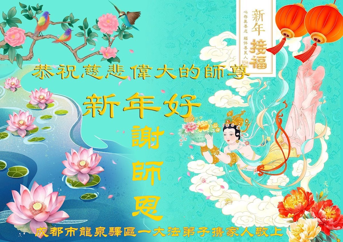 Falun Dafa praktikanti iz grada Čengdua s poštovanjem žele Učitelju Li Hongdžiju srećnu Novu godinu (102 čestitke)