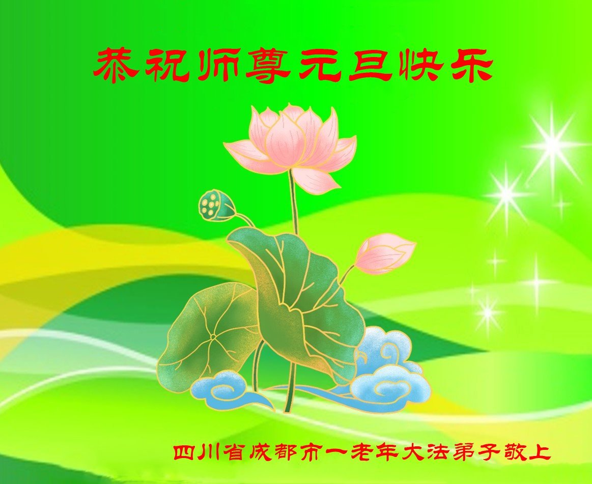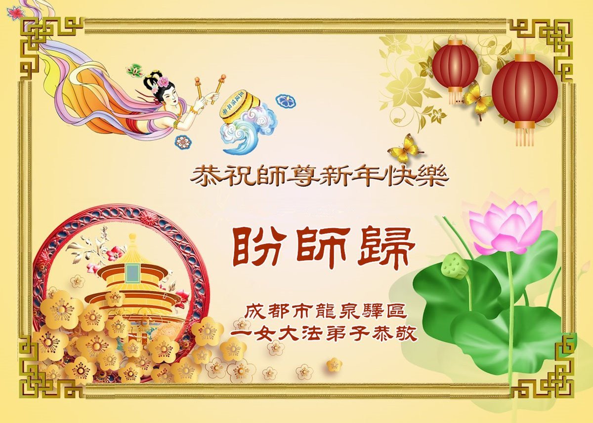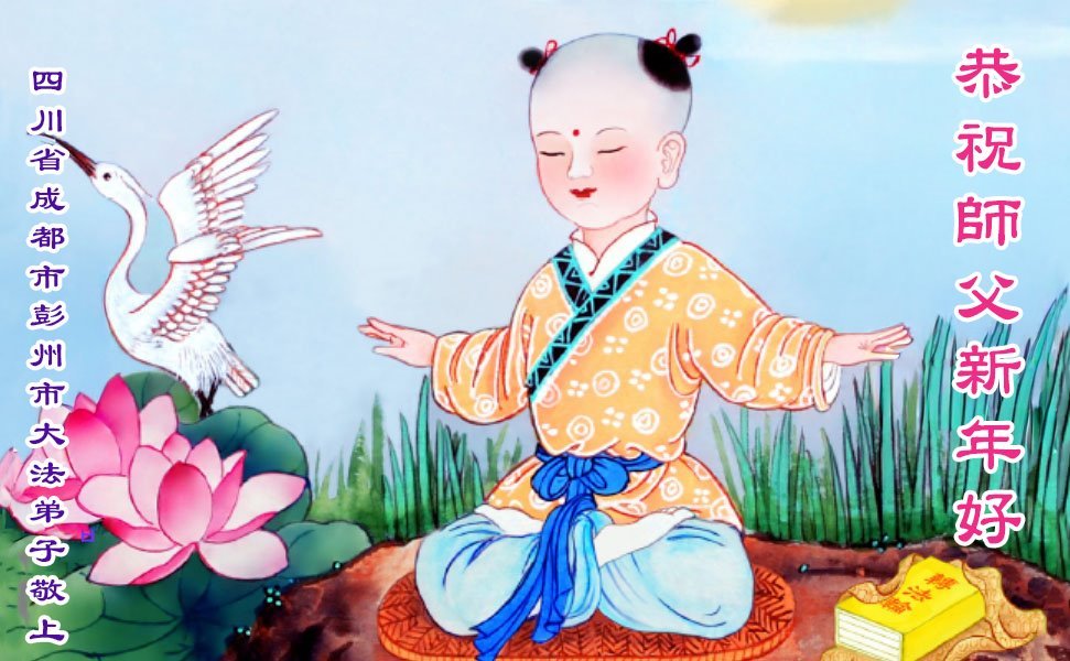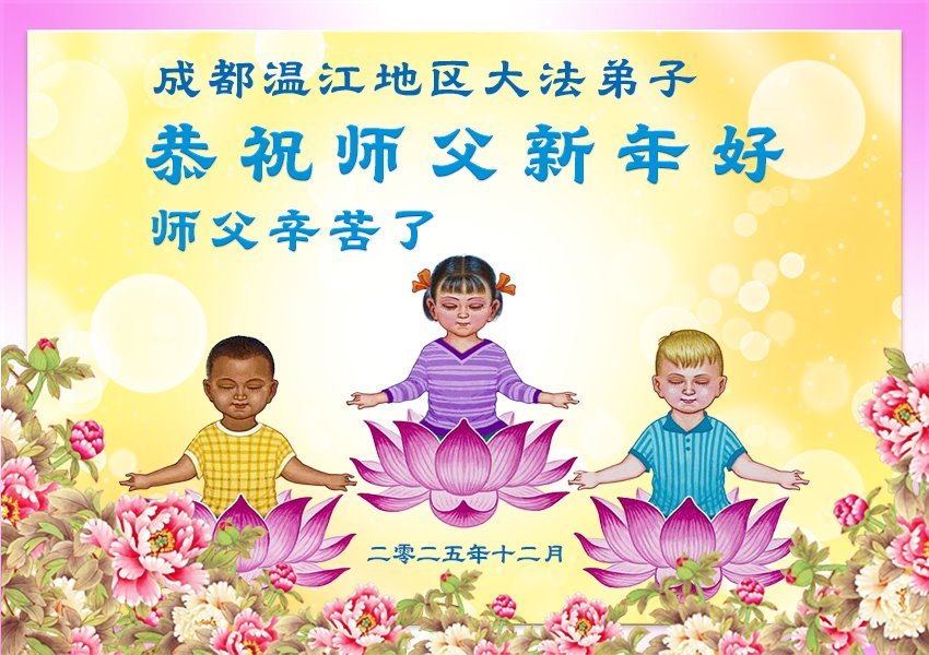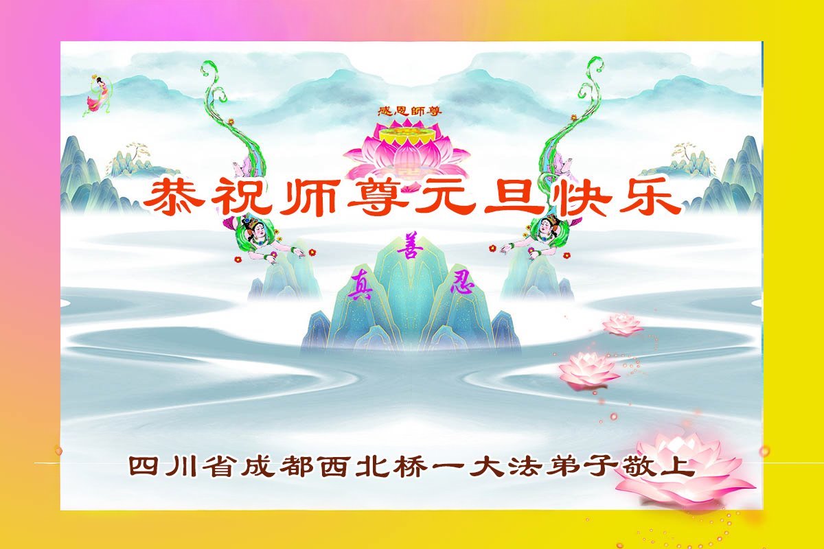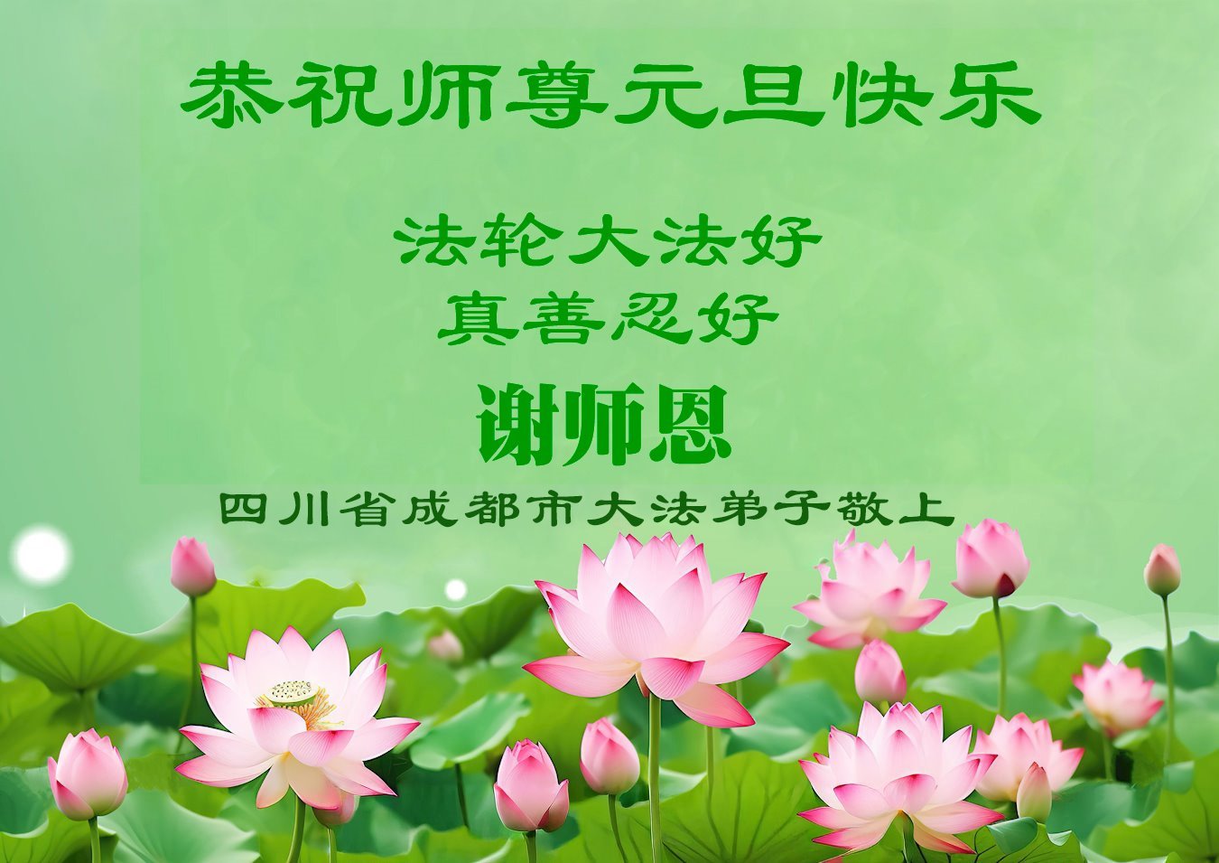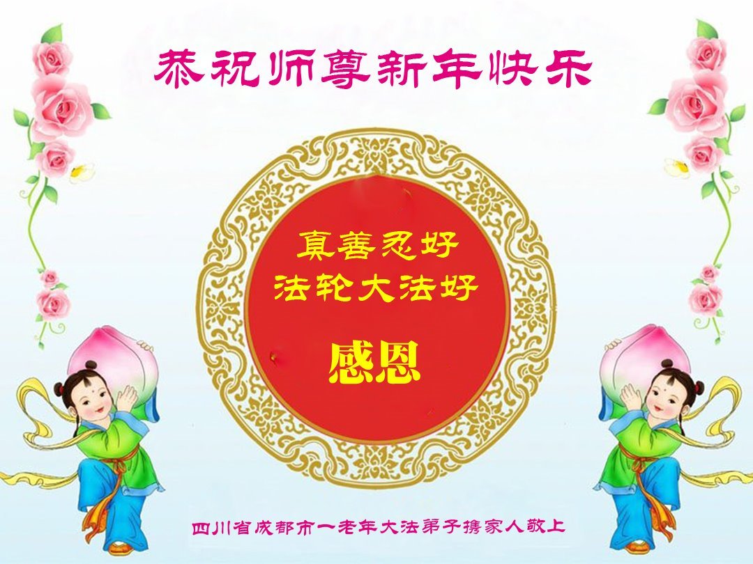 Falun Dafa praktikanti iz grada Čengdua s poštovanjem žele Učitelju Li Hongdžiju srećnu Novu godinu (102 čestitke)