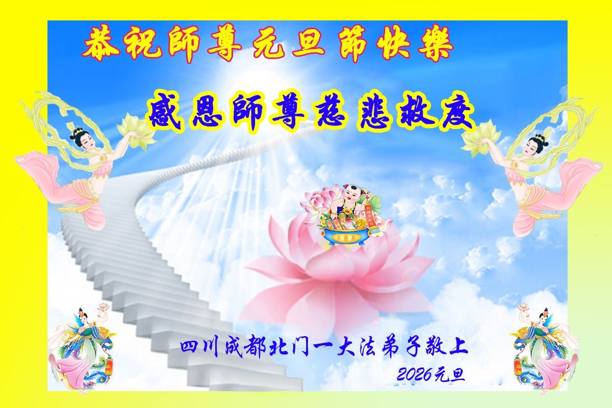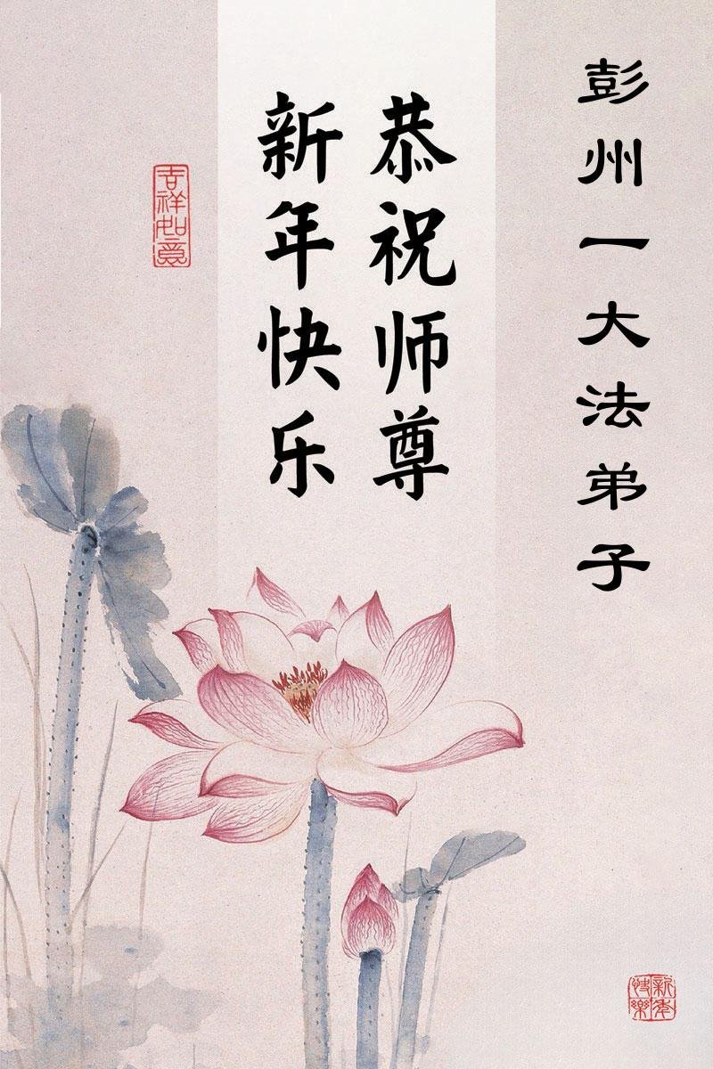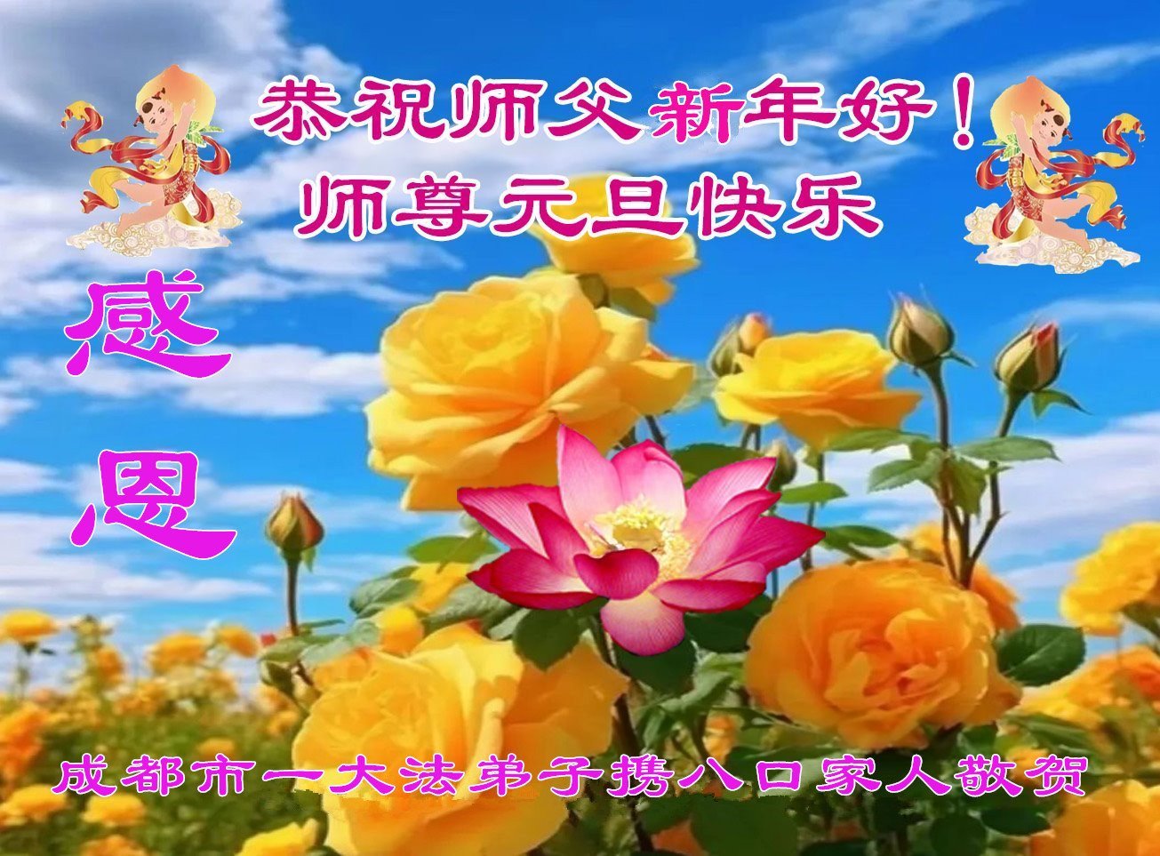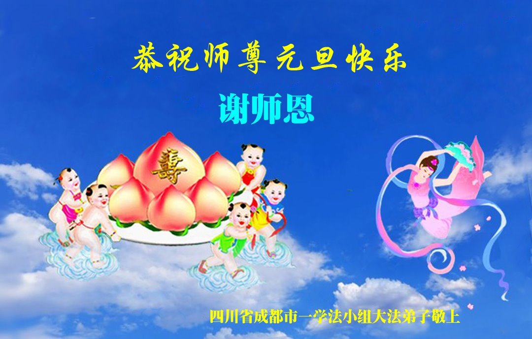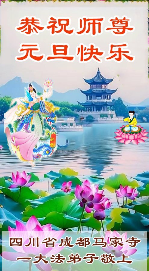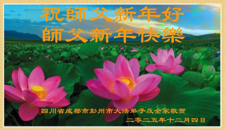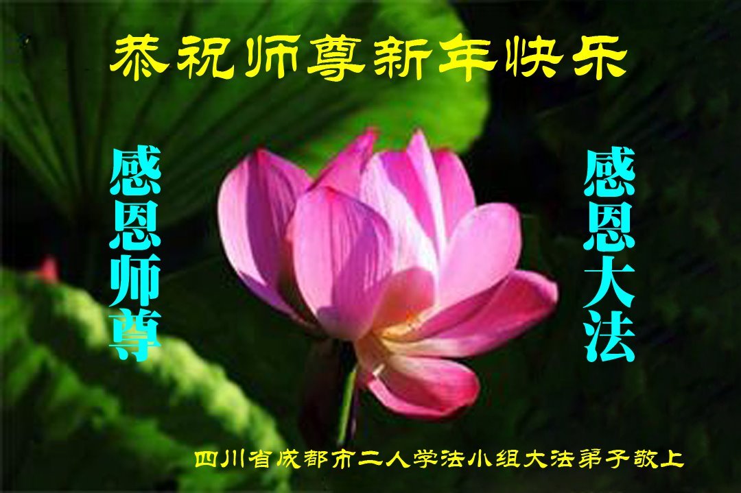 Falun Dafa praktikanti iz grada Čengdua s poštovanjem žele Učitelju Li Hongdžiju srećnu Novu godinu (102 čestitke)