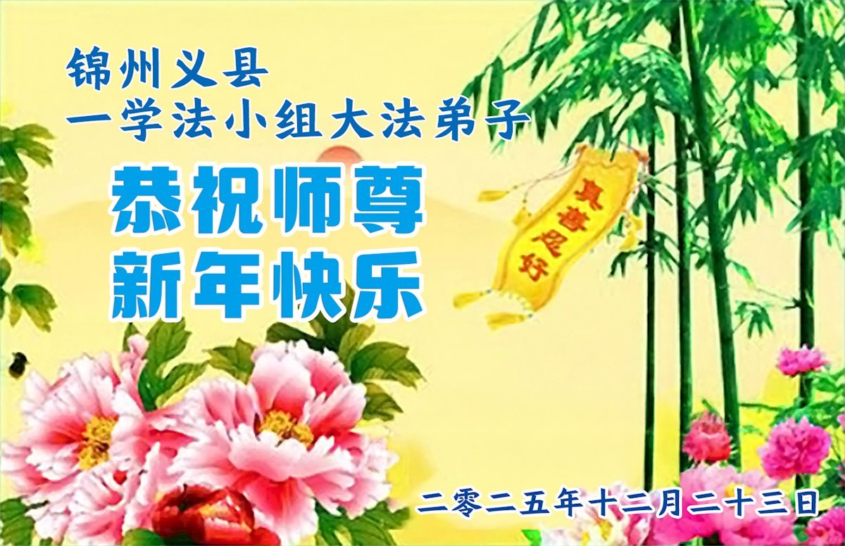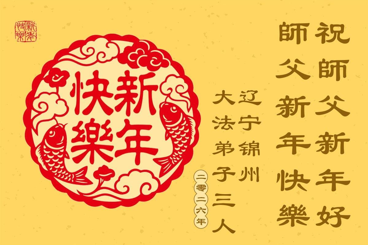 Falun Dafa praktikanti iz provincije Liaoning s poštovanjem žele Učitelju Li Hongdžiju srećnu Novu godinu (108 čestitki)