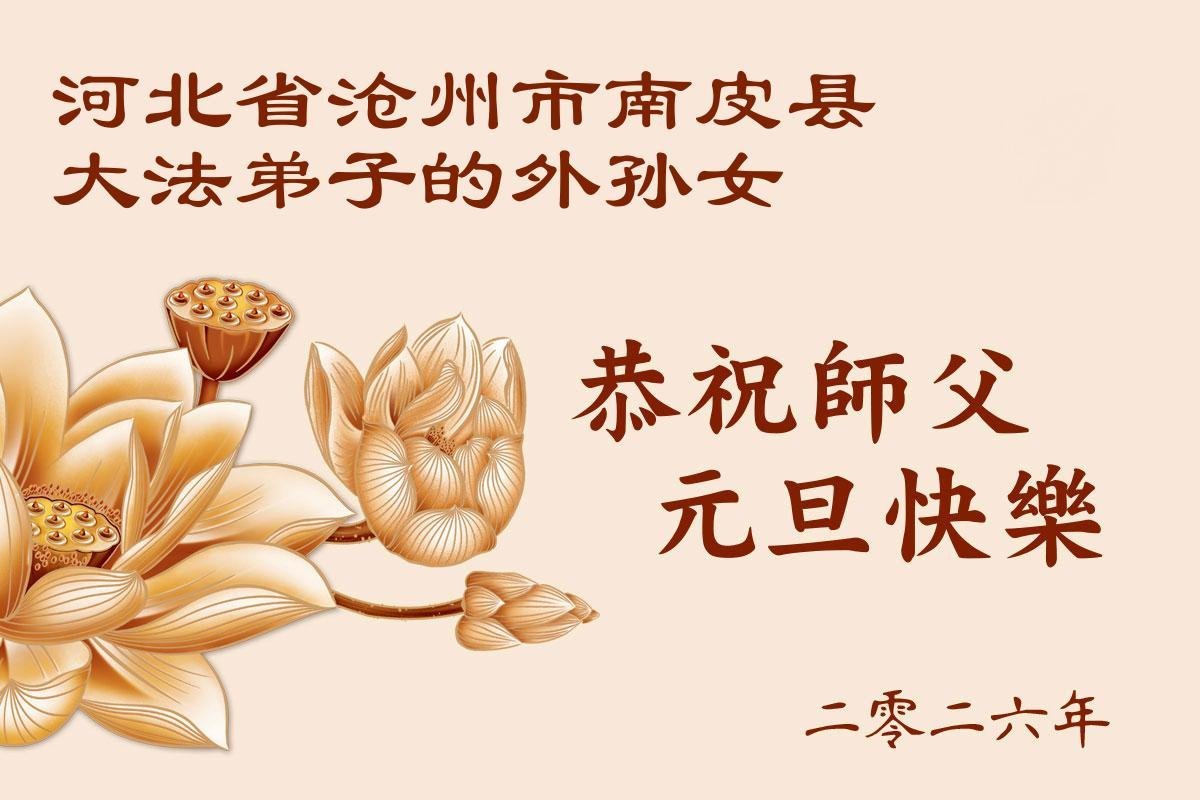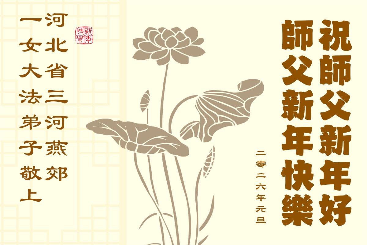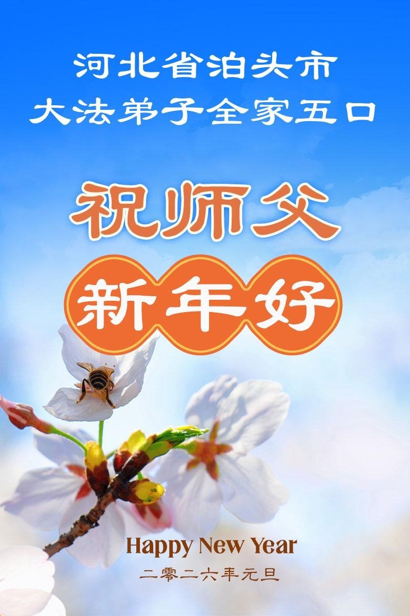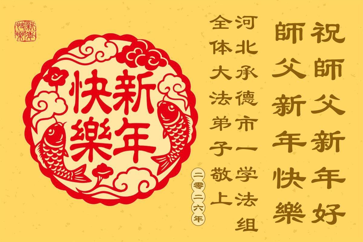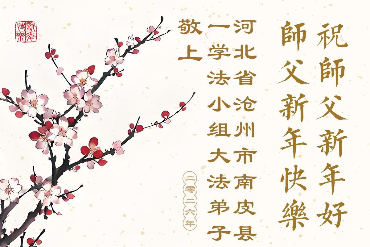 Falun Dafa praktikanti iz provincije Hebej s poštovanjem žele Učitelju Li Hongdžiju srećnu Novu godinu (108 čestitki)