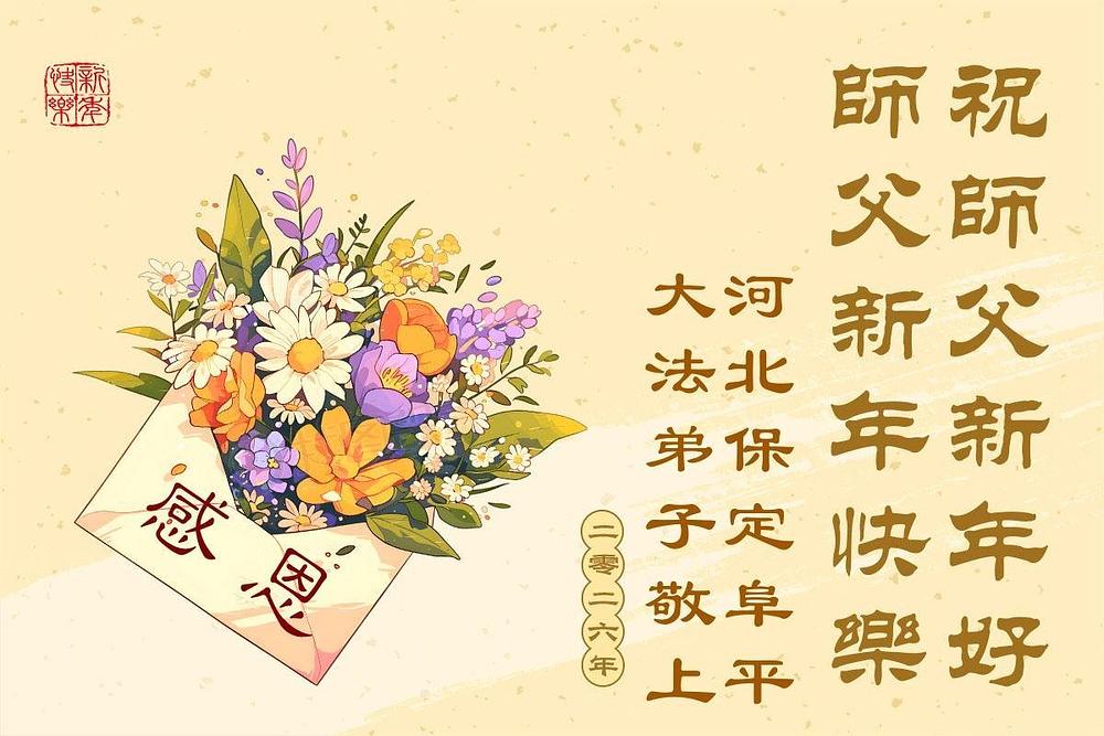 Falun Dafa praktikanti iz provincije Hebej s poštovanjem žele Učitelju Li Hongdžiju srećnu Novu godinu (115 čestitki)