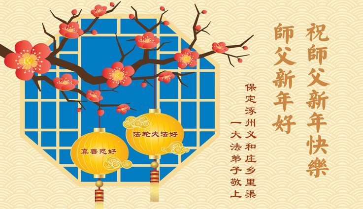 Falun Dafa praktikanti iz provincije Hebej s poštovanjem žele Učitelju Li Hongdžiju srećnu Novu godinu (110 čestitki)