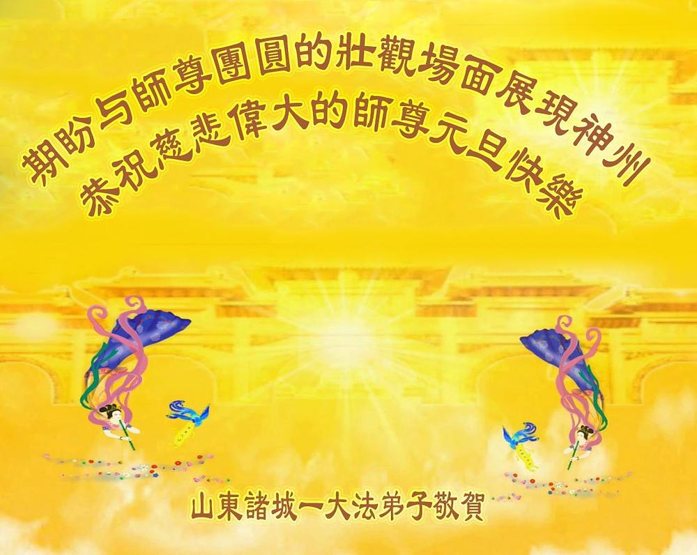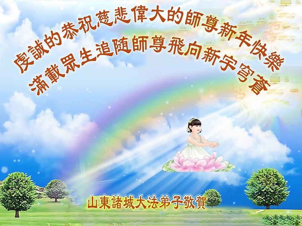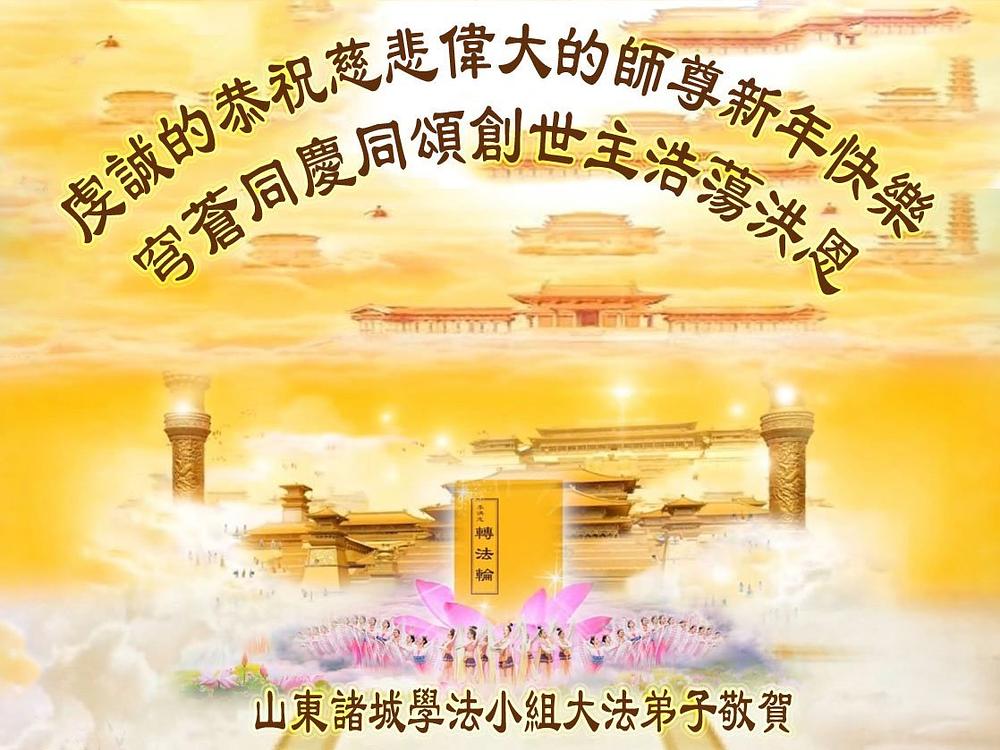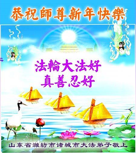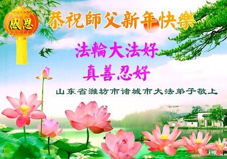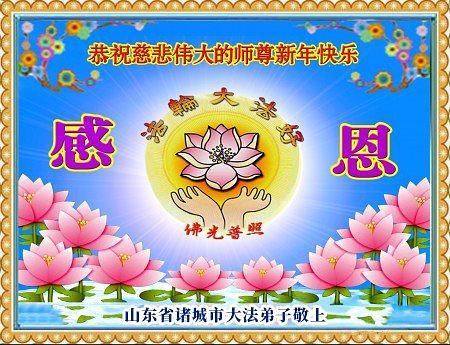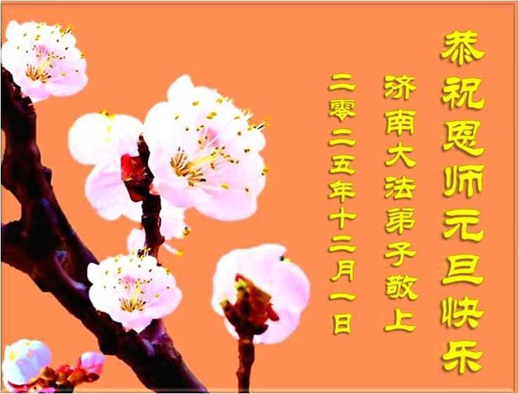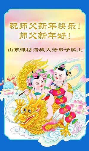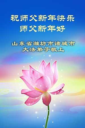 Falun Dafa praktikanti iz provincije Šandong s poštovanjem žele Učitelju Li Hongdžiju srećnu Novu godinu (108 čestitki)