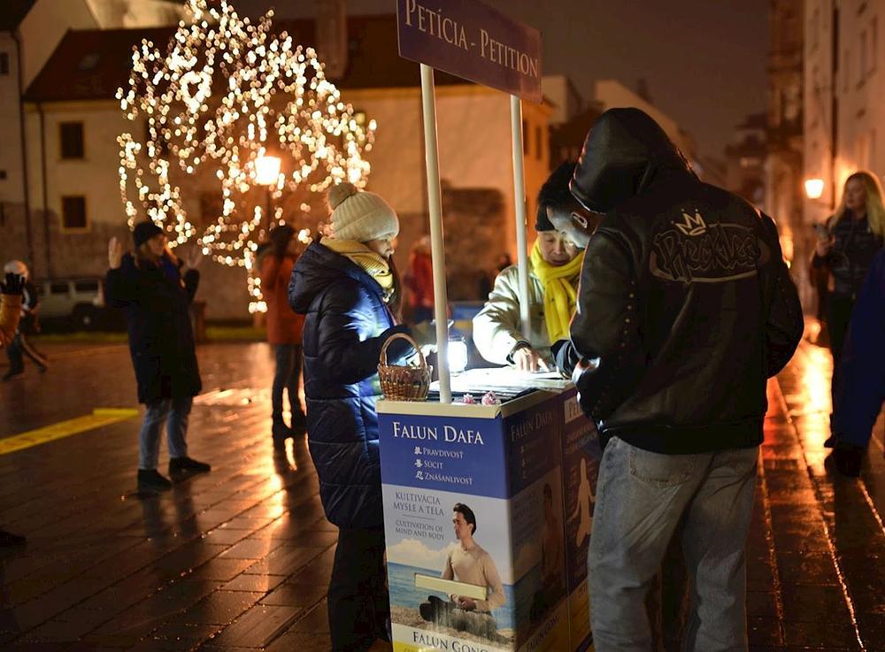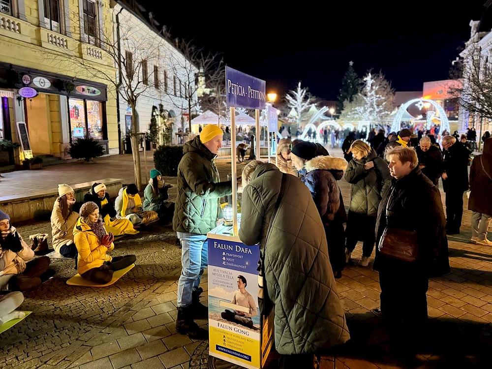 Od 29. novembra do 21. decembra 2025. godine, praktikanti su vikendom održavali događaje u gradovima Nitra i Bratislava kako bi ljudima govorili o kršenju ljudskih prava povezanom sa progonom Falun Gonga (Falun Dafe) u Kini.