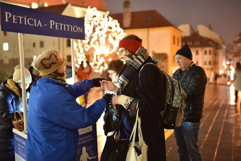 Andrej iz Partizanske i njegova devojka došli su da posete božićne markete u Nitri. Andrej je saznao za progon Falun Gonga sa društvenih mreža. Kad je saznao više o Falun Gongu na licu mesta, odlučio je da potpiše peticiju, a njegova devojka mu se pridružila rekavši: „I ja želim da potpišem peticiju!“
