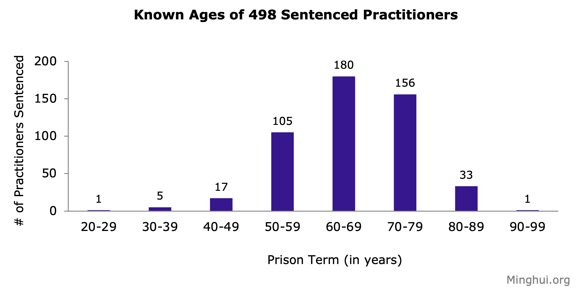 Među 498 od 751 praktikanta čija je dob u vrijeme presude bila poznata, jedan je bio u 20-im godinama, pet u 30-im, 17 u 40-im, 105 u 50-im, 180 u 60-im, 156 u 70-im, 33 u 80-im i jedan u 90-im godinama..