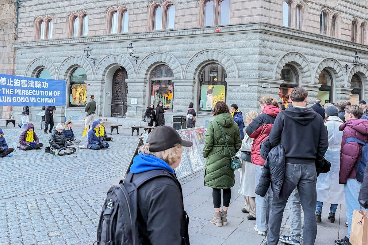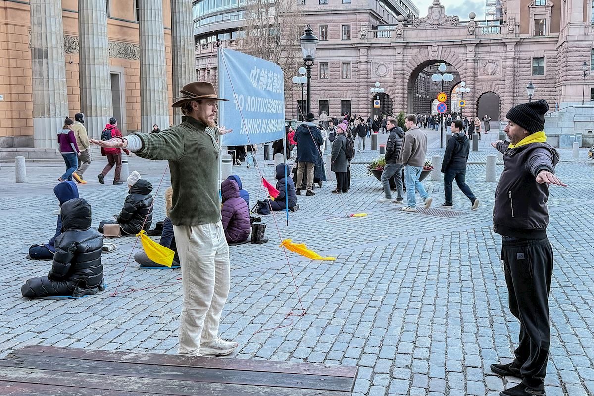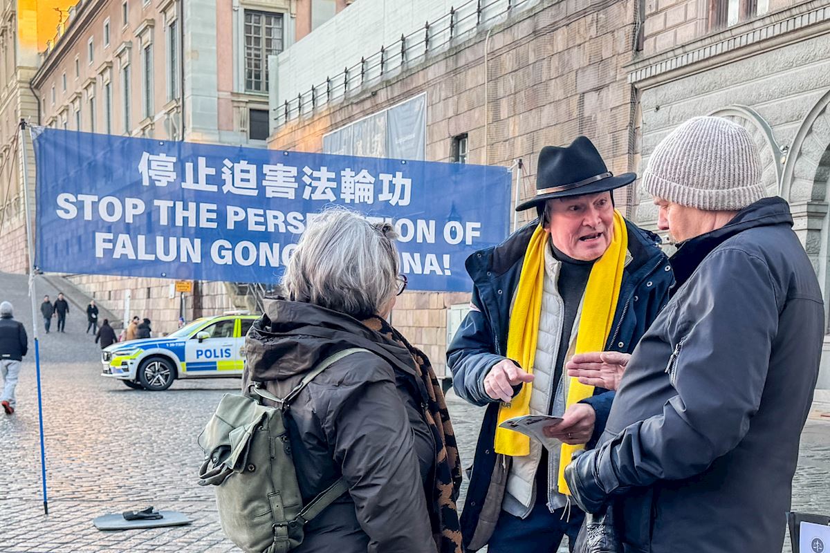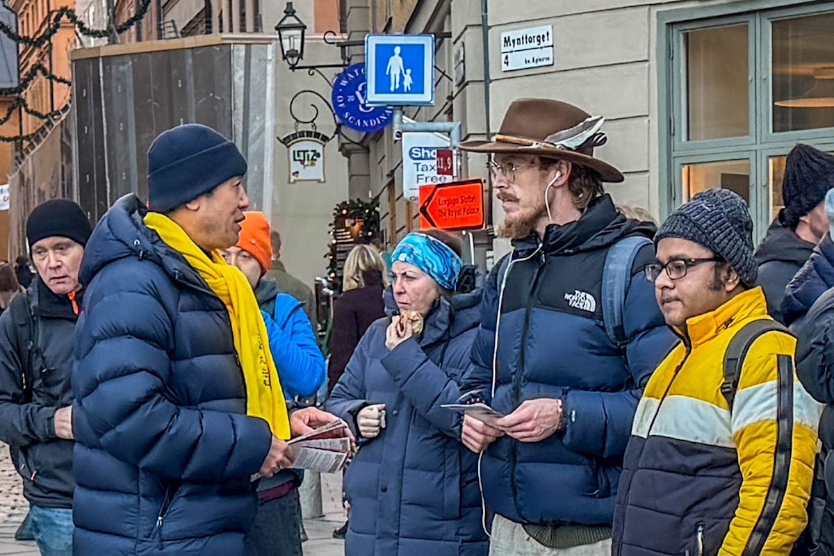 Falun Dafa praktikanti održavali su događaje na Mynttorgetu blizu Kraljevske palate (Kungliga Slottet) i pored poznate koncertne dvorane u Stokholmu svakog petka i subote popodne tokom decembra 2025. Demonstrirali su Falun Dafa vežbe i prikupljali potpise na peticiji kojom se poziva na okončanje progona praktikanata u Kini.