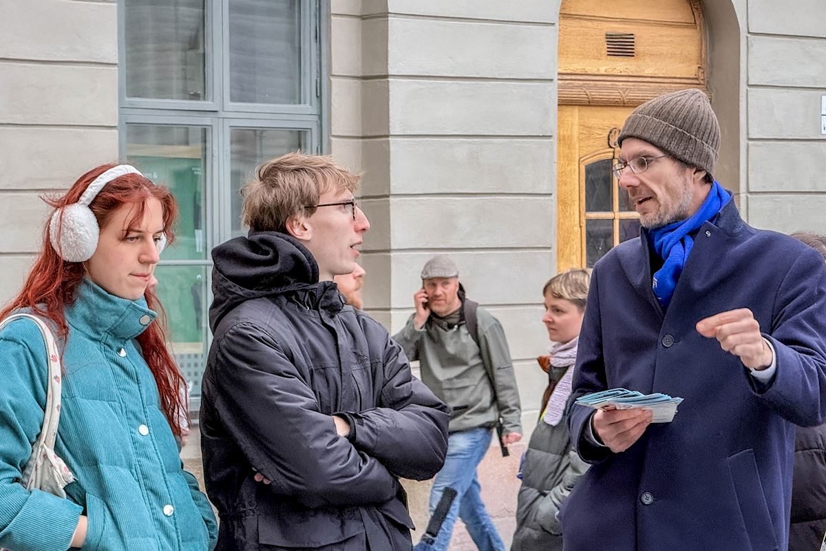 Praktikanti su u subotu, 27. decembra 2025, postavili štand na Mynttorgetu, u blizini najpopularnije gradske atrakcije, Kraljevske palate, koja vodi do Starog grada (Gamla Stan).
