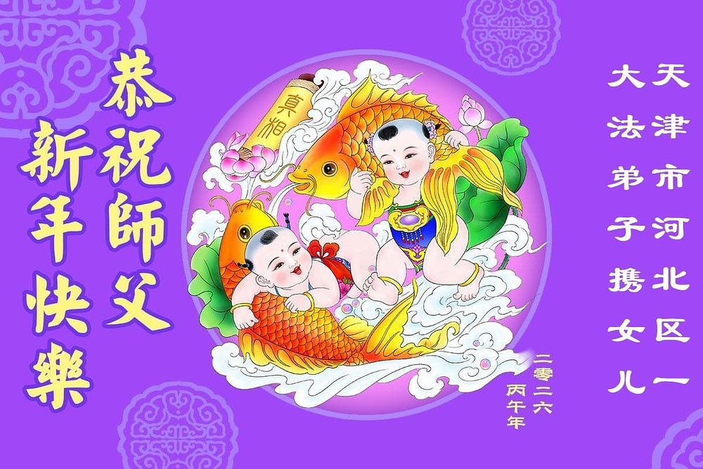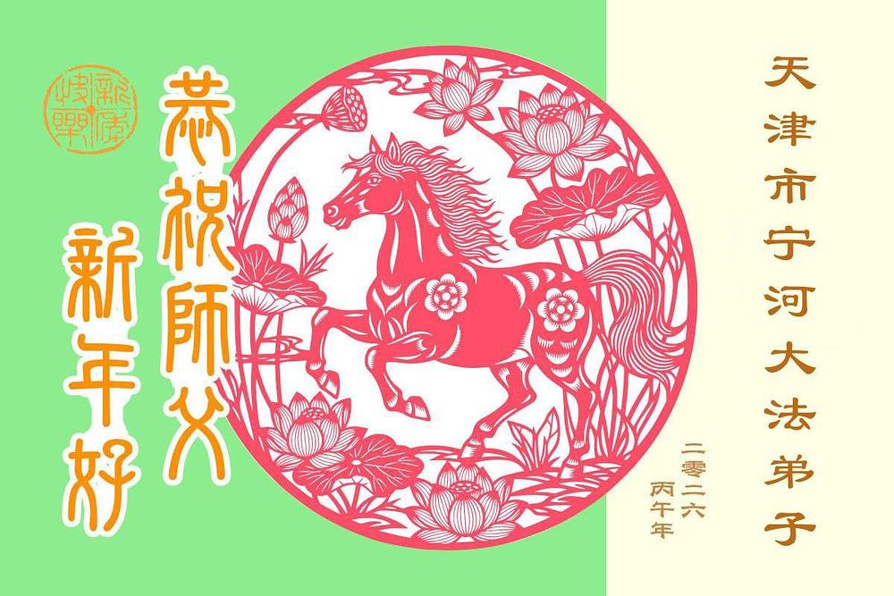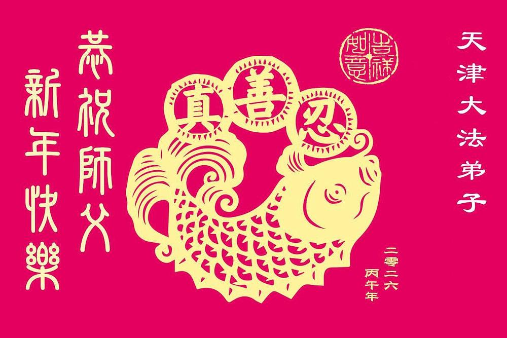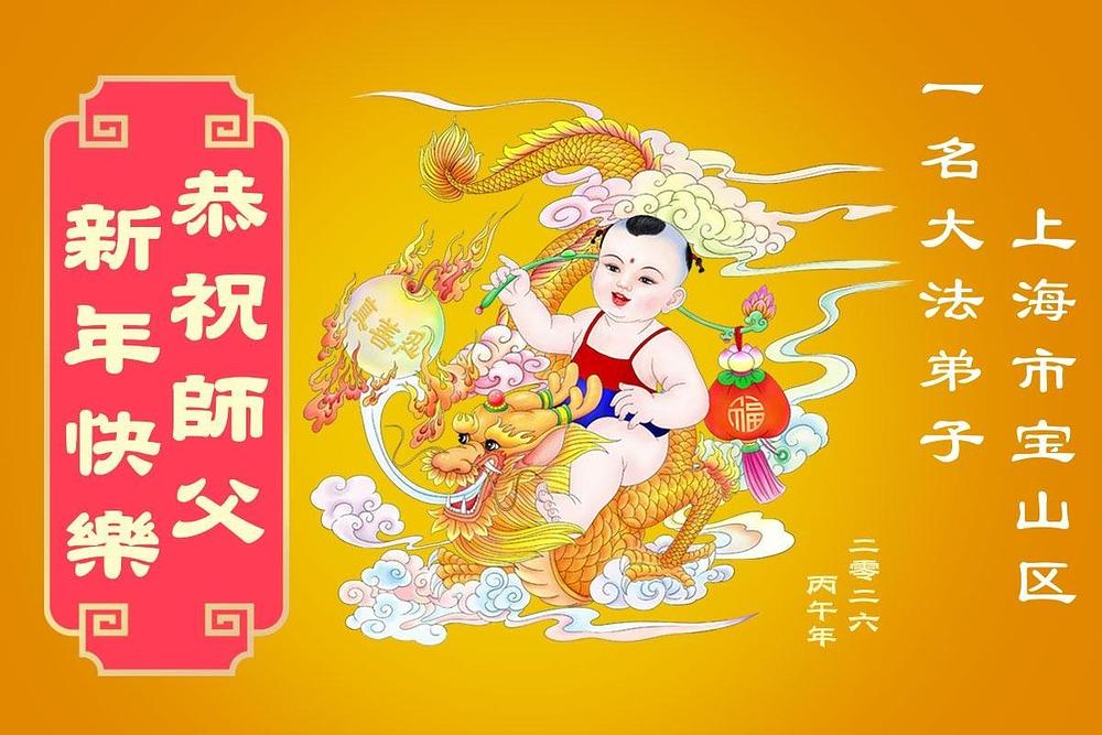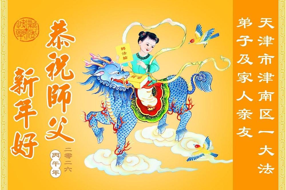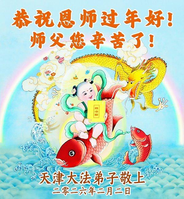 Falun Dafa praktikanti u Tjenđinu i Šangaju s poštovanjem žele Učitelju Li Hongdžiju srećnu kinesku Novu godinu (107 čestitki)