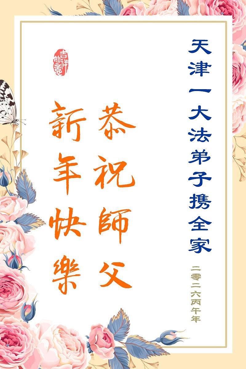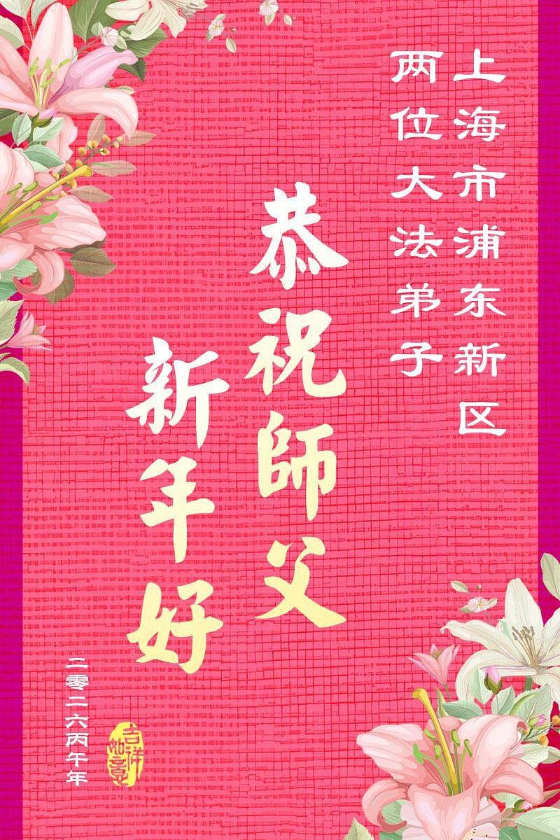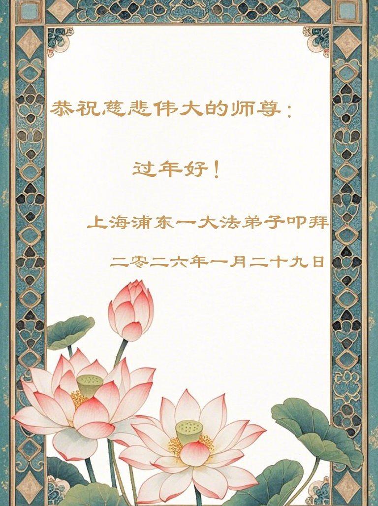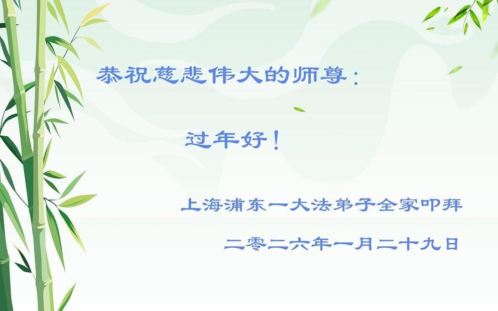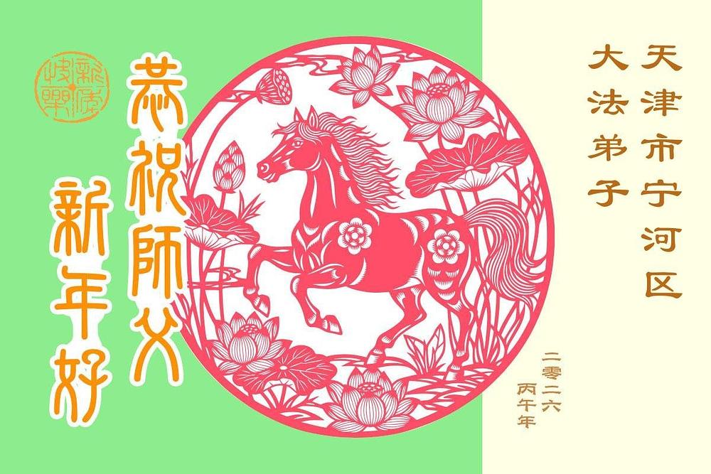 Falun Dafa praktikanti u Tjenđinu i Šangaju s poštovanjem žele Učitelju Li Hongdžiju srećnu kinesku Novu godinu (107 čestitki)