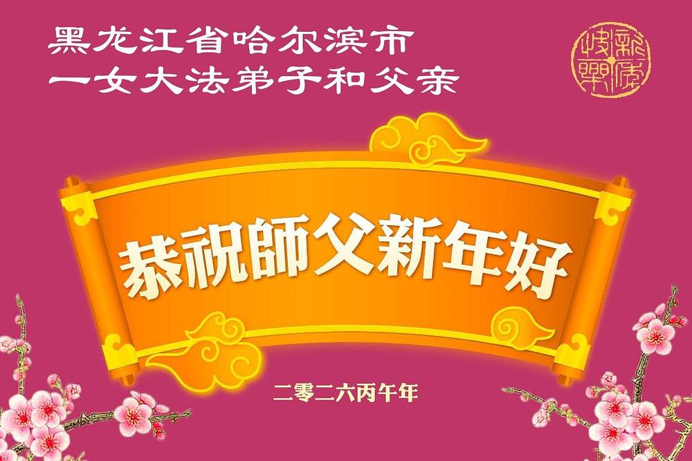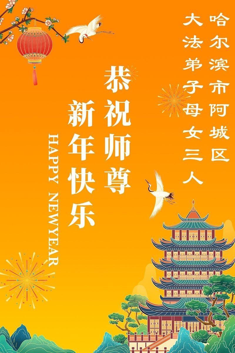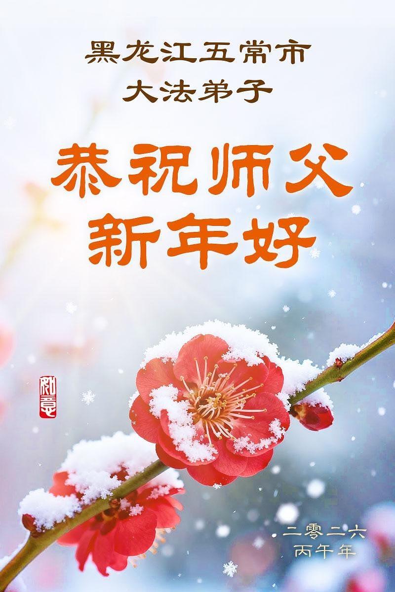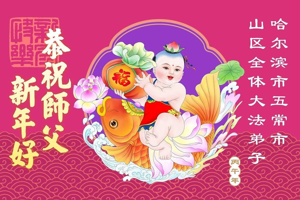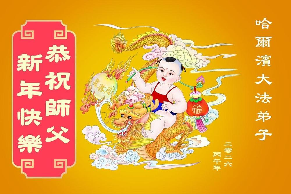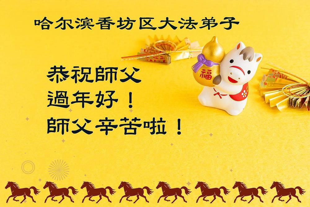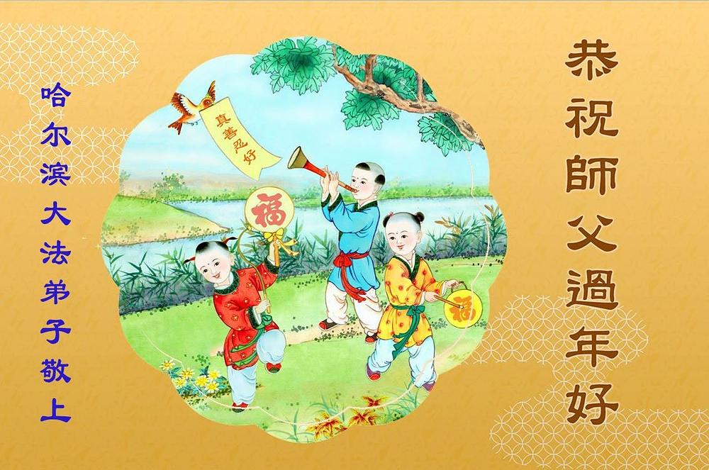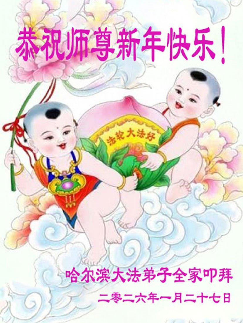 Falun Dafa praktikanti u gradu Harbinu s poštovanjem žele Učitelju Li Hongdžiju srećnu kinesku Novu godinu (104 čestitke)