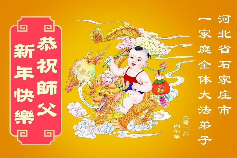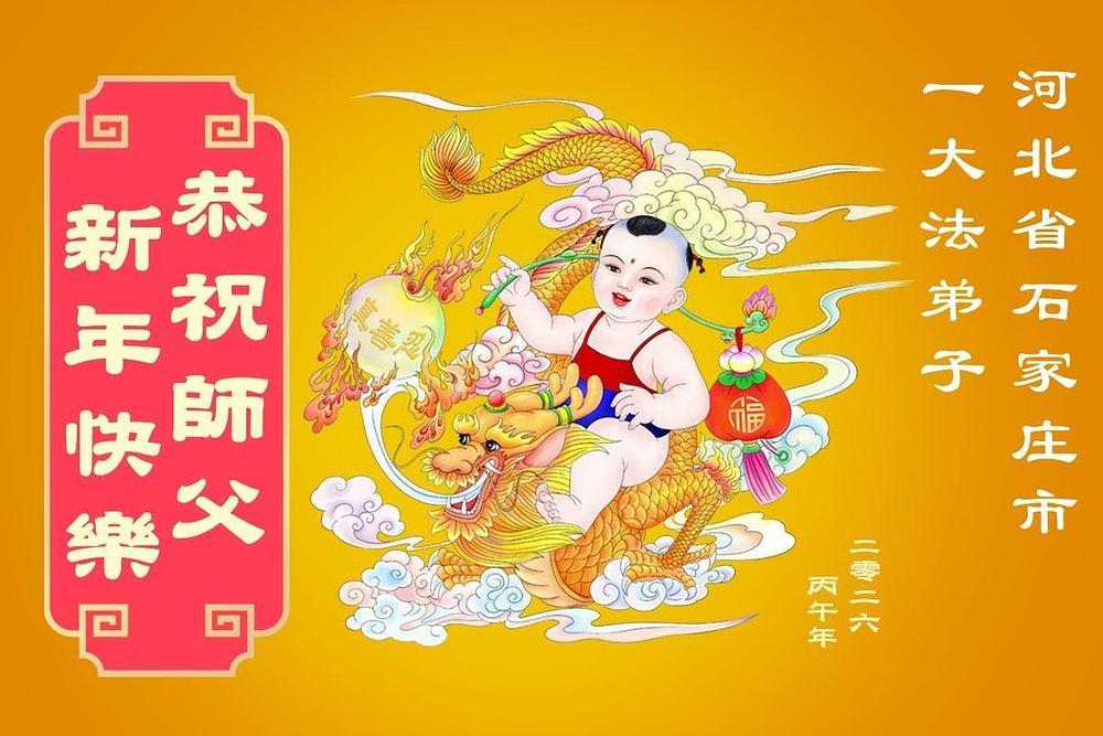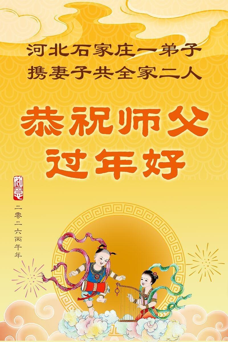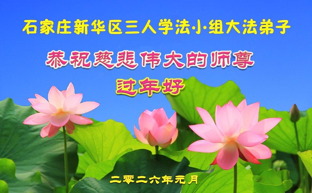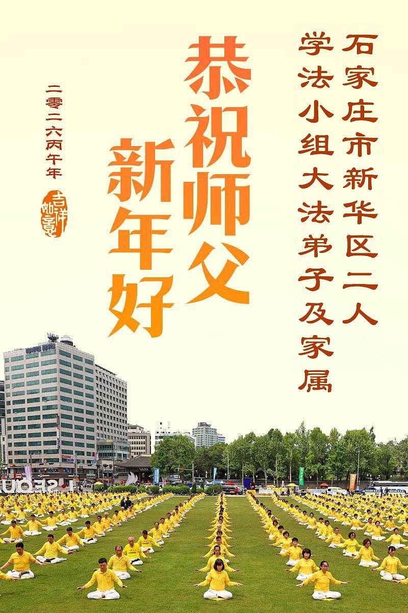 Praktikanti Falun Dafe u gradu Šiđadžuang s poštovanjem žele učitelju Li Hongdžiju srećnu kinesku Novu godinu (105 čestitki)