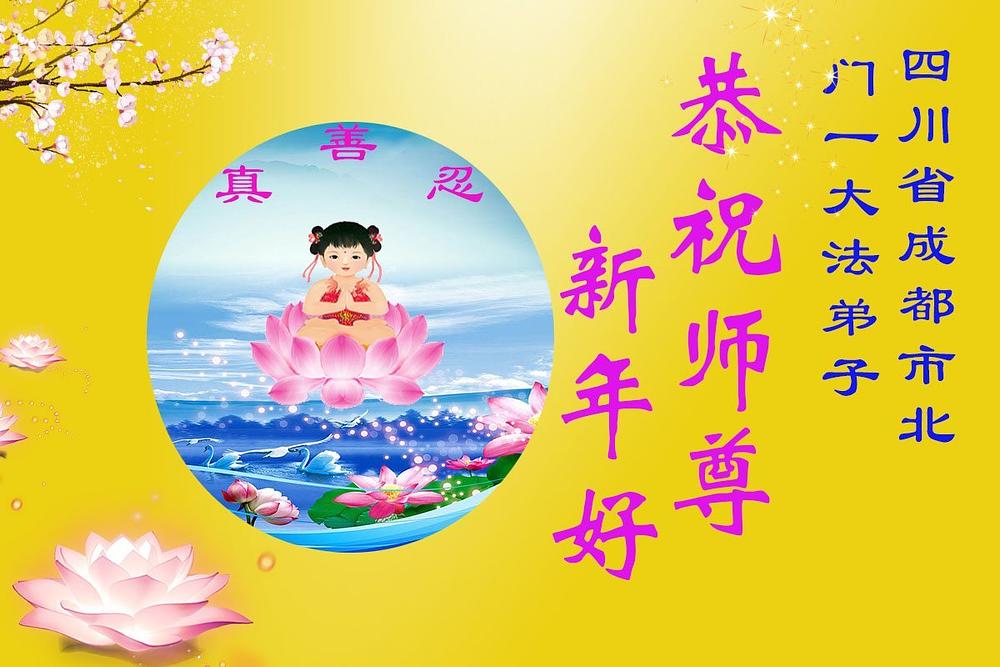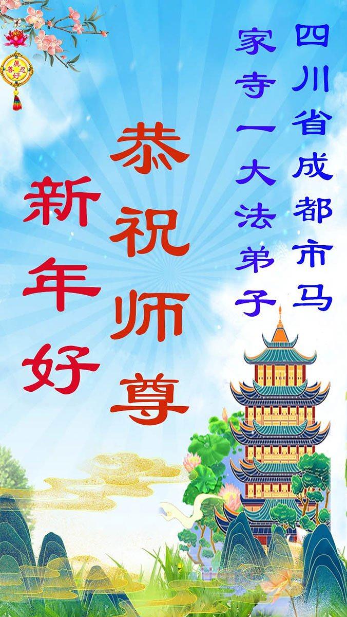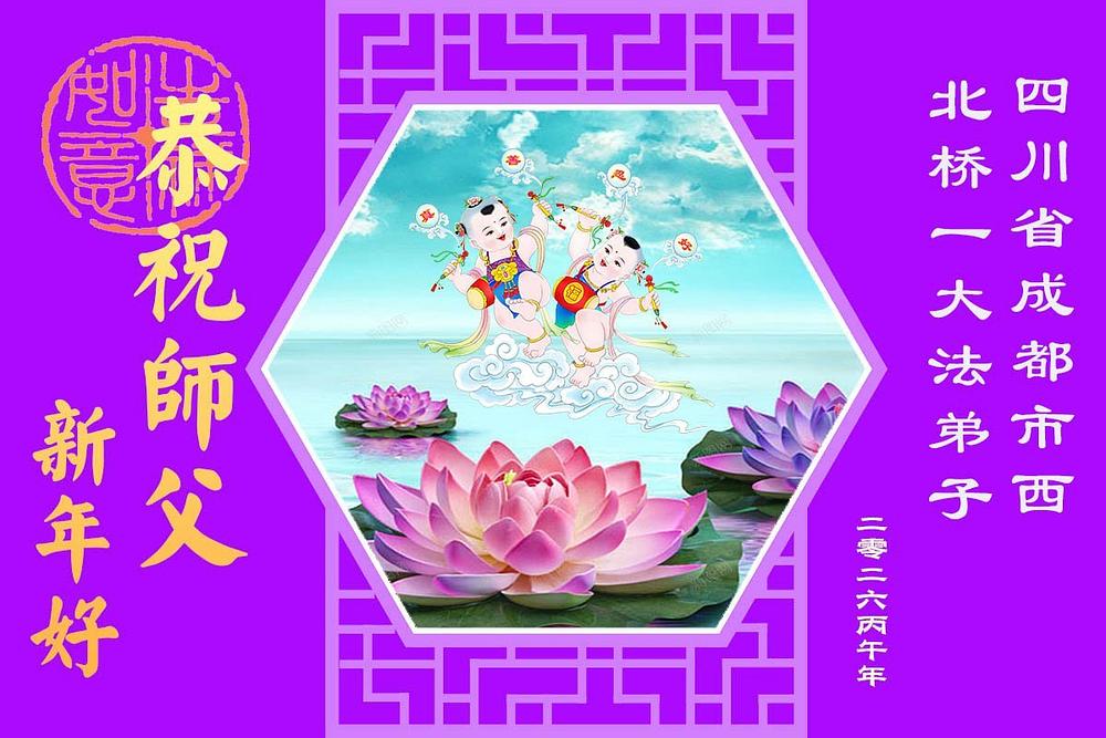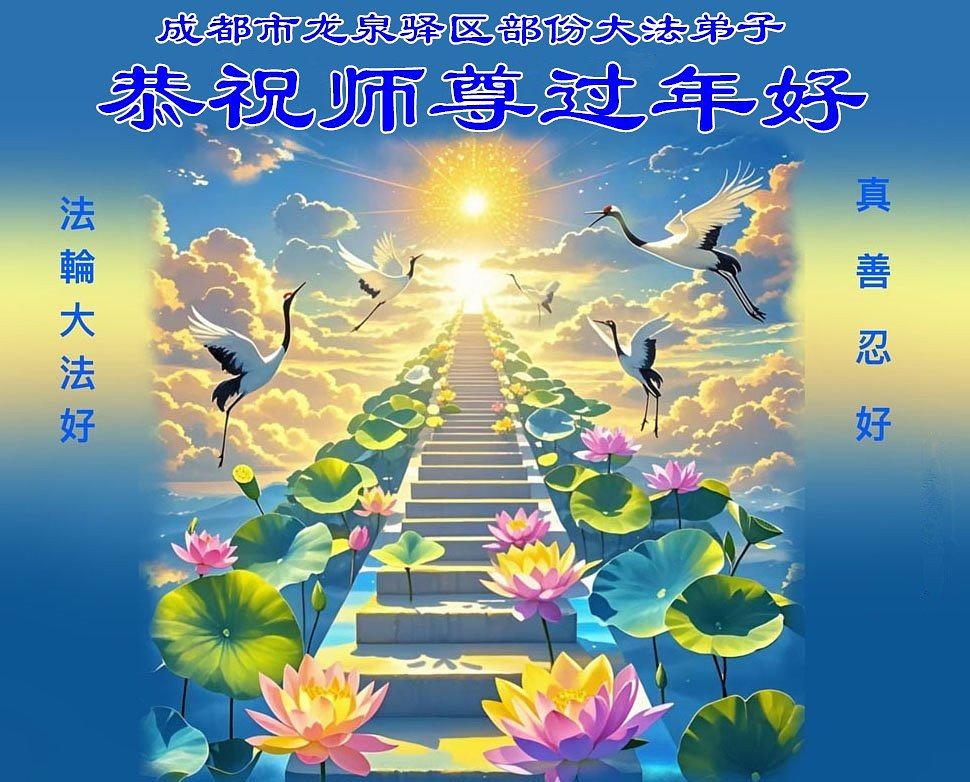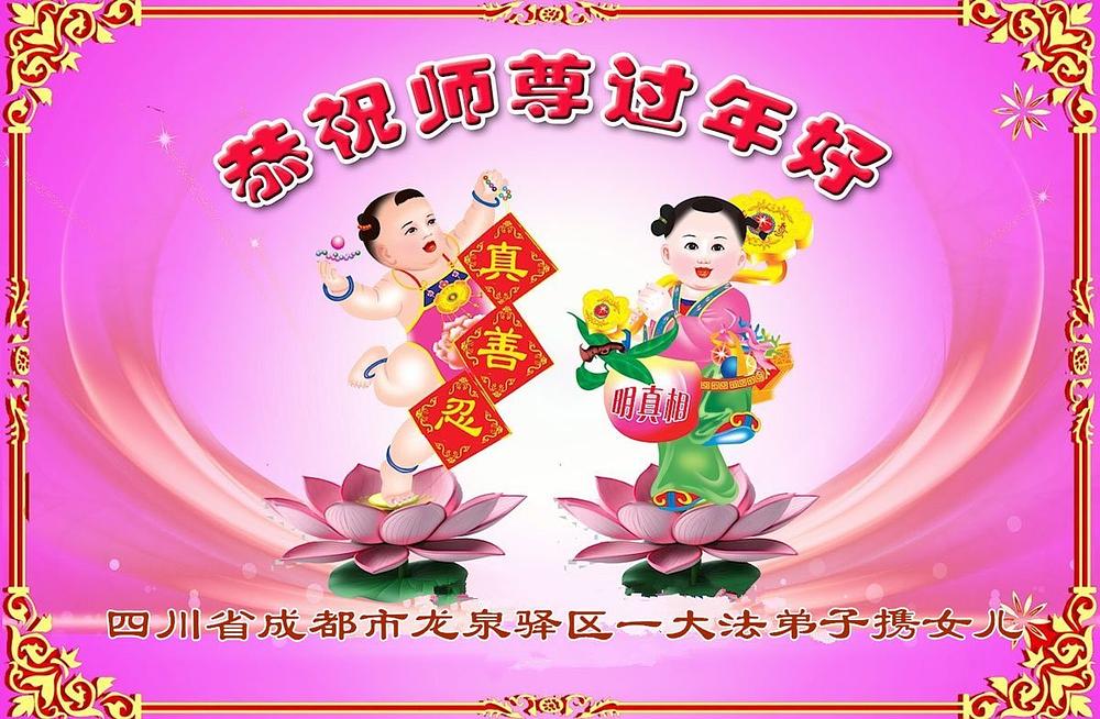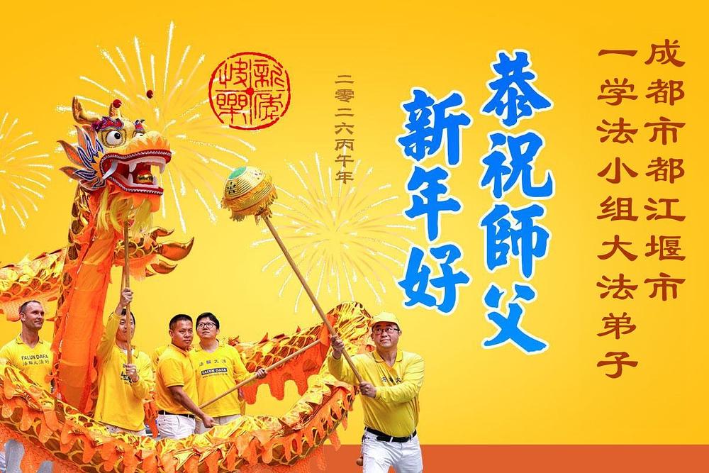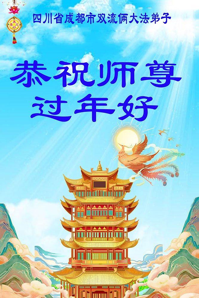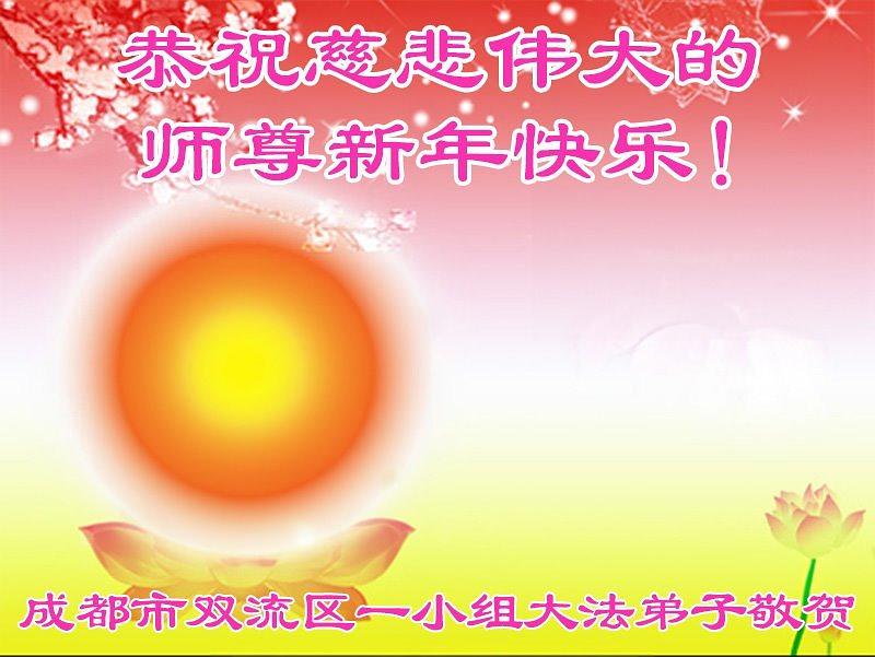 Falun Dafa praktikanti u gradu Čengduu s poštovanjem žele učitelju Li Hongdžiju srećnu kinesku Novu godinu (104 čestitke)