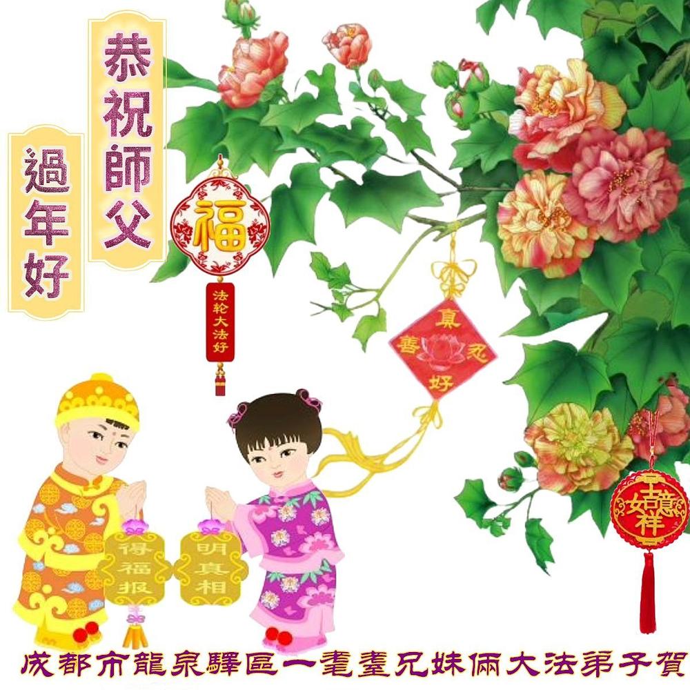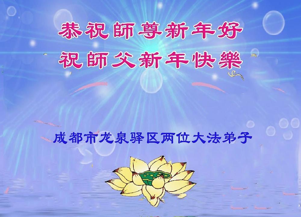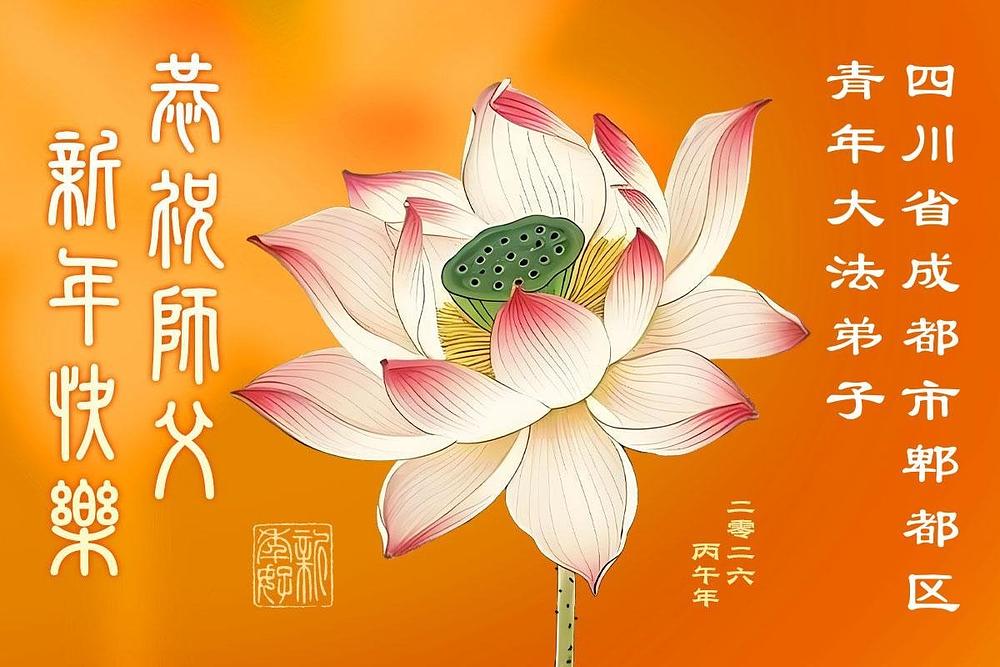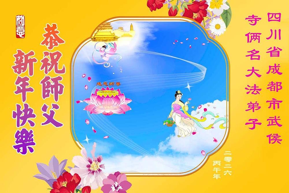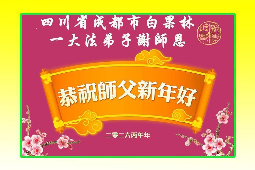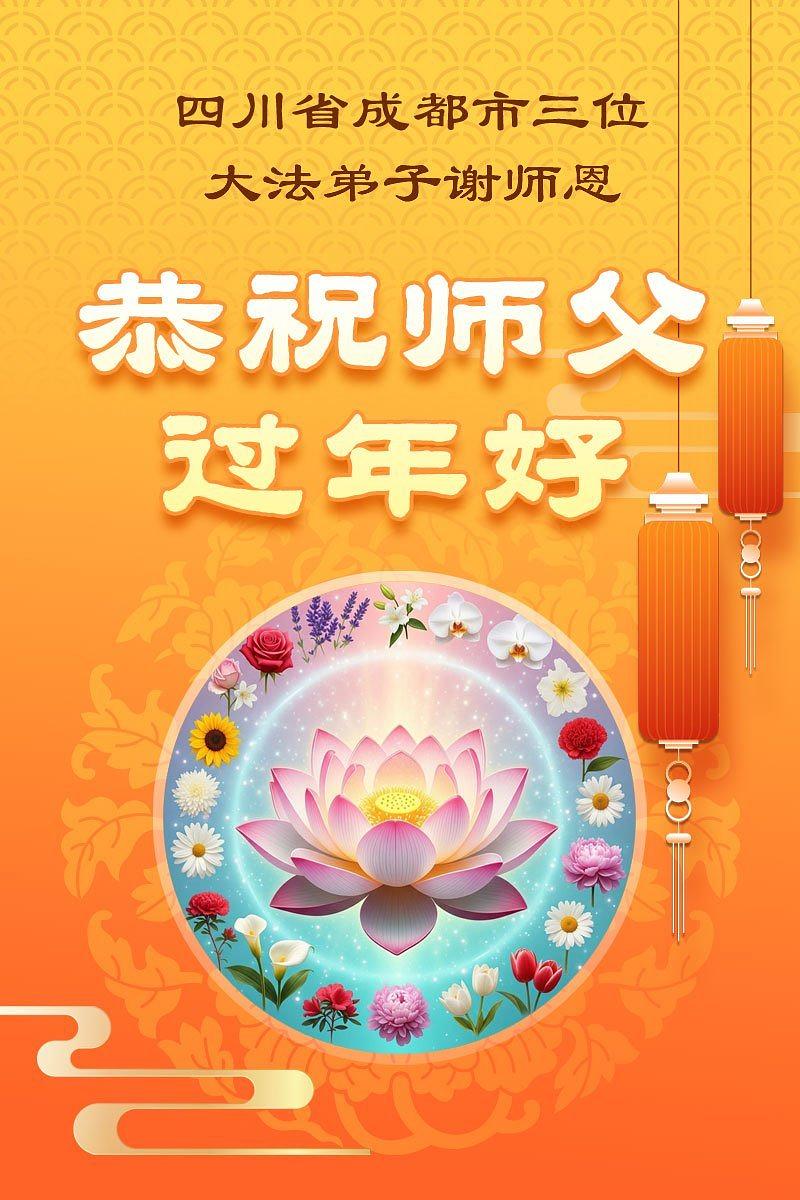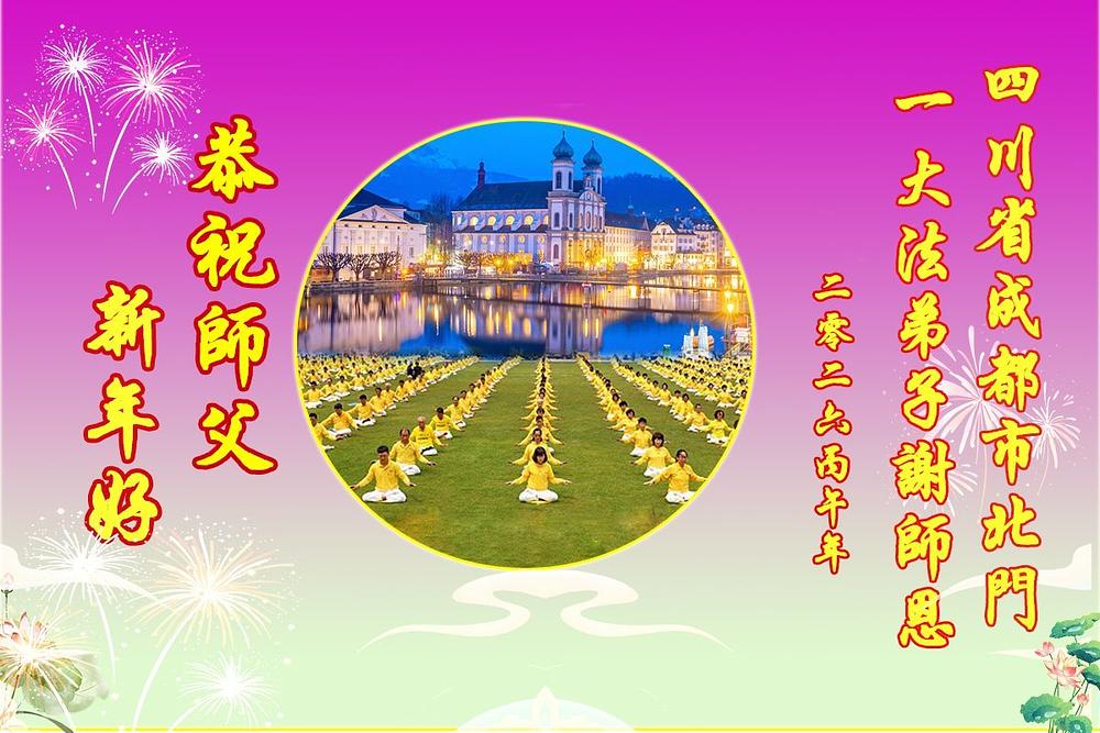 Falun Dafa praktikanti u gradu Čengduu s poštovanjem žele učitelju Li Hongdžiju srećnu kinesku Novu godinu (104 čestitke)