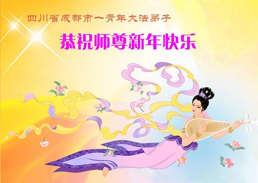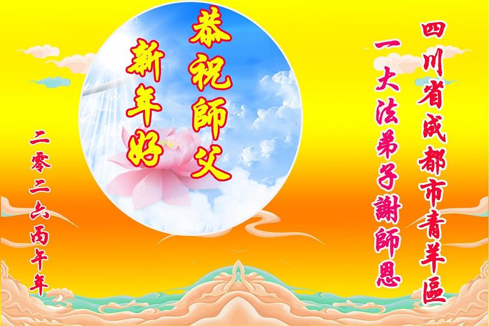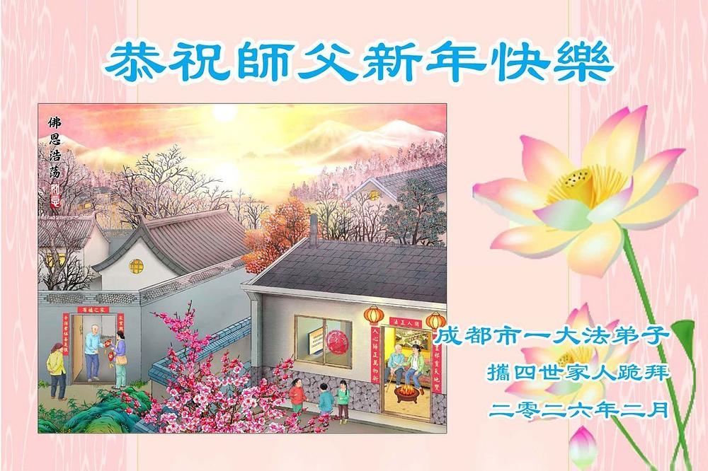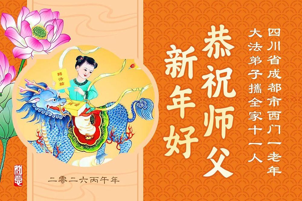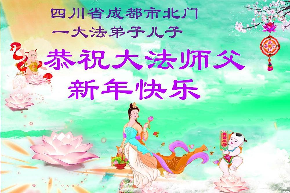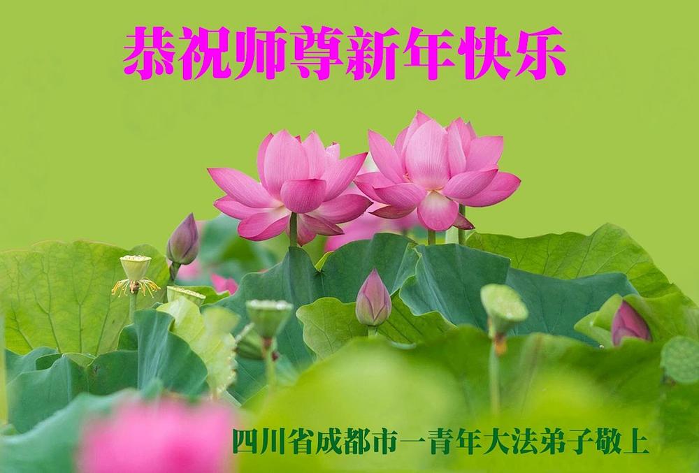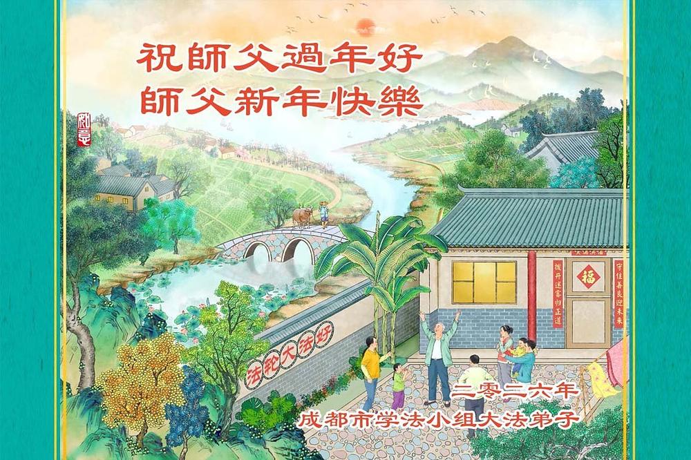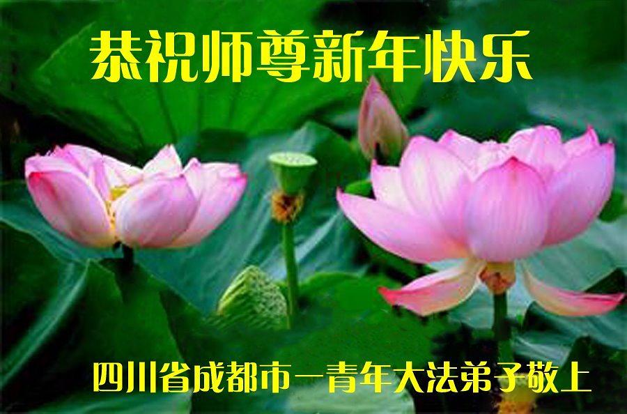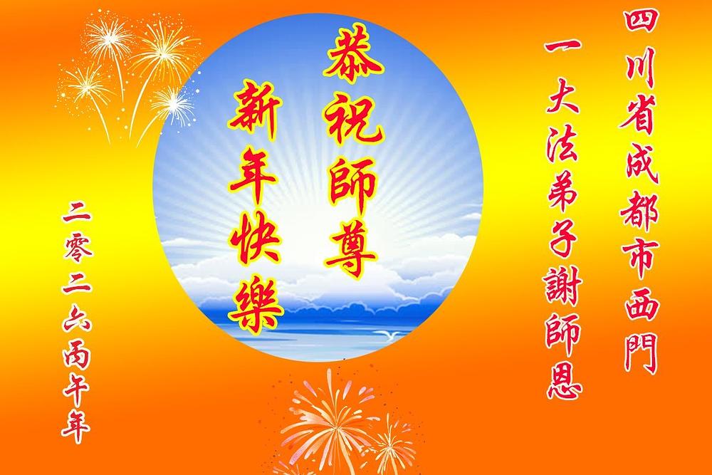 Falun Dafa praktikanti u gradu Čengduu s poštovanjem žele učitelju Li Hongdžiju srećnu kinesku Novu godinu (104 čestitke)