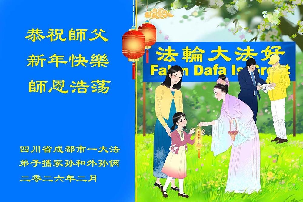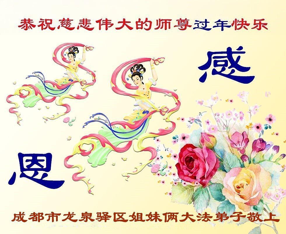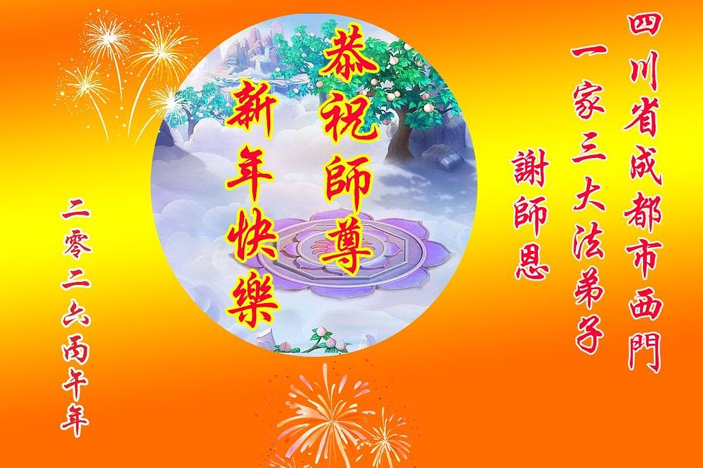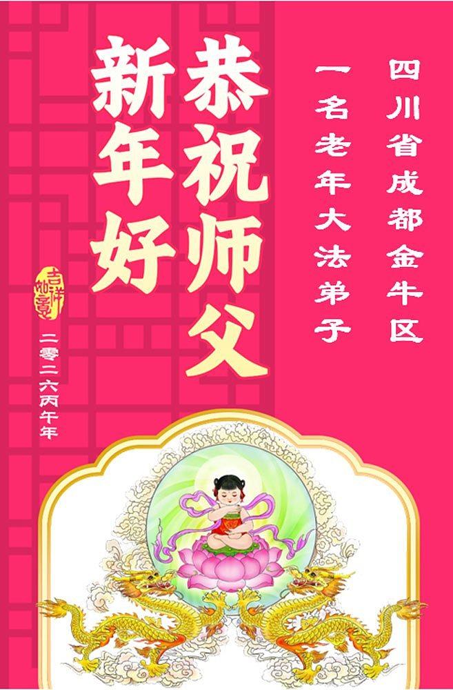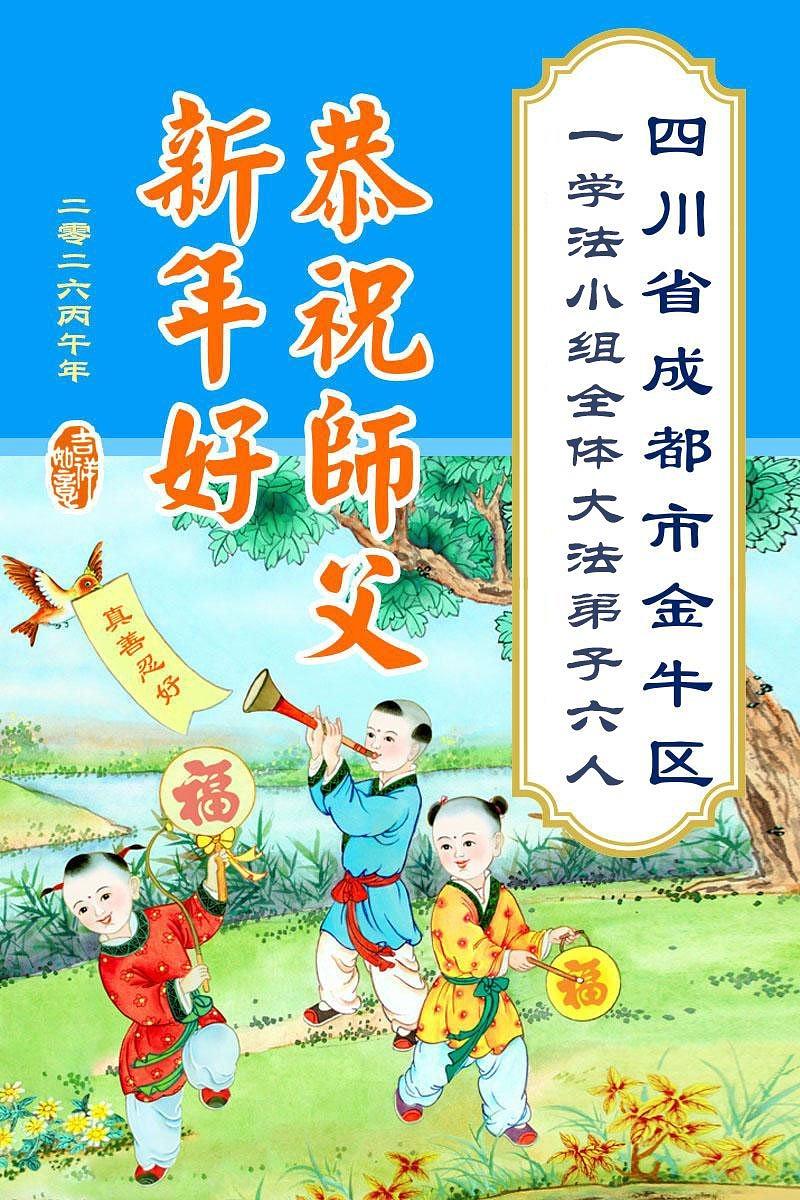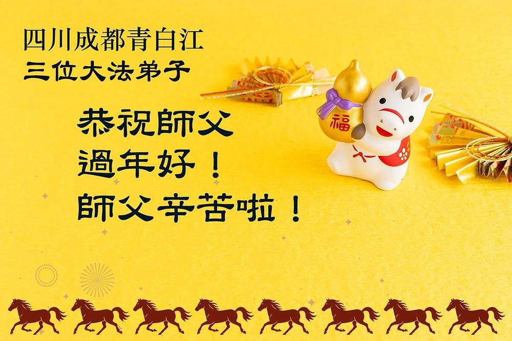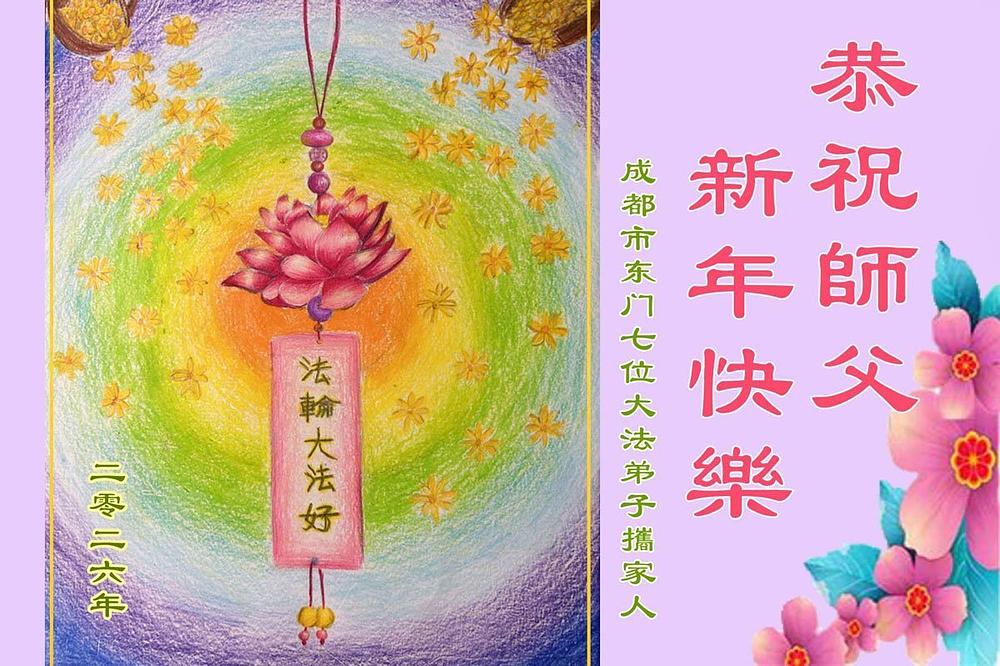 Falun Dafa praktikanti u gradu Čengduu s poštovanjem žele učitelju Li Hongdžiju srećnu kinesku Novu godinu (104 čestitke)