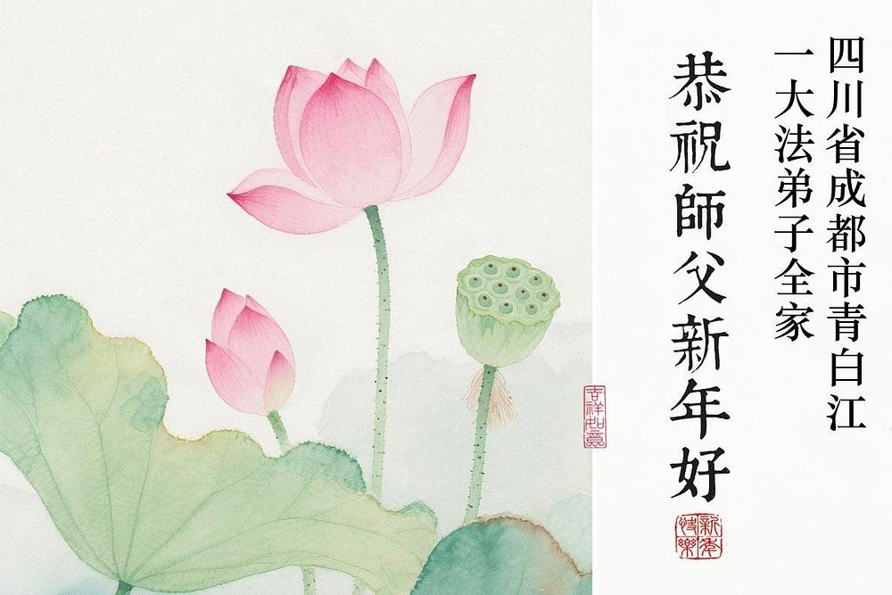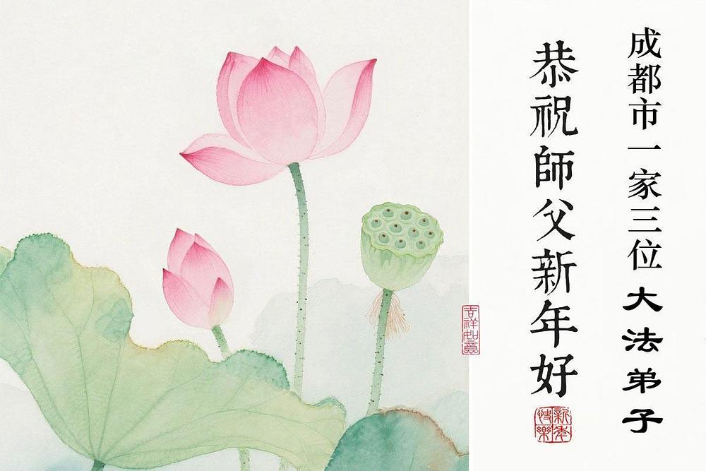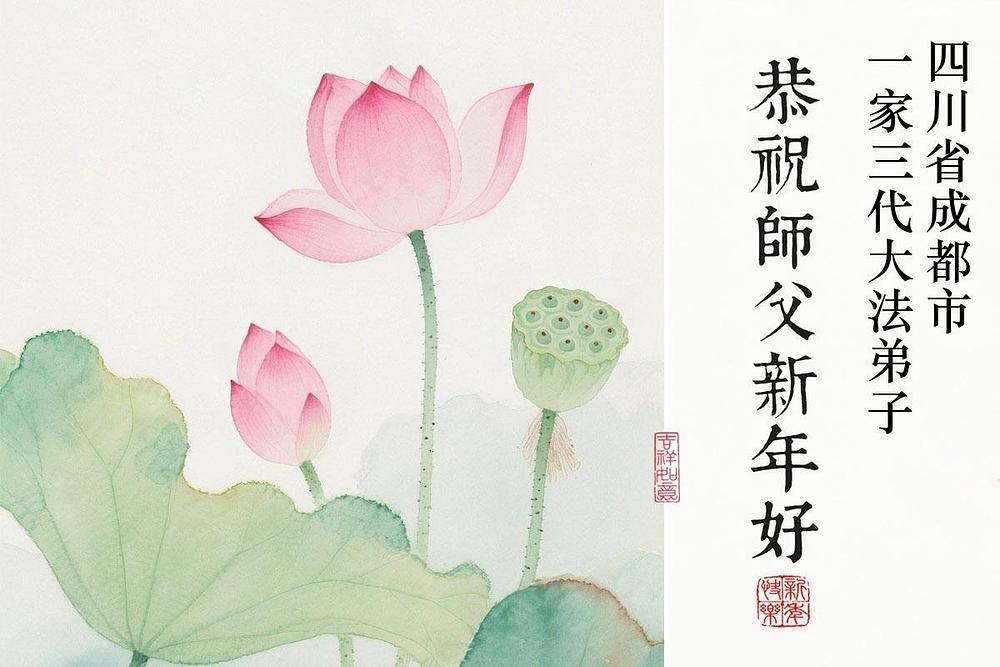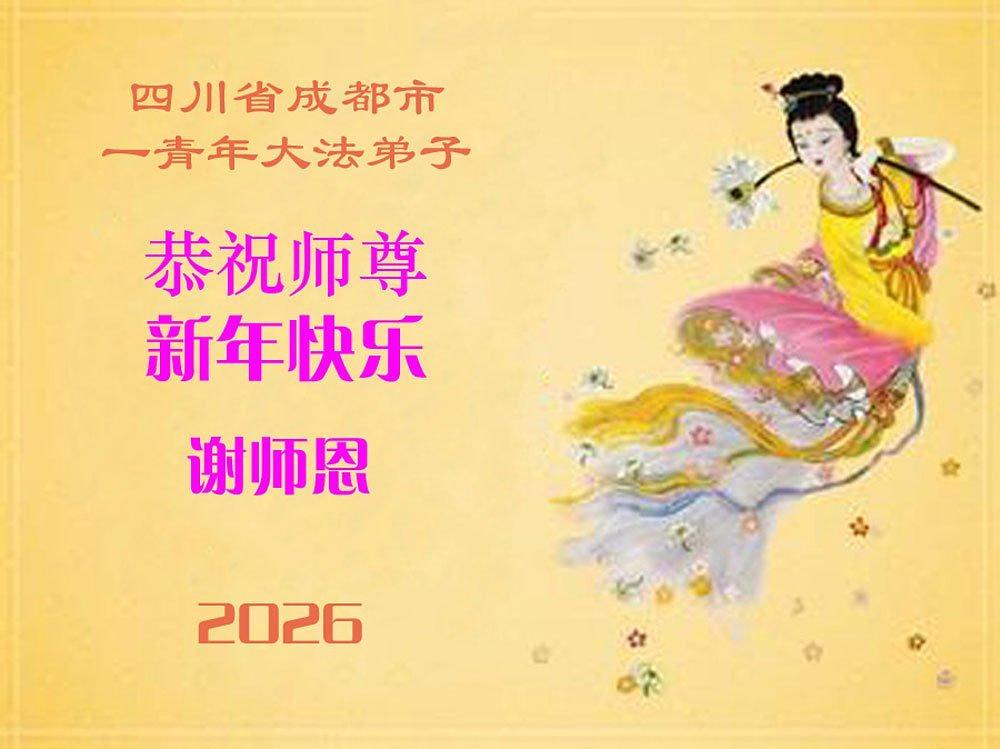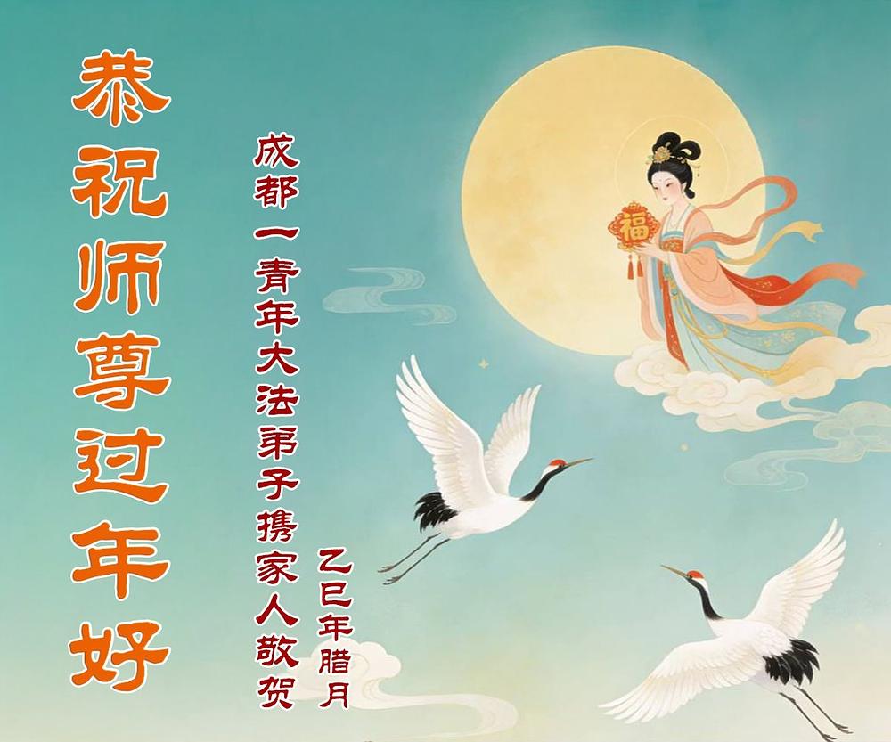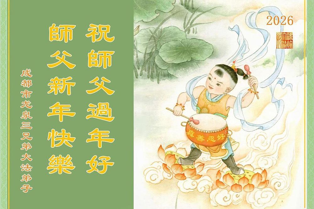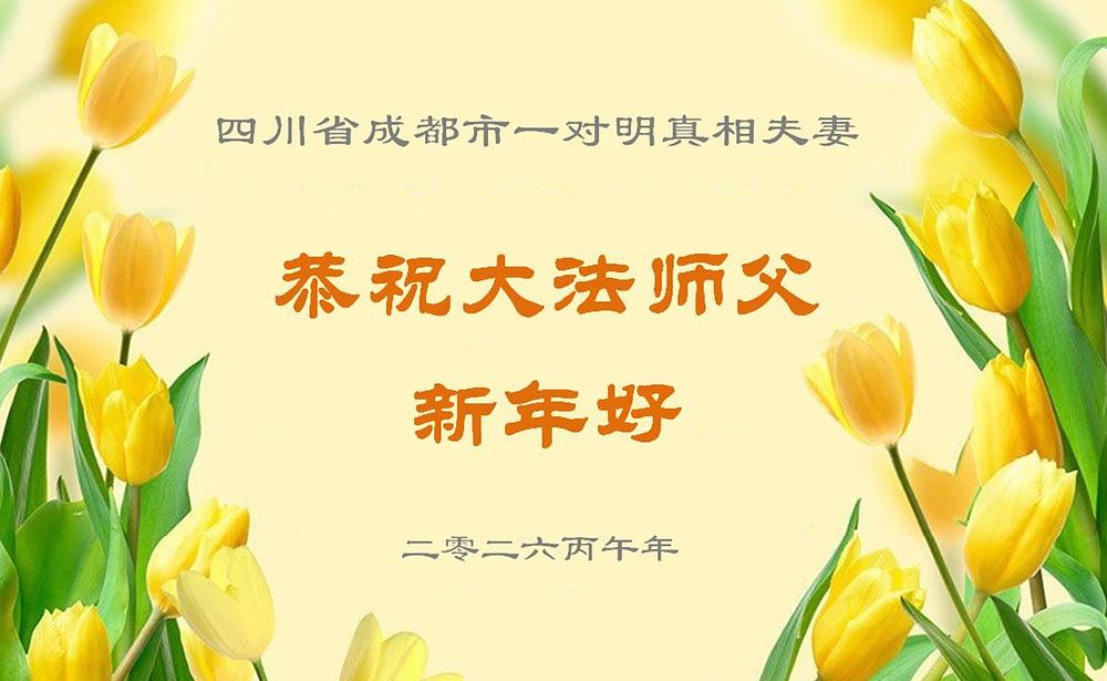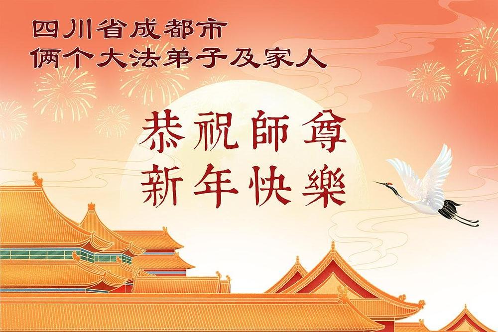 Falun Dafa praktikanti u gradu Čengduu s poštovanjem žele učitelju Li Hongdžiju srećnu kinesku Novu godinu (104 čestitke)