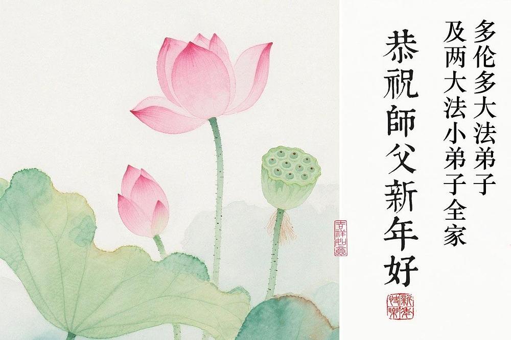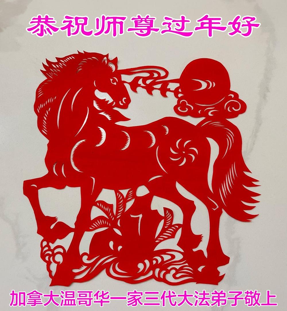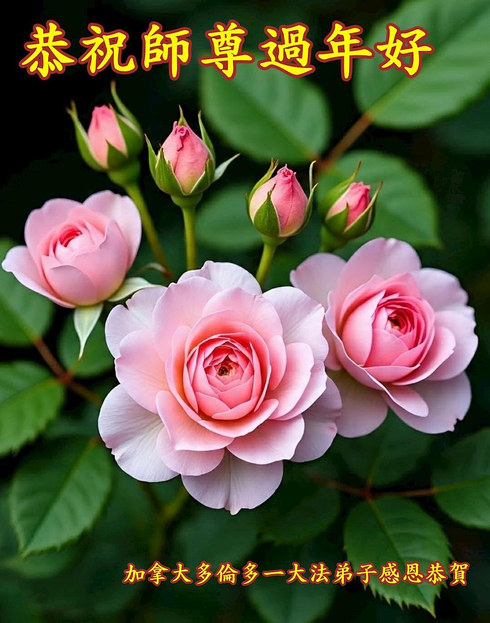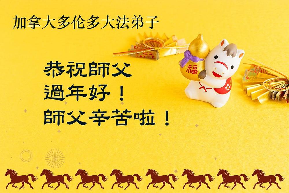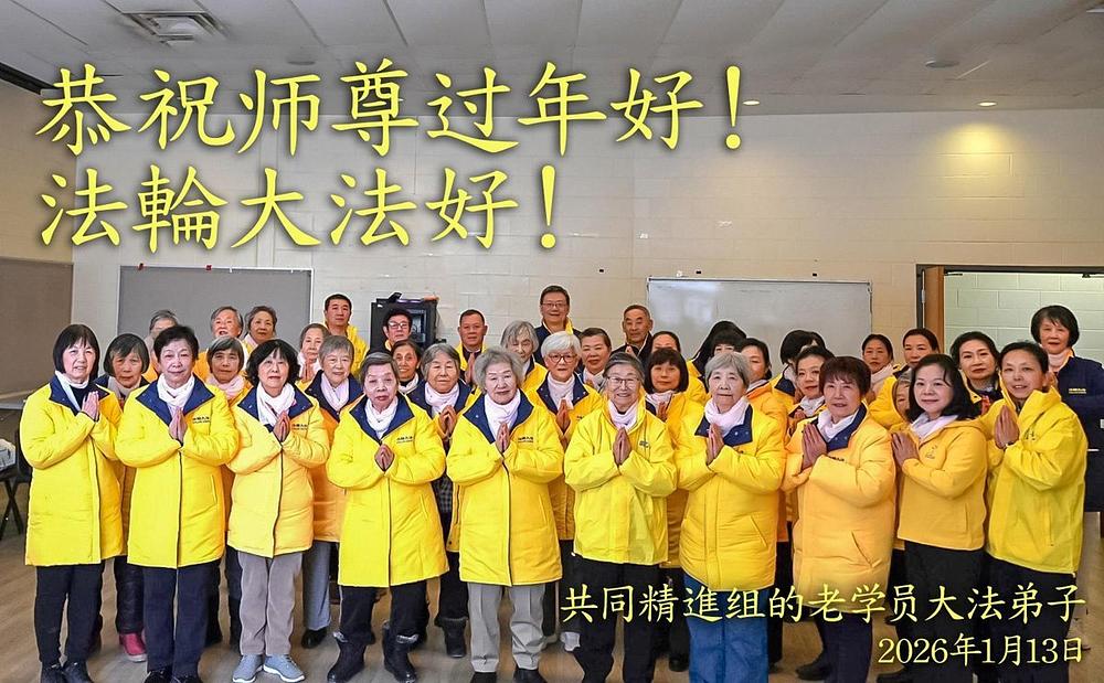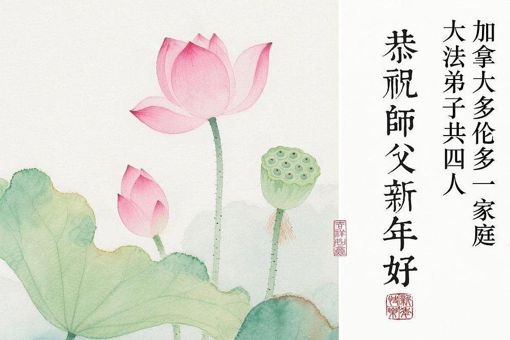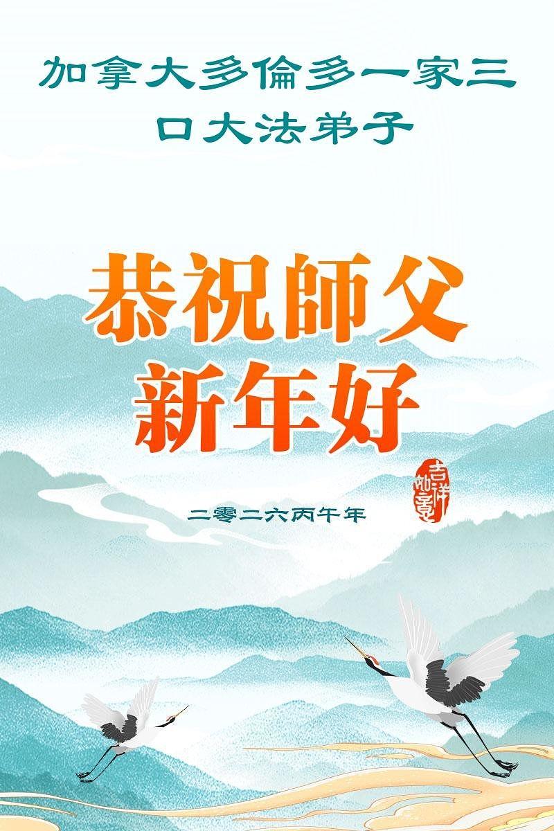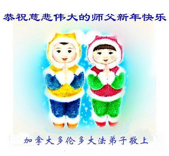 New Year greetings to Master from three practitioners in Toronto who are memorizing the Fa