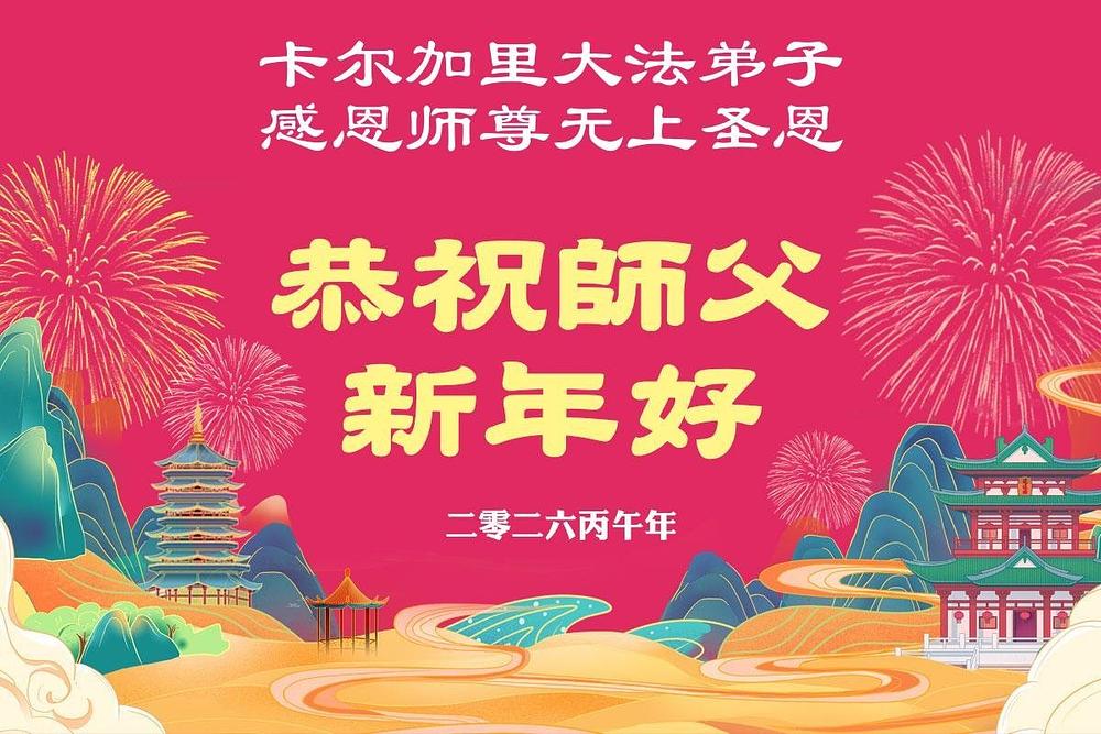 New Year's greetings to Master from practitioners at a truth-clarification site at a scenic attraction in Toronto