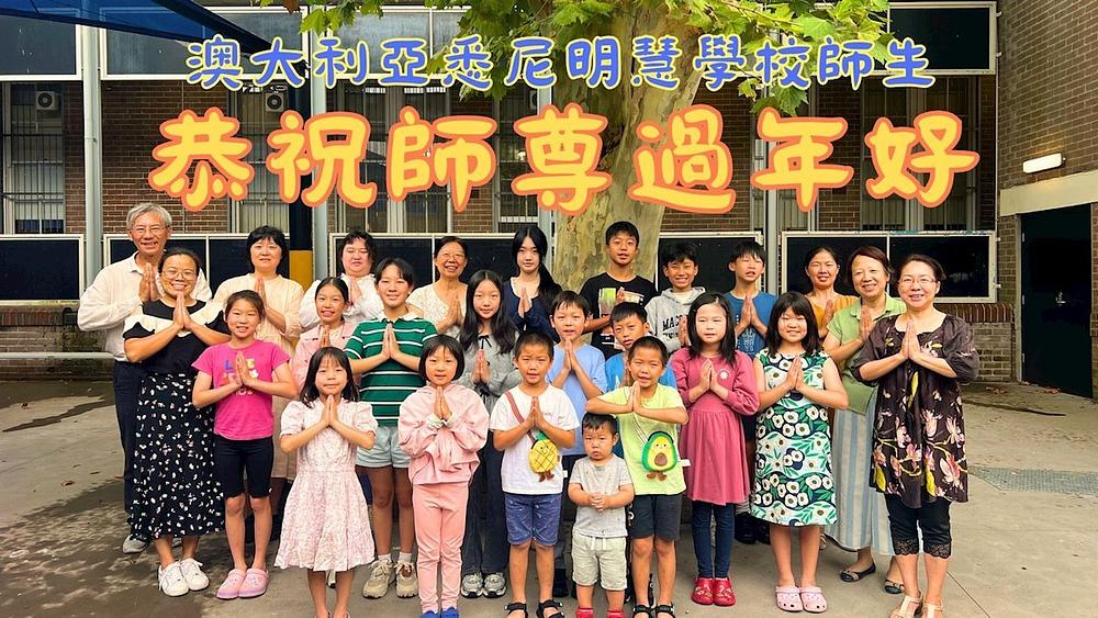 Novogodišnje čestitke Učitelju od nastavnika, učenika i roditelja škole Minghui u Sydneyu