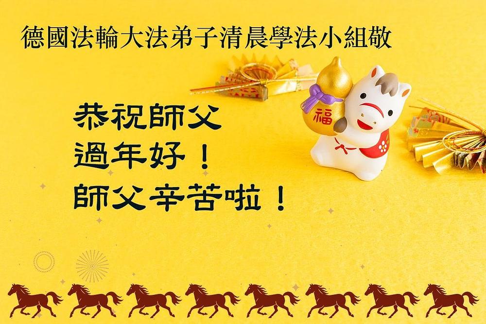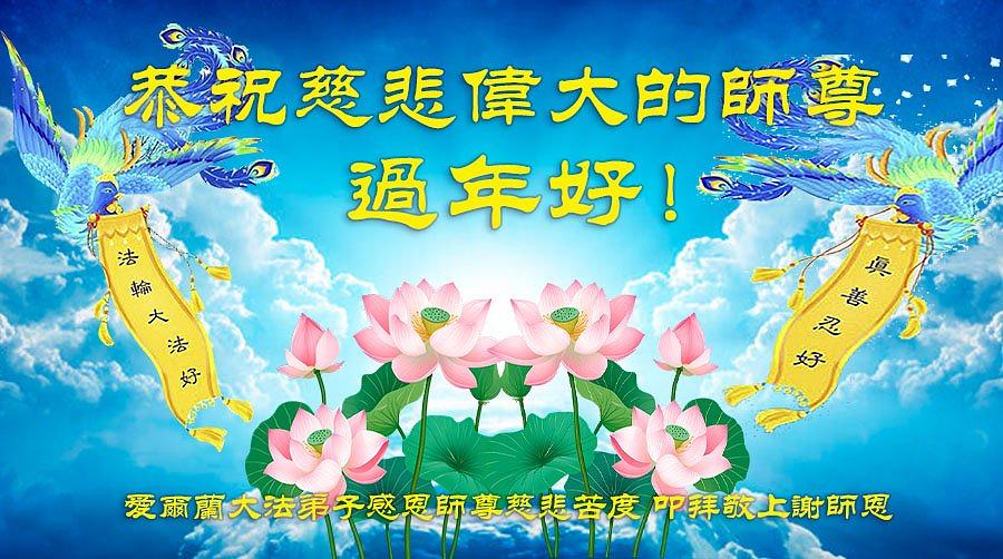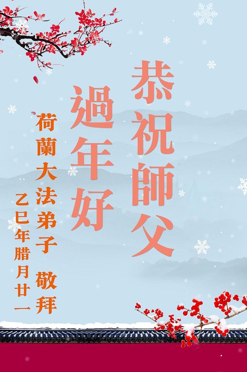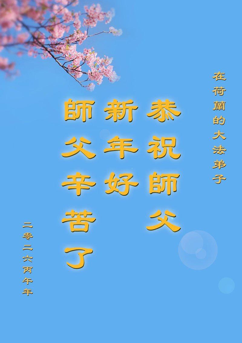Praktikanti Falun Dafe iz sedam zapadnoevropskih zemalja s poštovanjem žele učitelju Li Hongdžiju srećnu kinesku Novu godinu