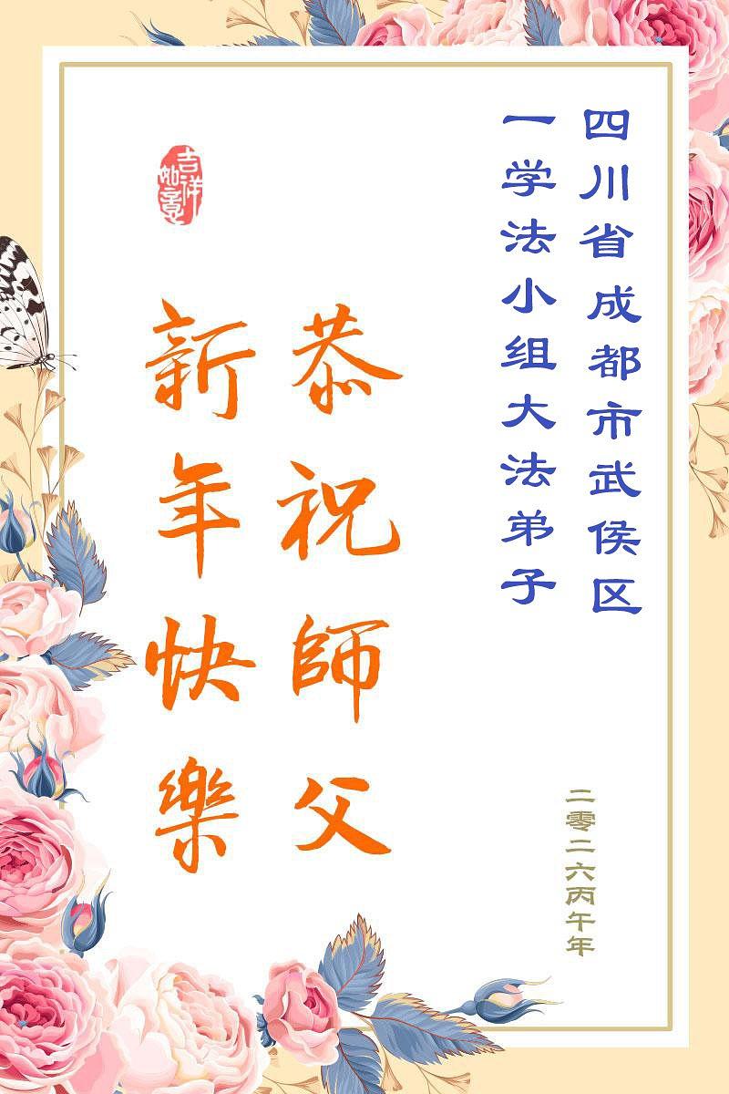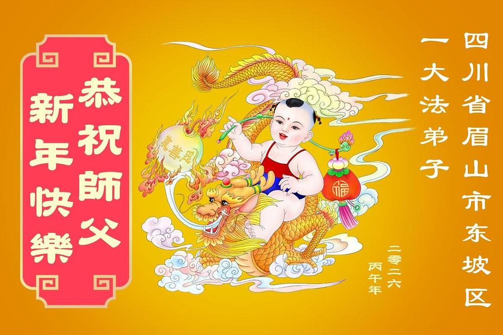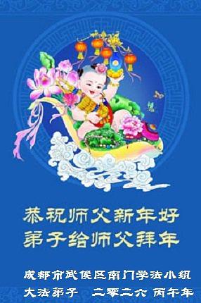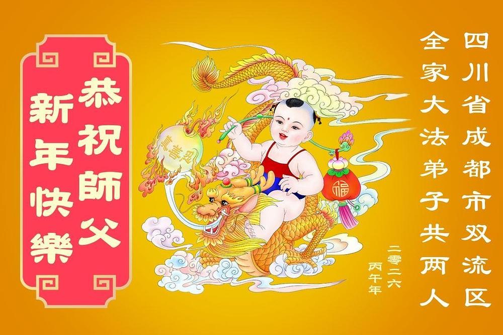 Praktikanti Falun Dafe u provinciji Sičuan i Čongćing s poštovanjem žele učitelju Li Hongdžiju srećnu kinesku Novu godinu (136 čestitki)