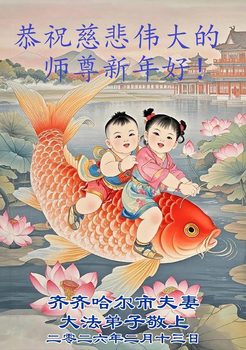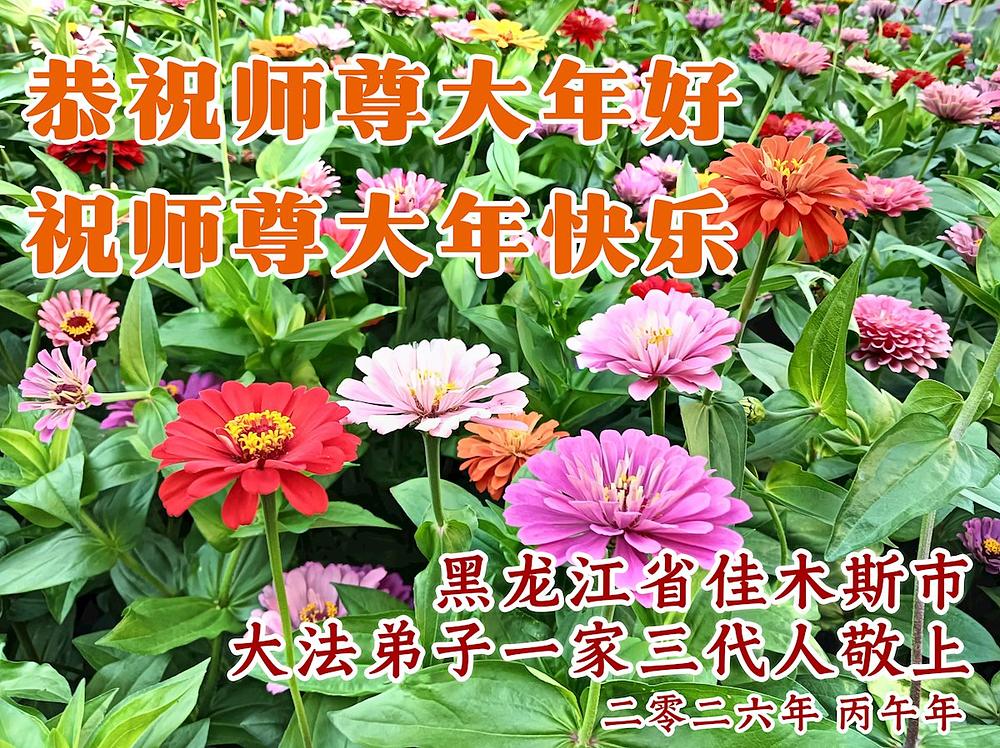 Falun Dafa praktikanti, članovi porodice i pristalice u provinciji Hejlungđang žele poštovanom Učitelju srećnu kinesku Novu godinu!