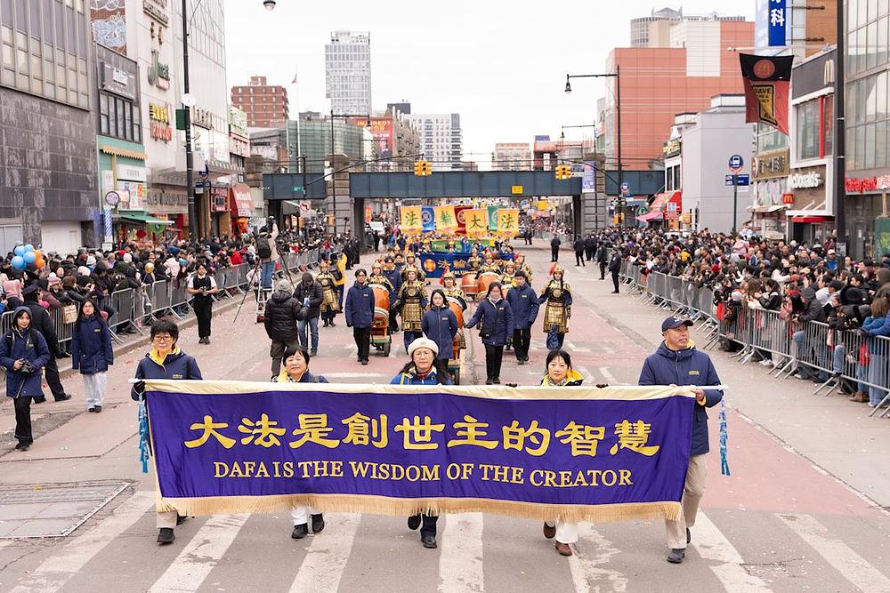 Praktikanti u New Yorku su, 21. februara 2026. godine, učestvovali u paradi povodom kineske Nove godine održanoj u Flushingu kako bi predstavili Falun Dafa. Kao najveća parada povodom kineske Nove godine u regiji, događaj privlači hiljade gledalaca, od kojih su mnogi rekli da su bili impresionirani nastupima praktikanata.