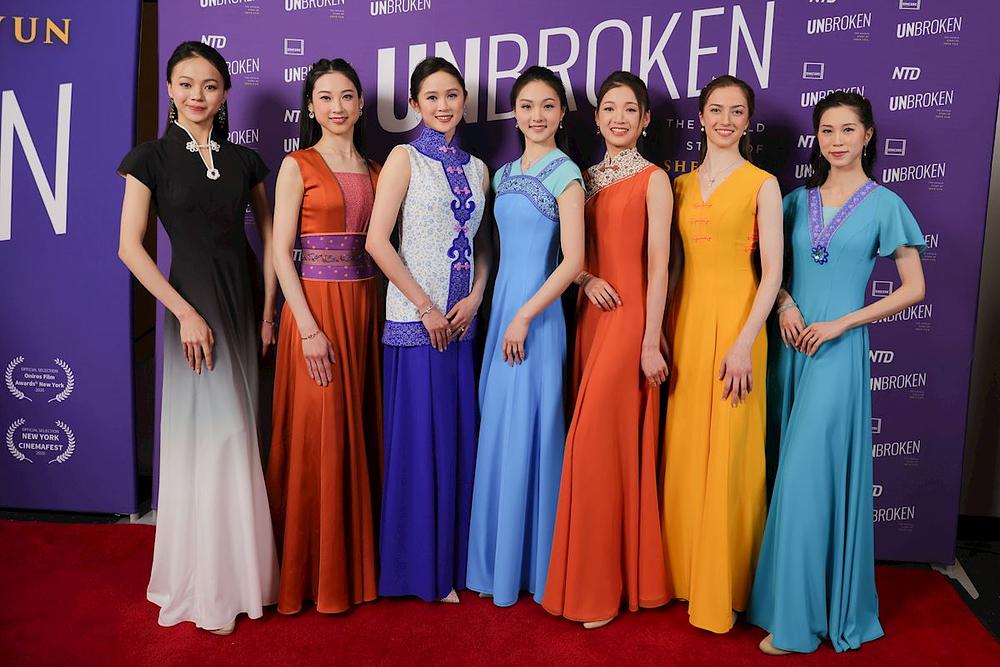 Premijera dokumentarca „Nesalomljivi: Neispričana priča o Shen Yunu“ je održana u AMC Lincoln Center na Manhattanu 24. marta 2026. godine. Sedam plesačica Shen Yuna krasilo je crveni tepih prije premijere, noseći haljine inspirisane drevnim kineskim dinastijama. (Snimak ekrana ljubaznošću Shen Yun Zuopin)