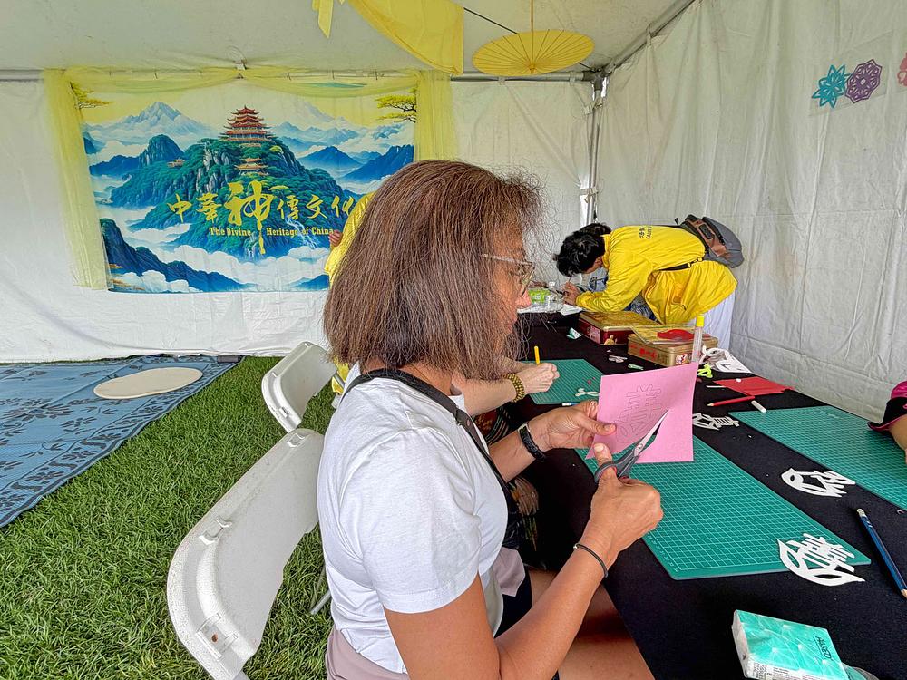 Dafa praktikanti predstavili su različite aspekte tradicionalne kineske kulture, uključujući rezanje papira, kaligrafiju i kušanje čaja. Mnogi posjetitelji festivala zaustavili su se na njihovom štandu, a velik broj ljudi rekao je da se dive praktikantima zbog njihovog mira, strpljenja i dobrote.