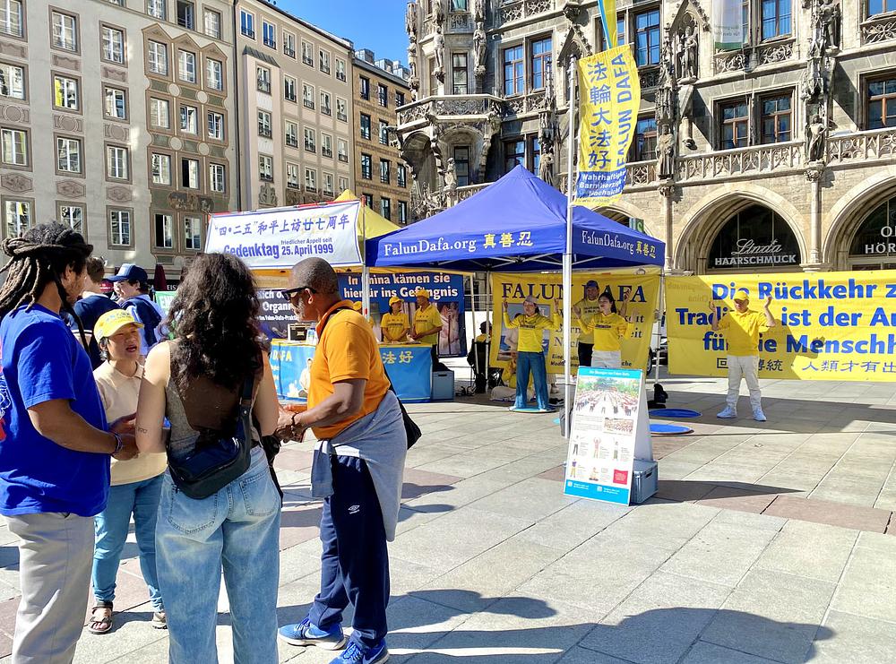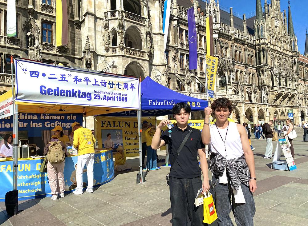 Falun Dafa praktikanti su 25. travnja 2026. održali događaj u Münchenu, trećem najvećem gradu Njemačke, kako bi obilježili mirni apel koji je bio održan u Pekingu prije 27 godina. Prolaznici su pohvalili događaj, a neki kineski studenti i turisti su pristali prekinuti veze s Komunističkom partijom Kine (KPK) nakon što su čuli kako režim zlostavlja praktikante.