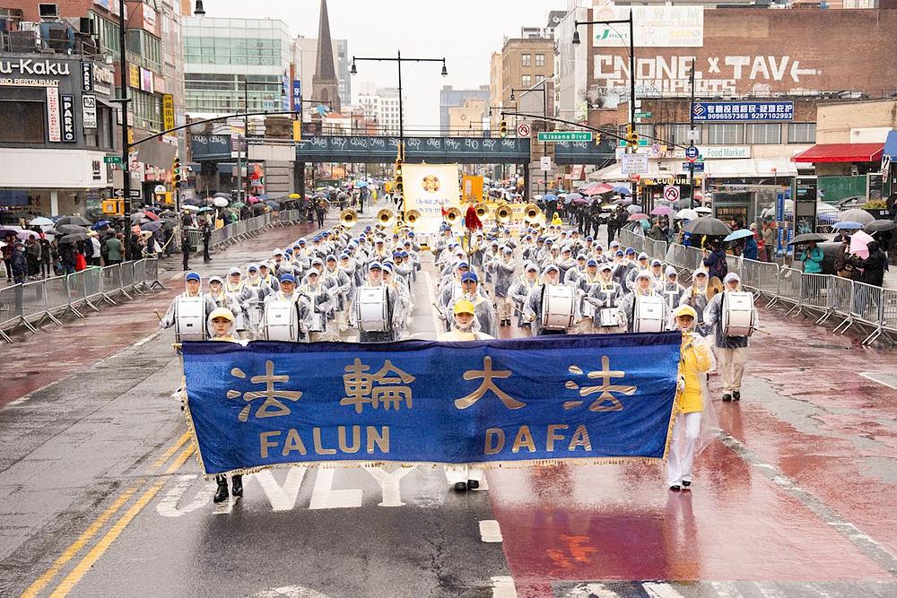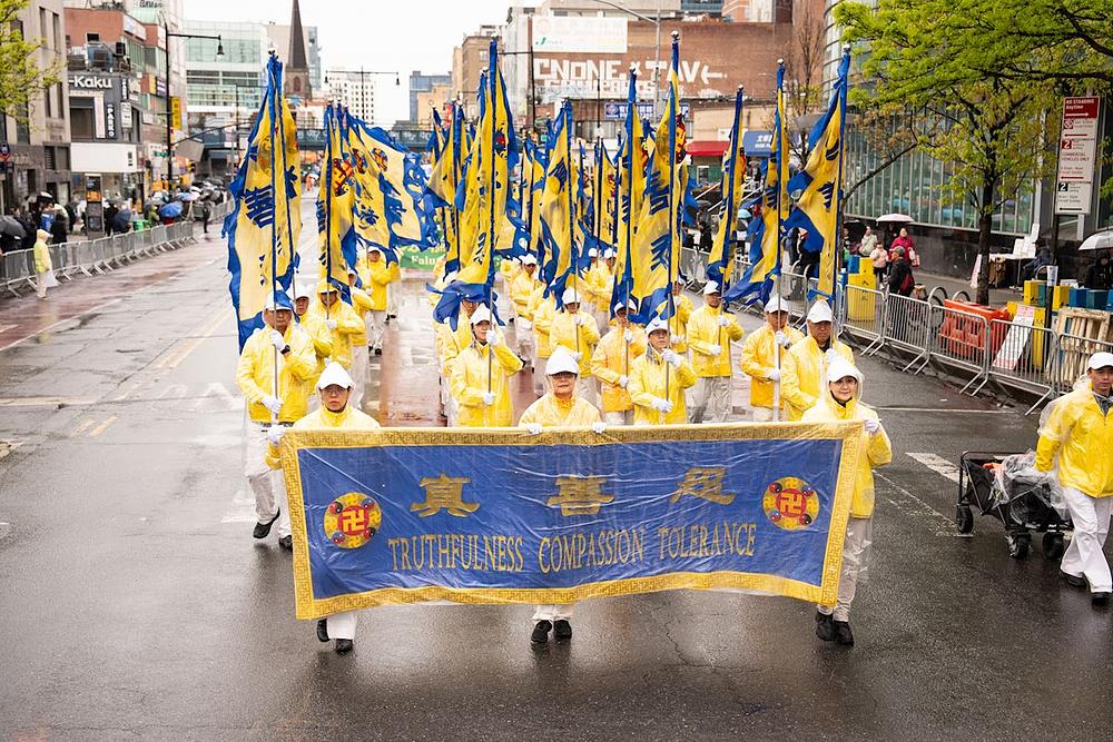 Predvođen Tian Guo marširajućim orkestrom, marš u Flushingu se sastojao od tri dijela: „Falun Dafa je dobar", „Zaustavite progon Falun Gonga" i „Podržite 460 miliona ljudi koji su povukli članstvo iz KPK."