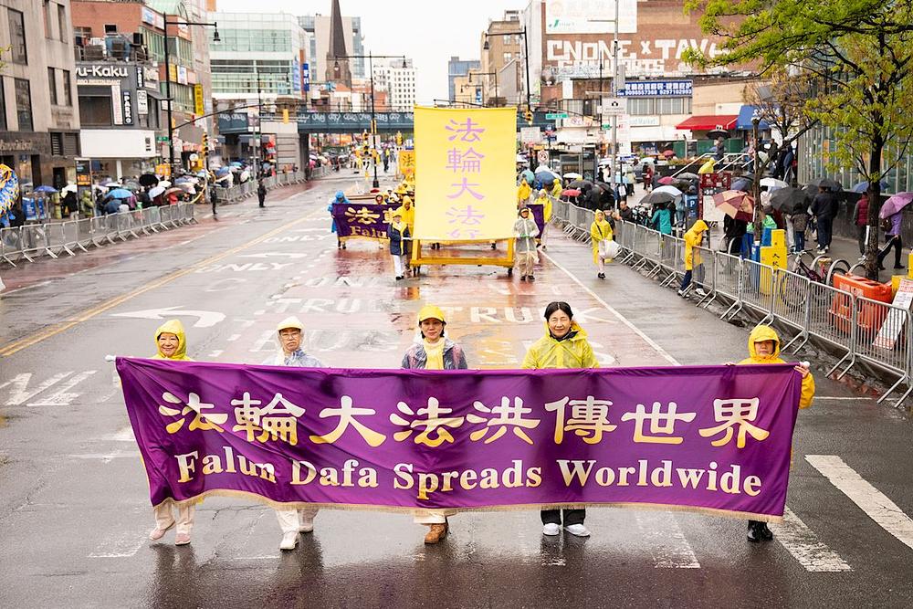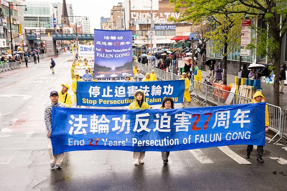 Ovoga 25. aprila 2026. godine, praktikanti u području šireg New Yorka su održali veliki marš i skup u centru Flushinga, lokaciji najveće kineske zajednice u New Yorku, kako bi obilježili 27. godišnjicu mirnog apela. Nakon marša, praktikanti su održali skup pored biblioteke u Flushing, tokom kojeg su govorili lideri zajednice i drugi govornici. Izrazili su podršku praktikantima i pohvalili njihove napore da razotkriju progon.