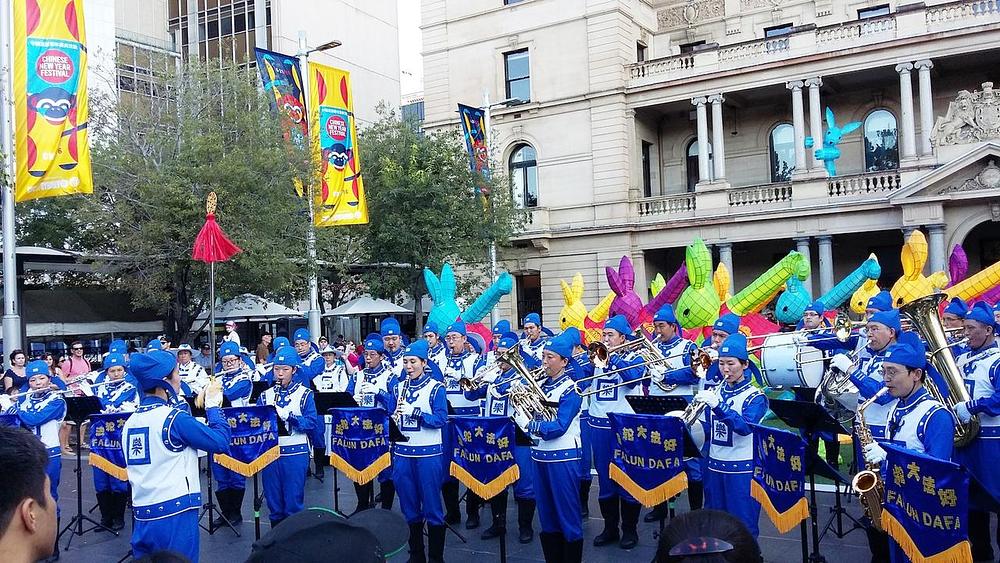 Divine Land Marching Band iz sidnejske grupe Falun Gonga je ponudio nadahnutu izvedbu na proslavi Kineske Nove godine u centru Sidneja u predvečerje 10. i 13. februara.