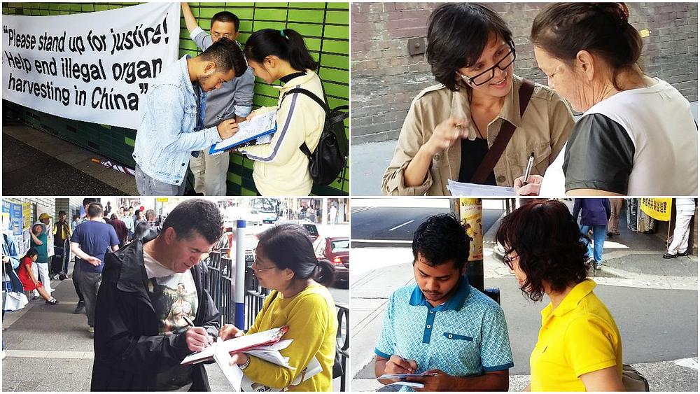 Stanovnici i posjetioci predgrađa Burwood u Sydneyu potpisivali su poštanske dopisnice adresirane na australskog premijera Macolma Turnbulla, pozivajući ga da izrazi svoju zabrinutost zbog progona Falun Gonga tokom svoje predstojeće posjete Kini 14. i 15. aprila 2016. godine.