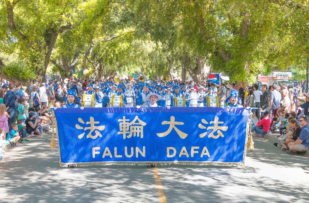 Falun Gong praktikanti, koji nastupaju u orkestru Divine Land Marching Band, su po četvrti puta uzeli učešće na 102. paradi prazničkog dana održanoj u kampusu kalifornijskog univerziteta Davis, 16. aprila 2016. godine.