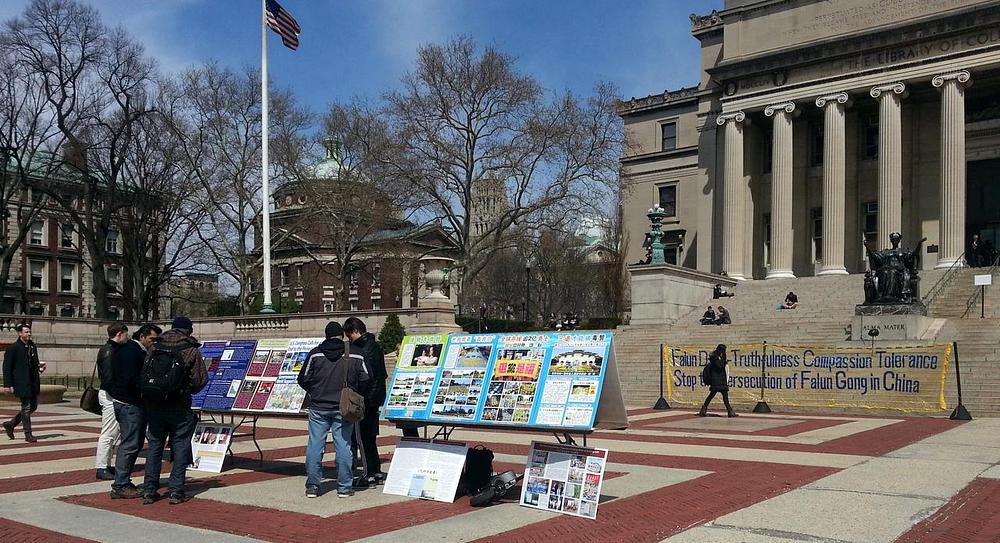 Članovi Falun Dafa kluba na Kolumbija univerzitetu u Nju York Sitiju su odrganizovali četverodnevnu izložbu postera u kampusu univerziteta kako bi sa ljudima mogli razgovarati o progonu Falun Gonga (koji se također naziva i Falun Dafa), duhovne prakse prakticirane u Kini od 1992. godine. Mnogi članovi fakulteta i uposlenici su se zaustavljali kako bi doznali više o Falun Gongu.