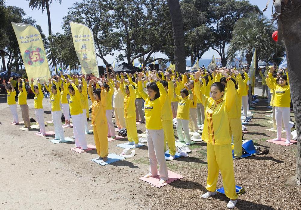 Nekoliko stotina praktikanata Falun Dafa iz Los Angelesa je 8. maja 2016. godine proslavilo 17. godišnjicu Svjetskog Falun Dafa dana na pristaništu u Santa Monici.