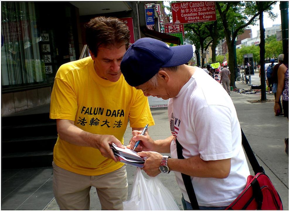 Zapadnjački su Falun Dafa praktikanti proteklog vikenda održali u Torontu „Veliki zid istine“ u centru grada. Držali su transparente kojima su objašnjavali progon i prikupljali potpise.